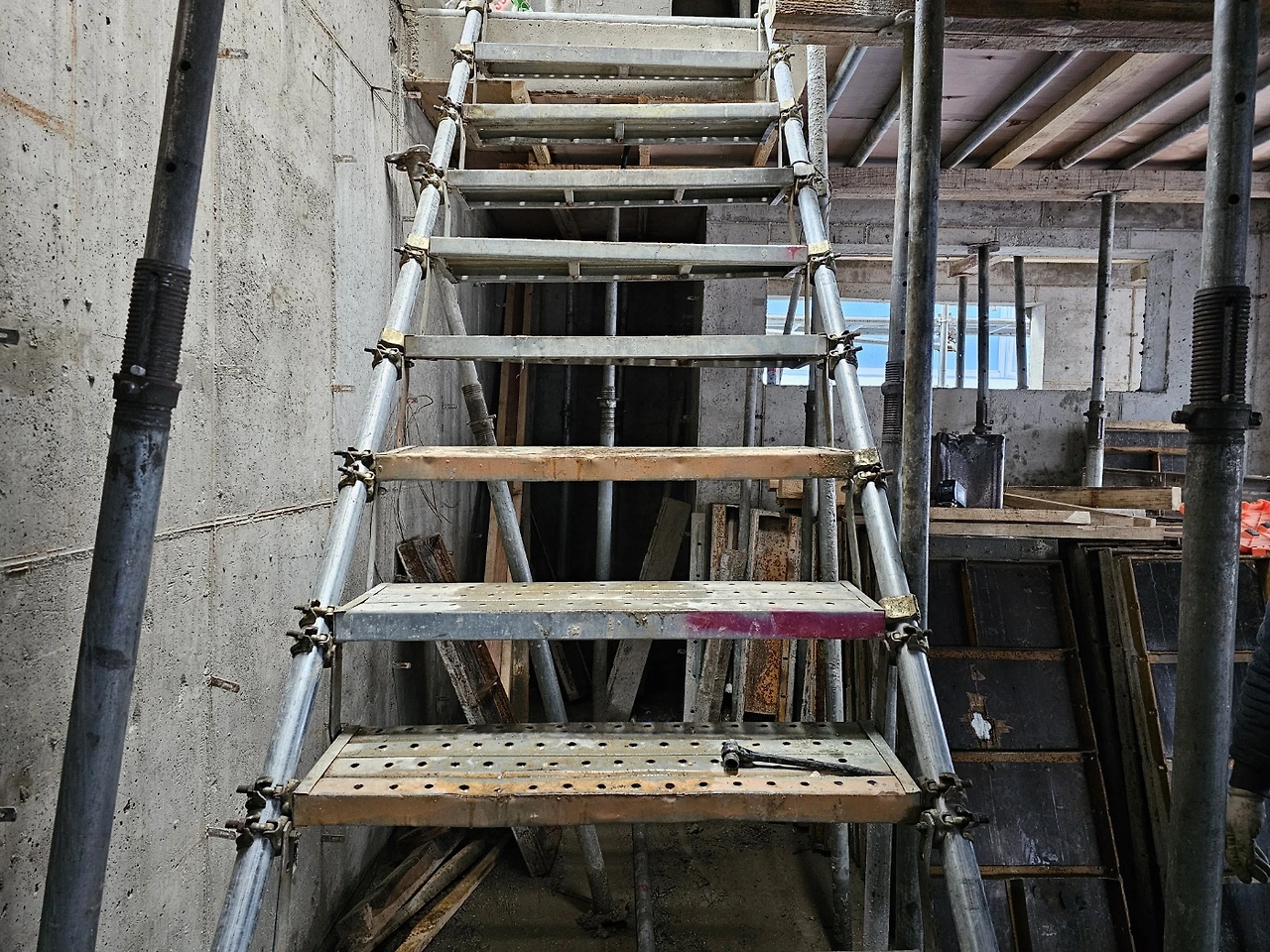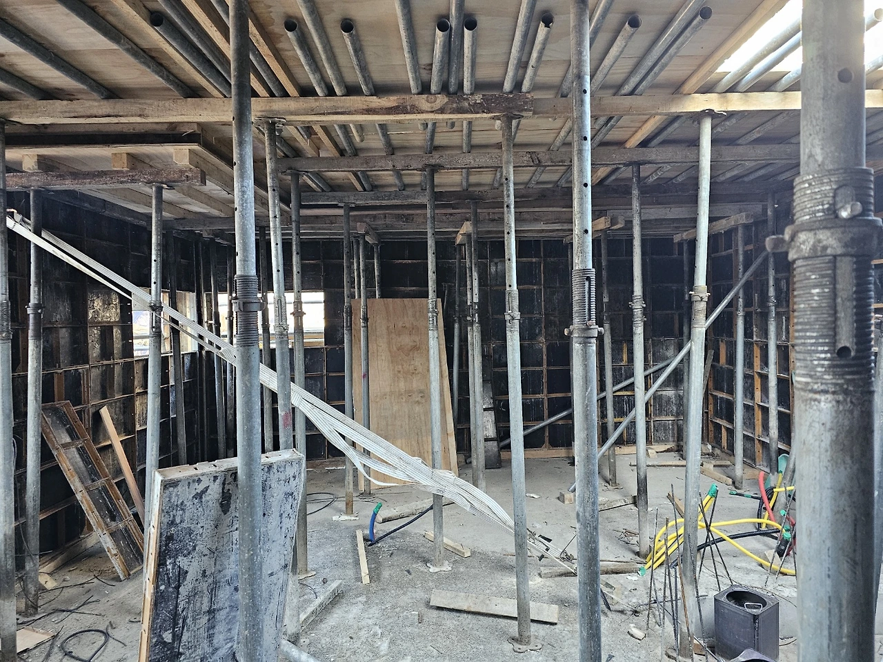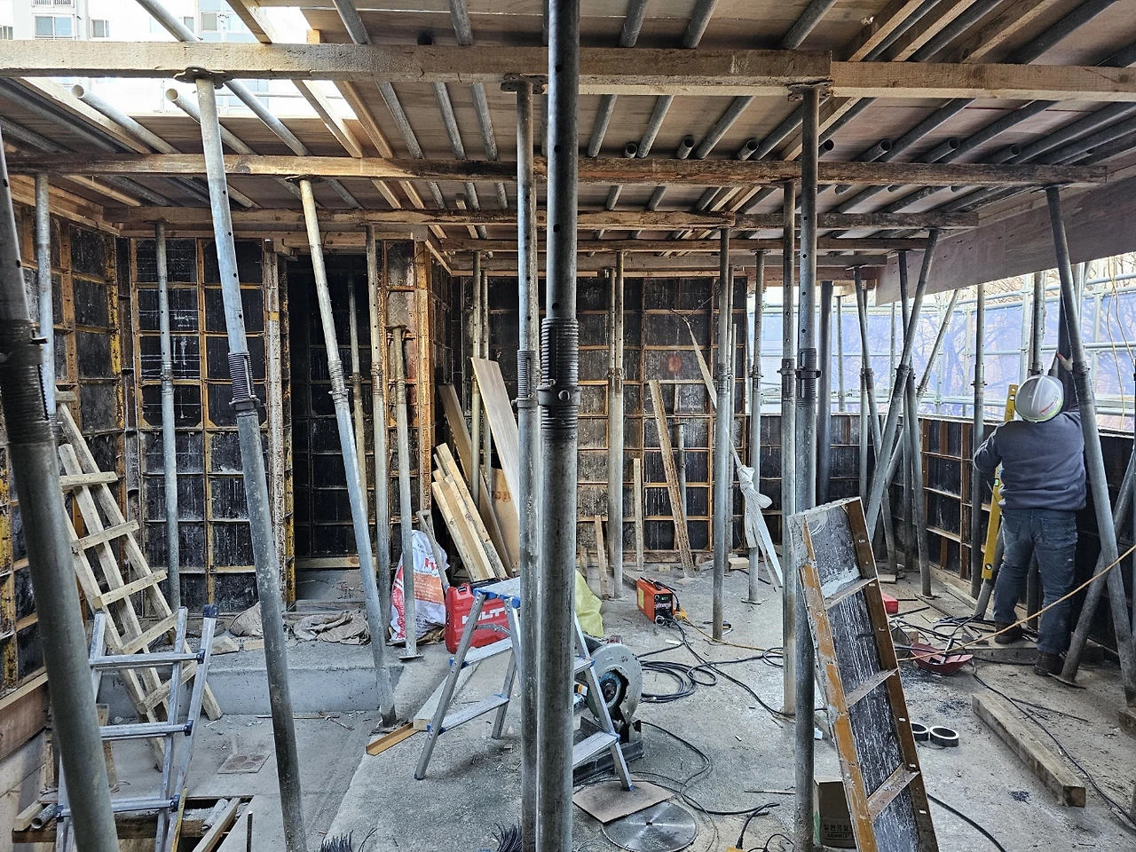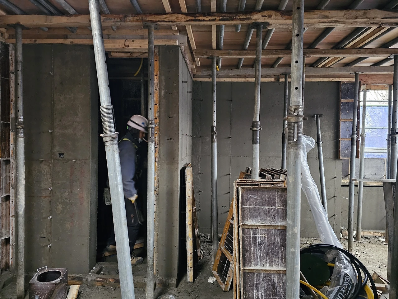 3층 천정 거푸집 마감(4층바닥) 금속기둥 설치