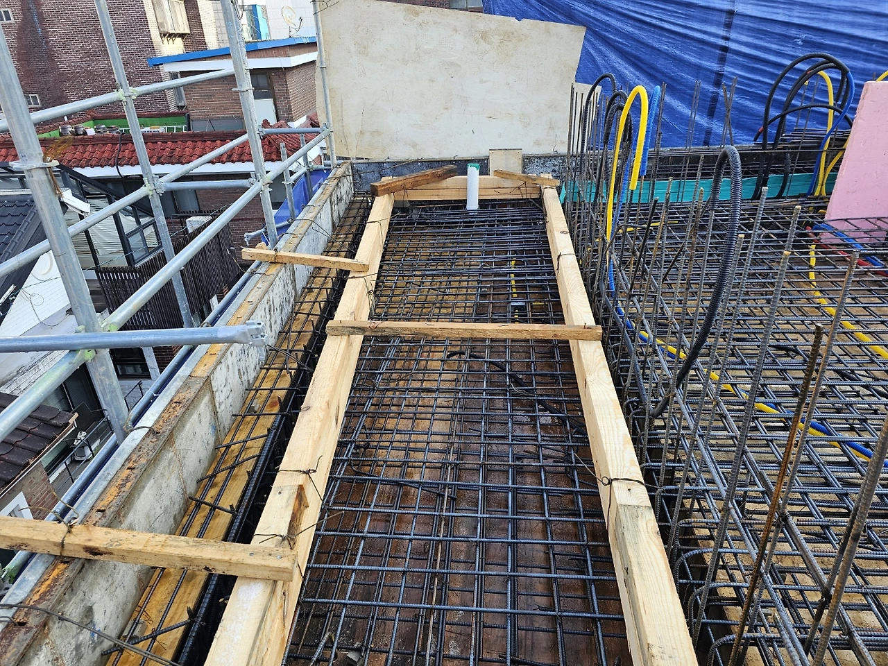 층이 올라가면서 현장에선 누수와 결로에 신경을 많이 쓰고 있다. 기초공사 과정에서 방수작업을 꼼꼼히 할 뿐 아니라, 침수가 생기면 건물에 치명적이므로 물이 빠져나가는 길을 잘 만들어 두는 것이 중요하다. 단열재와 창호의 성능이 좋아지면서 결로 또한 걱정거리 중 하나다. 결로는 온도차로 인해 생기는 것이라 이걸 완벽히 방지할 수 있는지는 나도 궁금하다. 전체적으로 막바지에 방수작업이 있기도 한데, 옥상에서 물이 더 잘 빠지도록 건물 외벽에 선홈통을 하나 더 추가하기로 했다. 내일은 드디어 타설. 3층이 생기는 날이다.
