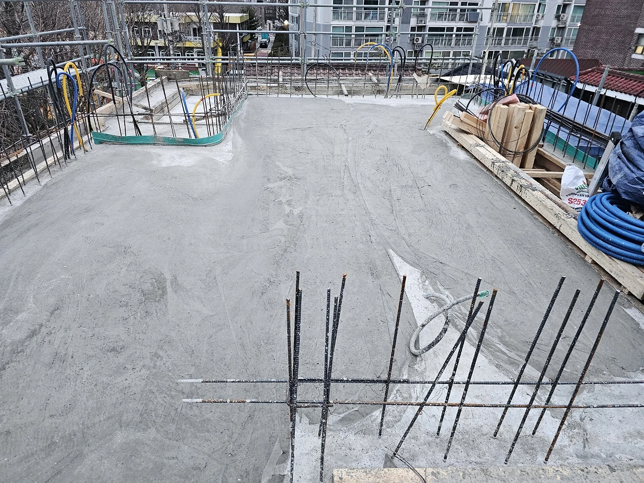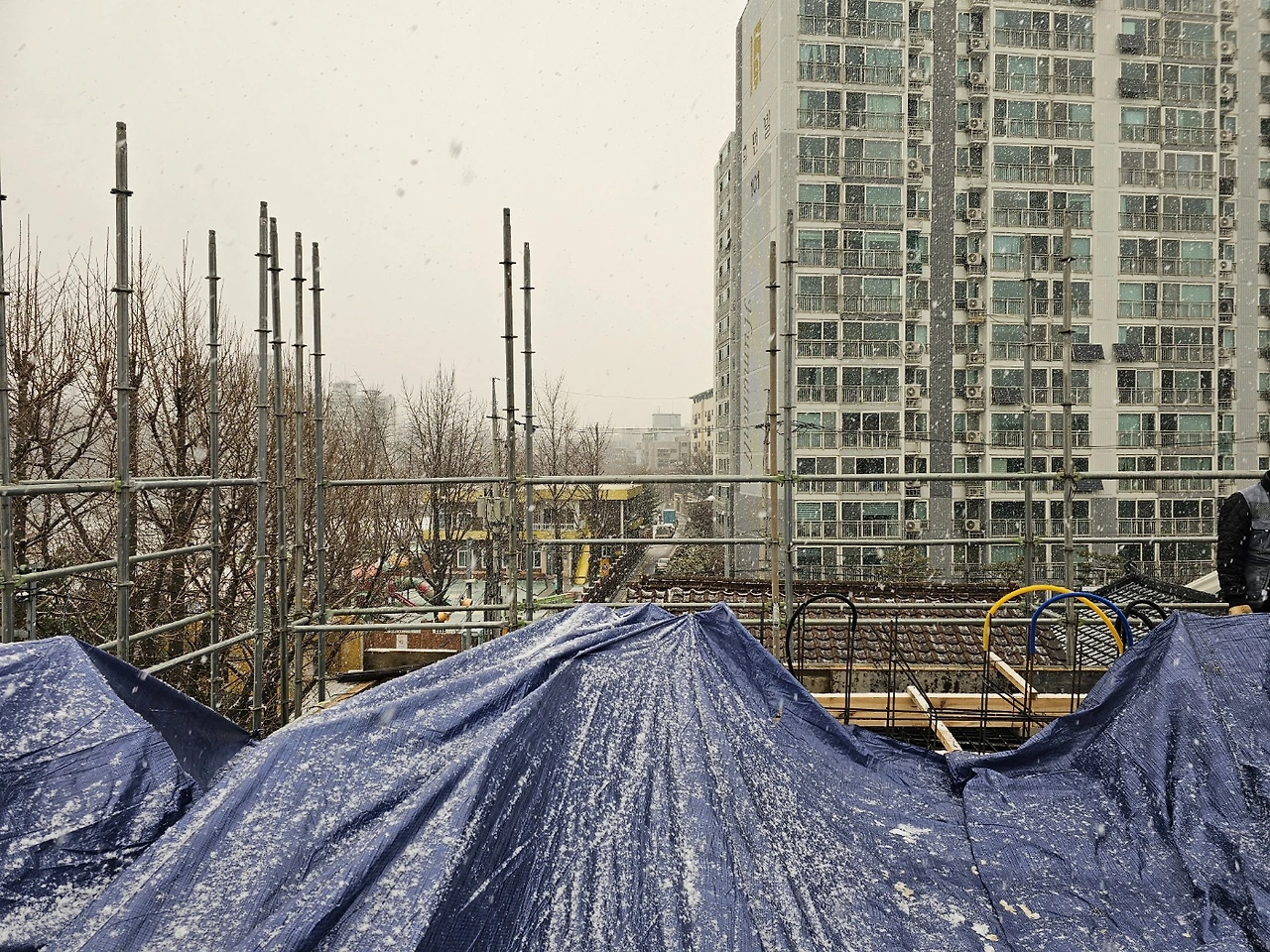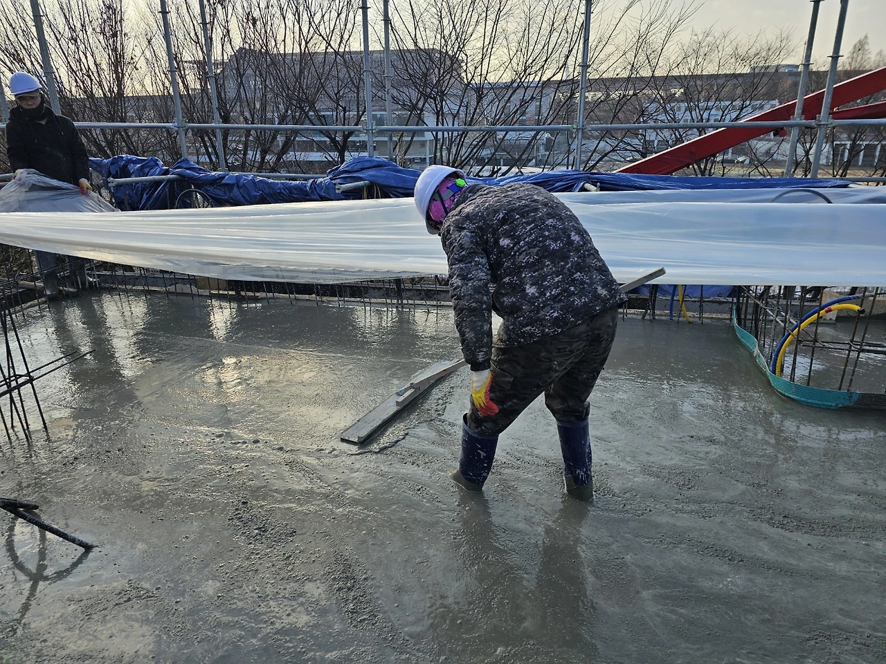 3층 레미콘 타설 예정이었으나 눈으로 연기