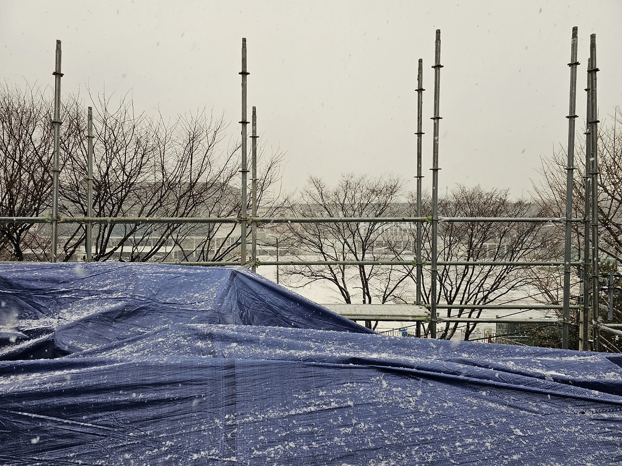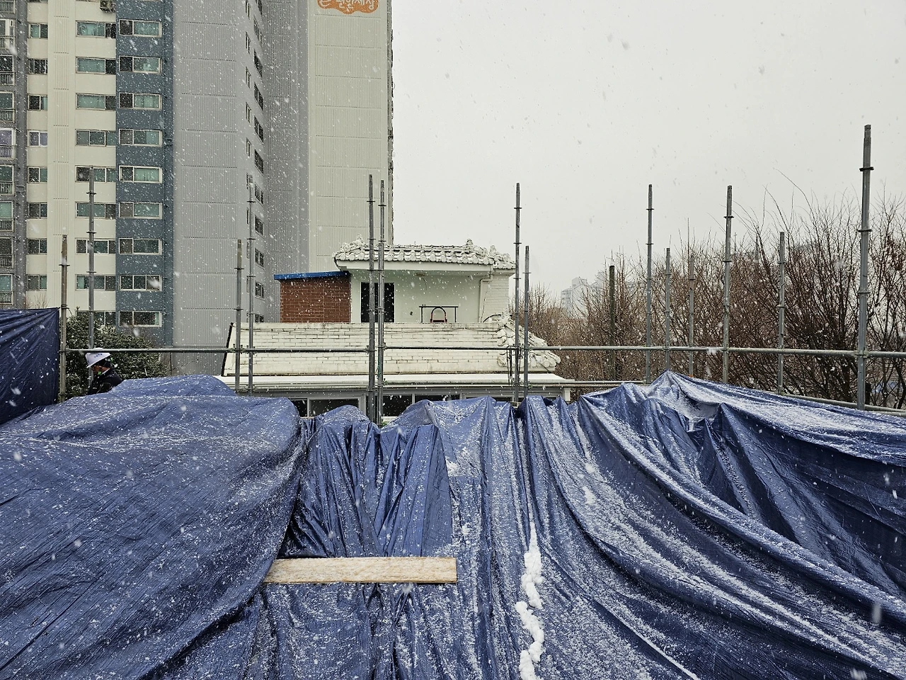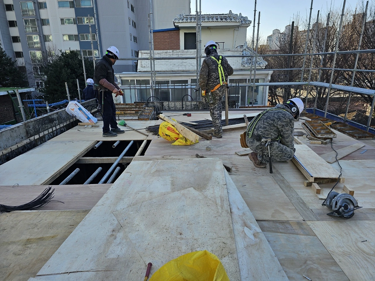 3층 레미콘 타설 예정이었으나 눈으로 연기