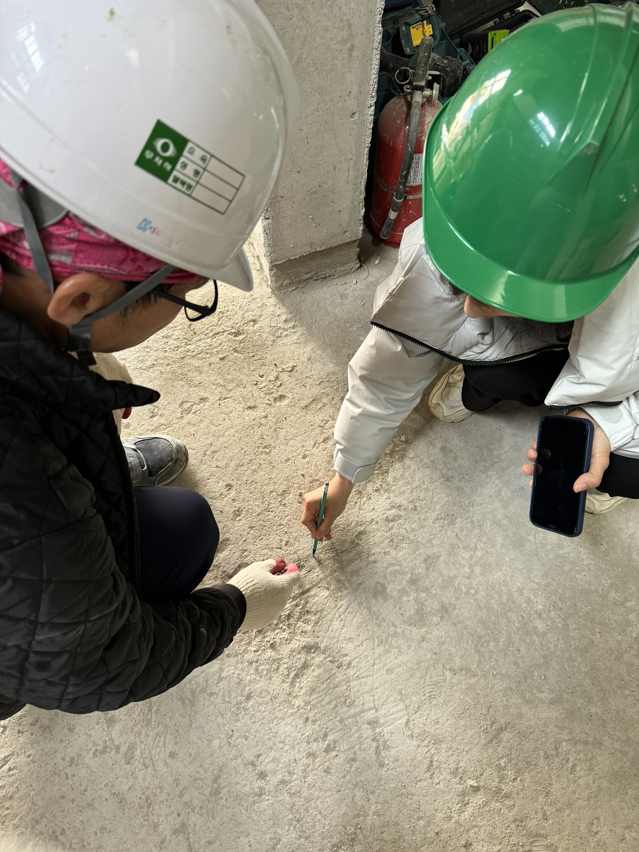 좋은 소식만 있을 순 없고, 건물 입구의 바닥 면이 도로 높이보다 낮아 도로로부터의 침수를 대비하려면 전체적으로 바닥을 높이는 작업이 필요하다고 한다. 도로면이 고르지 않아서 생긴 문제로 덕분에 입구부터 1층 바닥까지 조금씩 높이를 메워야 한다. 상업공간으로 쓰일 텐데 지금도 낮(아보이는)은 층고를 지켜달라 부탁을 드렸더니 소장님 두 분이 바닥에 서로 그림을 그려가며 열심히 논의를 하셔서, 1층 층고를 최대한 확보하는 방향으로 결론이 났다. YAY!