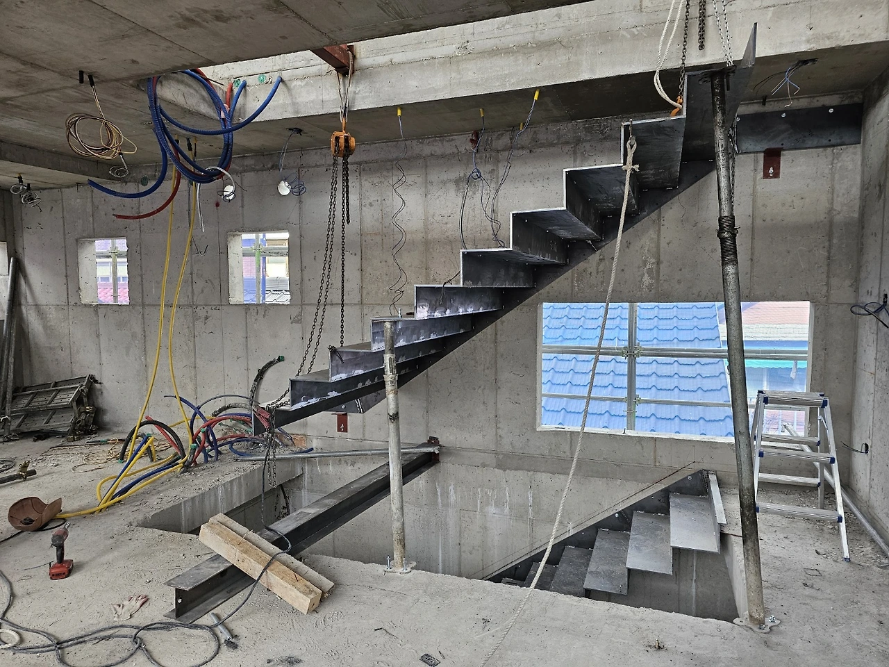 1. 금속공사-금속계단 시공, 금일 3층 시작