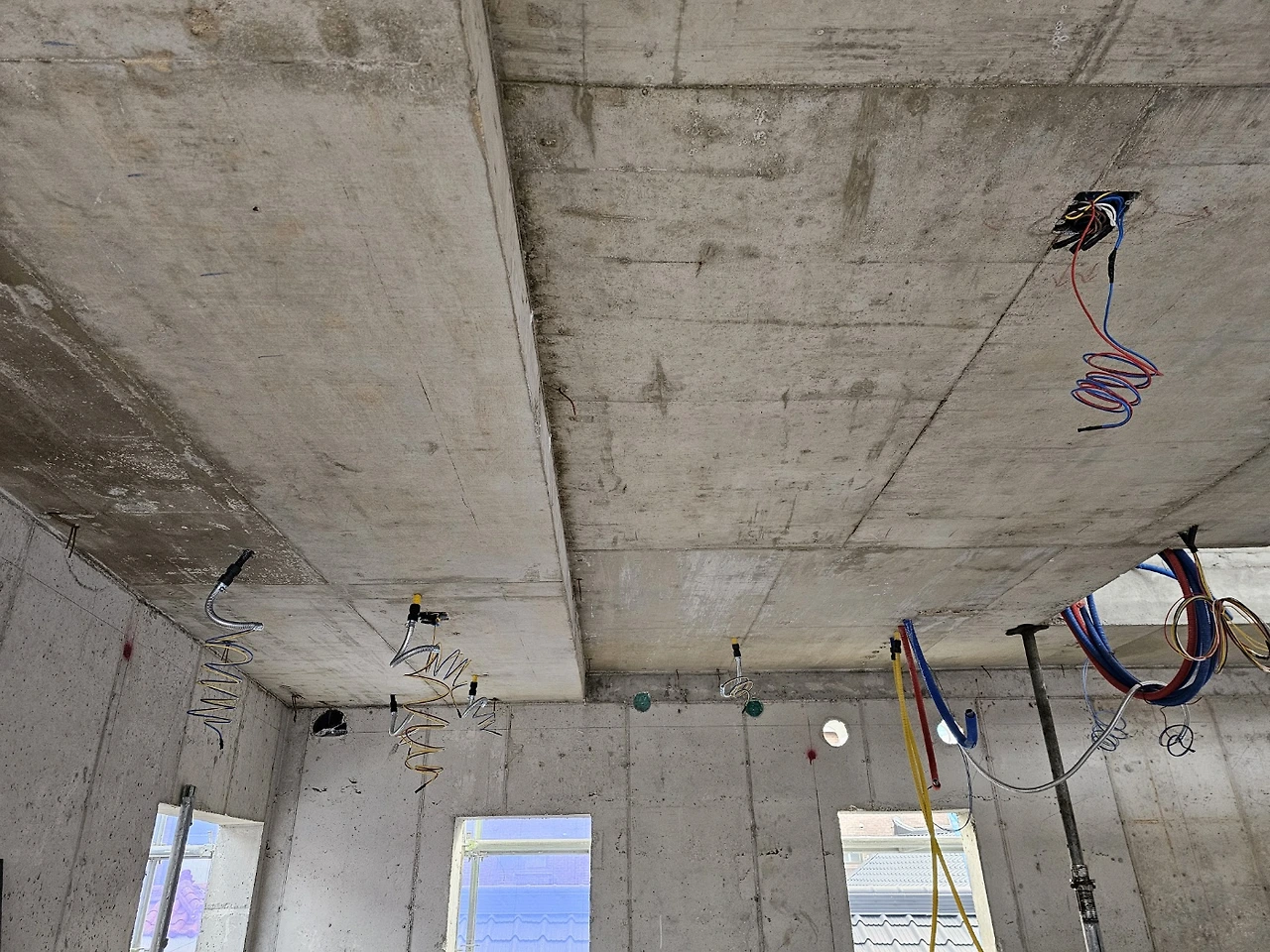 1층 바닥을 셀프레벨링*으로 처리해서 처음 계획한 몰탈 대비 크랙을 줄이고 바닥 두께도 얇게 마감할 수 있다는 시공사의 제안이 있었고 그렇게 진행하기로 했다. 반복해서 언급하는 층고가 아주 높았으면 했으나, 아쉬운 편인데 50mm가량 먹매김 된 바닥 마감선을 따르면 층고가 더 줄어들 거 같아 걱정인 건축주는 반갑다.