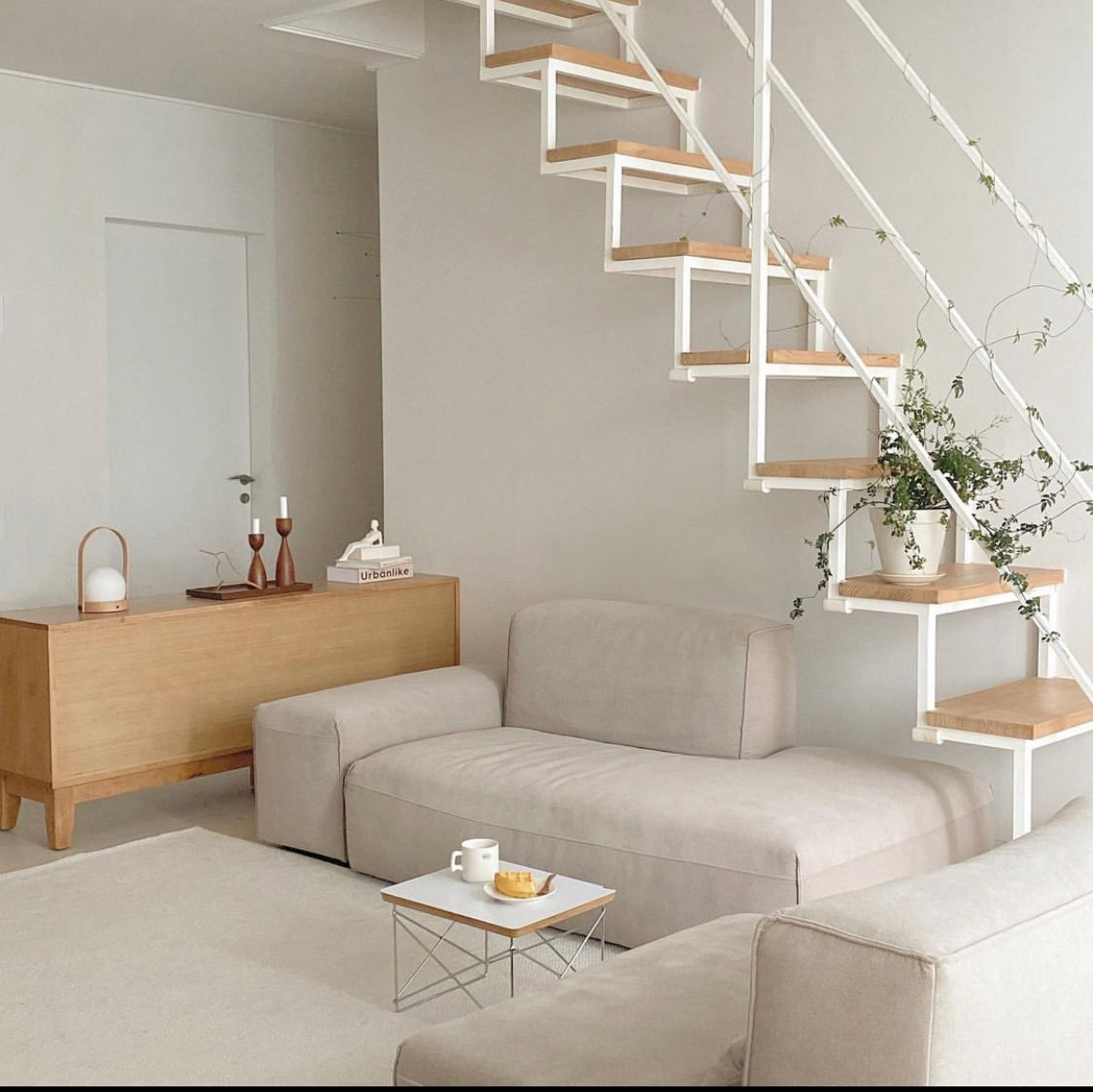2층 계단 아래로 TV 위치를 바꾸기로 하면서 통신라인이며 콘센트 등이 추가로 필요해졌고, 벽면 한켠에 위치한 수납공간용 스위치가 걸릴 거 같아 옮겨보려 했으나 쉽지 않은 작업이었다. 문이 달린 공간이라 센서등으로 교체하는 것도 잠깐 검토가 되었으나, 센서등이 되려면 중선(약한 전기가 계속해서 흐르는)까지 세 가닥의 전선을 빼둬야 하는데 스위치 방식으로 두 가닥만 빼두어서 실패. 적절히 오픈 선반을 배치해 보기로 했다.