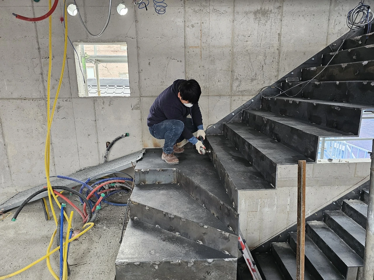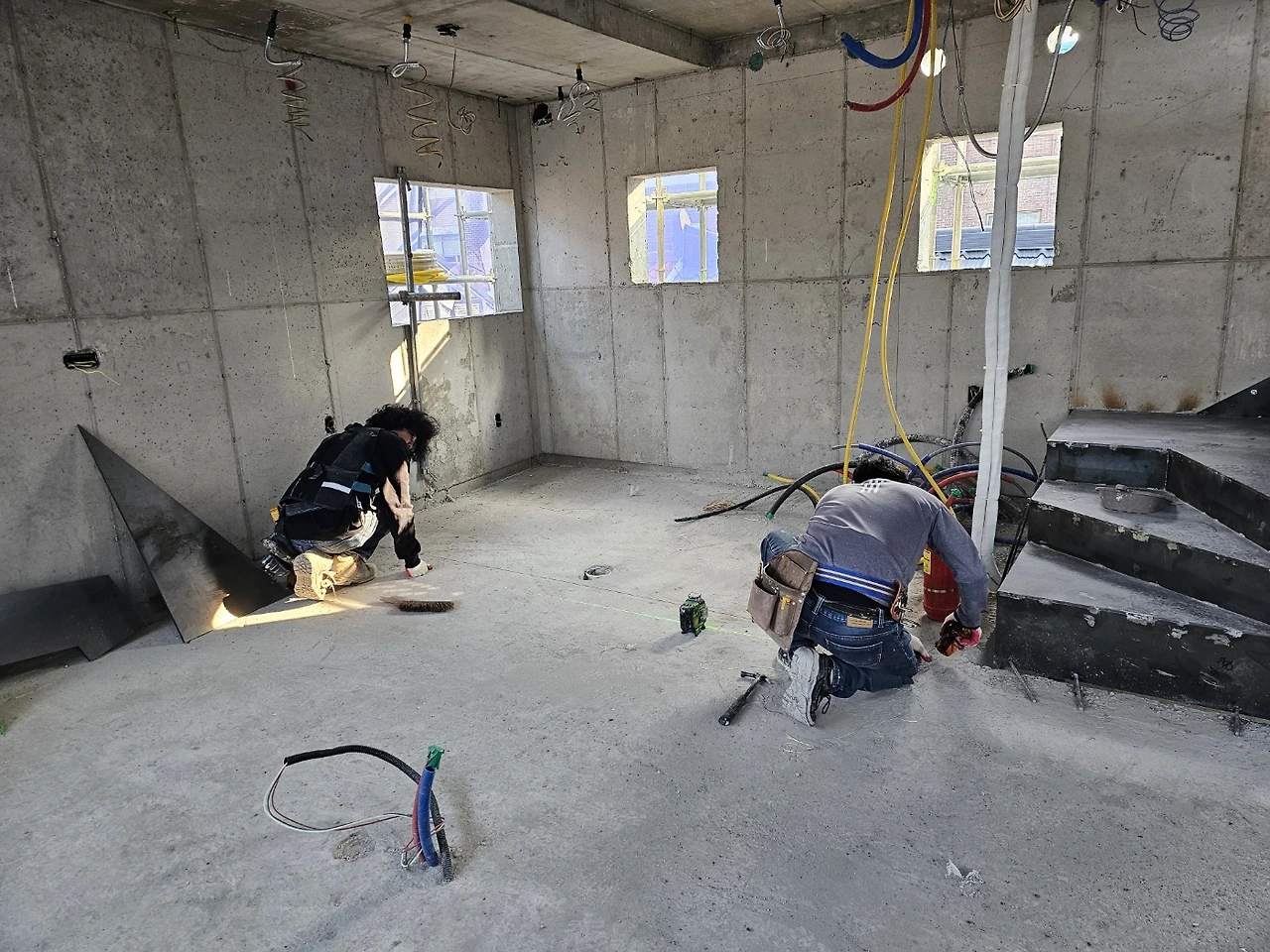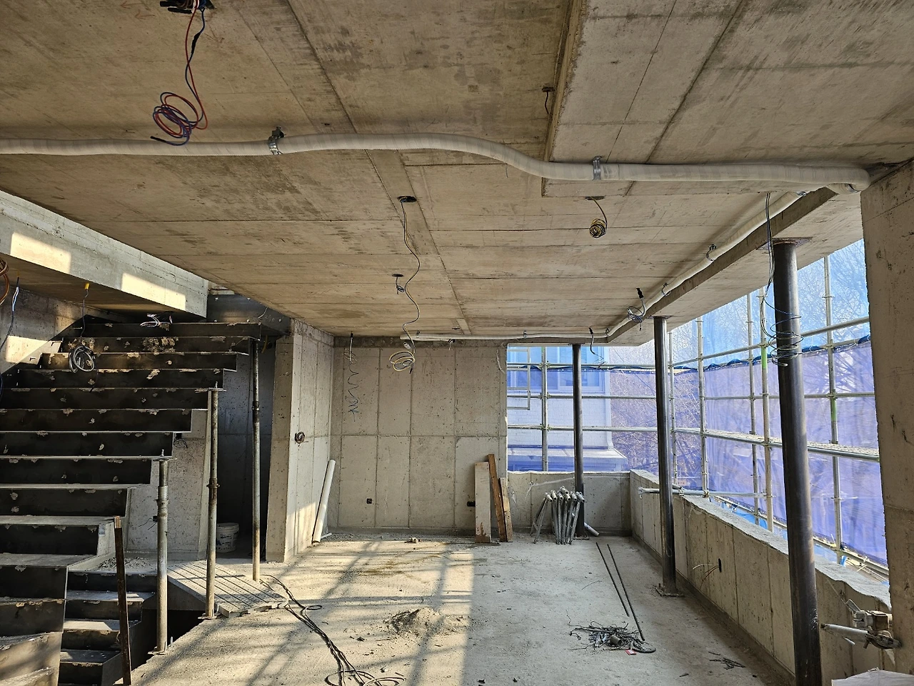 내부가 계단으로 모두 연결되고 이제 다듬는 작업이 시작되었다. 설비 배관을 위해 단단한 콘크리트 벽도 뚫어야 하고 직접 듣진 못하지만 소음이 꽤 생기는 일들이라 걱정이 생기는 기간이기도 하다.
