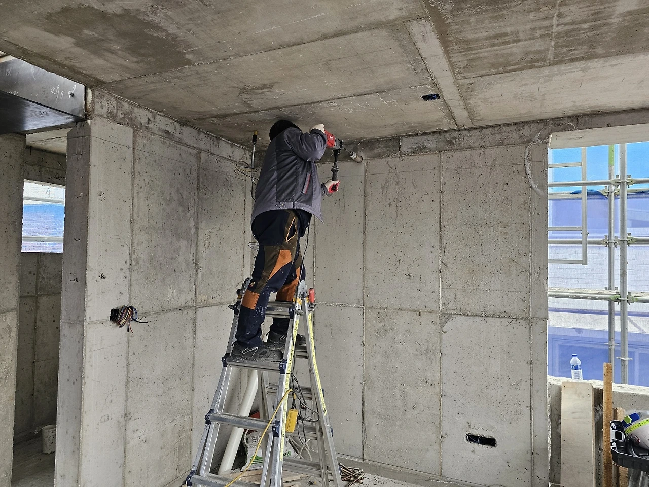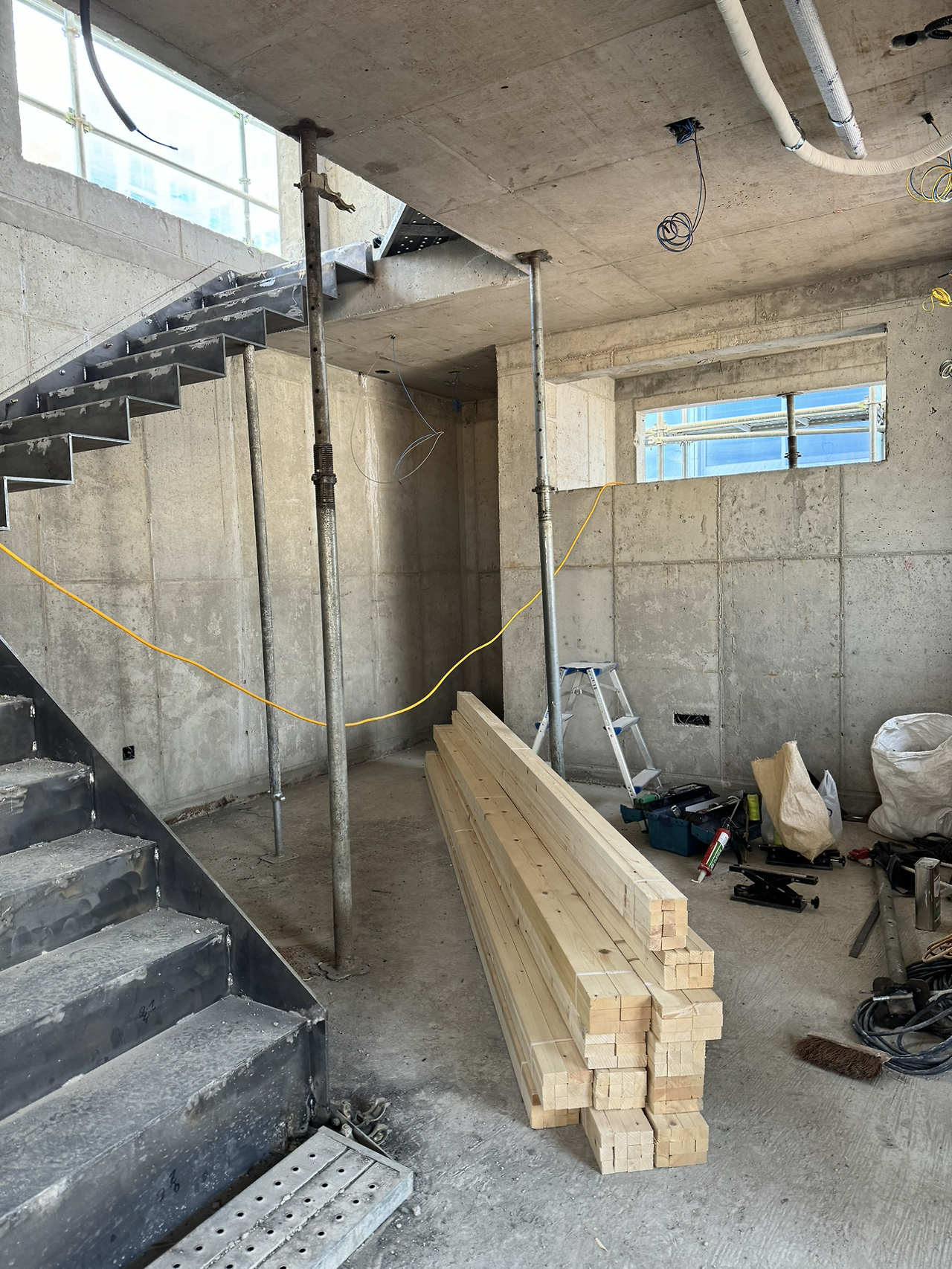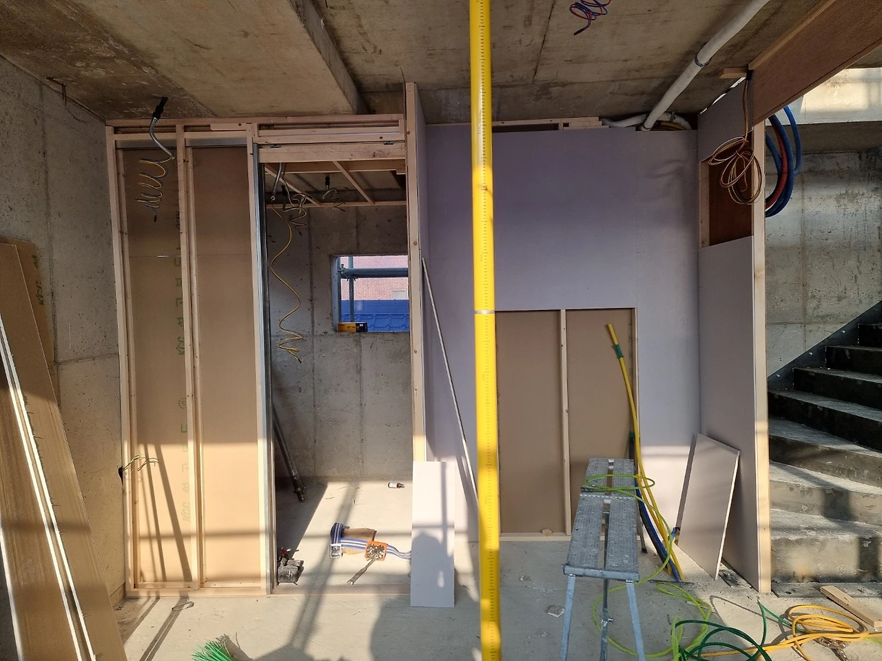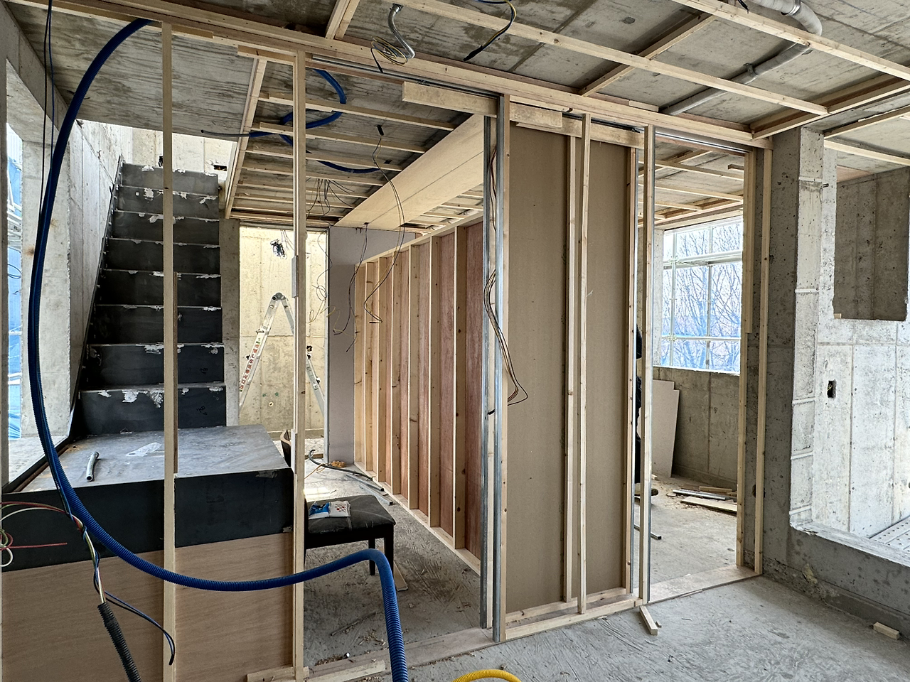 내부가 계단으로 모두 연결되고 이제 다듬는 작업이 시작되었다. 설비 배관을 위해 단단한 콘크리트 벽도 뚫어야 하고 직접 듣진 못하지만 소음이 꽤 생기는 일들이라 걱정이 생기는 기간이기도 하다.