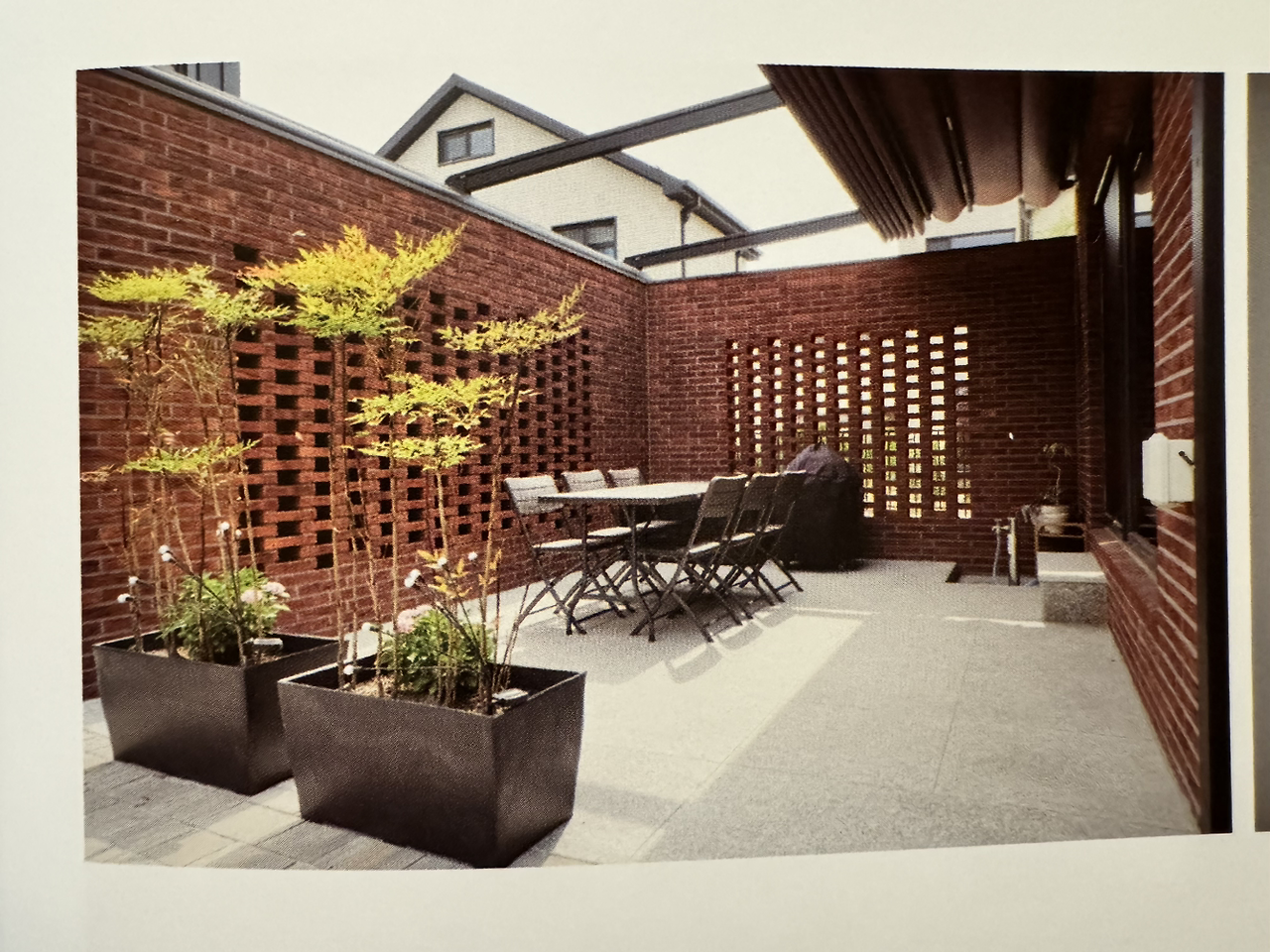 계단실의 지하창에 빛이 닿으면서 통풍도 잘되어야 하고, 계단을 오가며 하늘을 보는 것도 놓칠 수 없다. 그러니, 벽으로 막지는 말고 저 요건을 충족하는 방법을 찾아보자로 마무리되었는데, 지금까지 나온 안은 '어닝'(효과 없을 걸 모두 예상), '뚫린 벽돌을 약간 바깥쪽으로 기울여 쌓는 방식', 부분적으로라도 '투명유리 혹은 볼록유리로 막는 방법' 등등등.