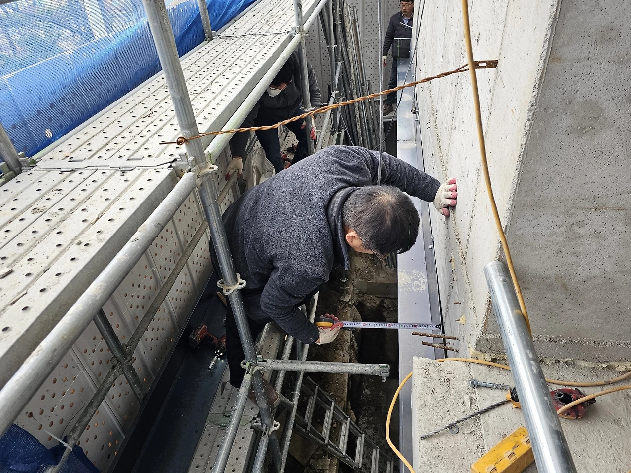 1. 금속. 건물 외벽 수평. 수직 기준선 내림
