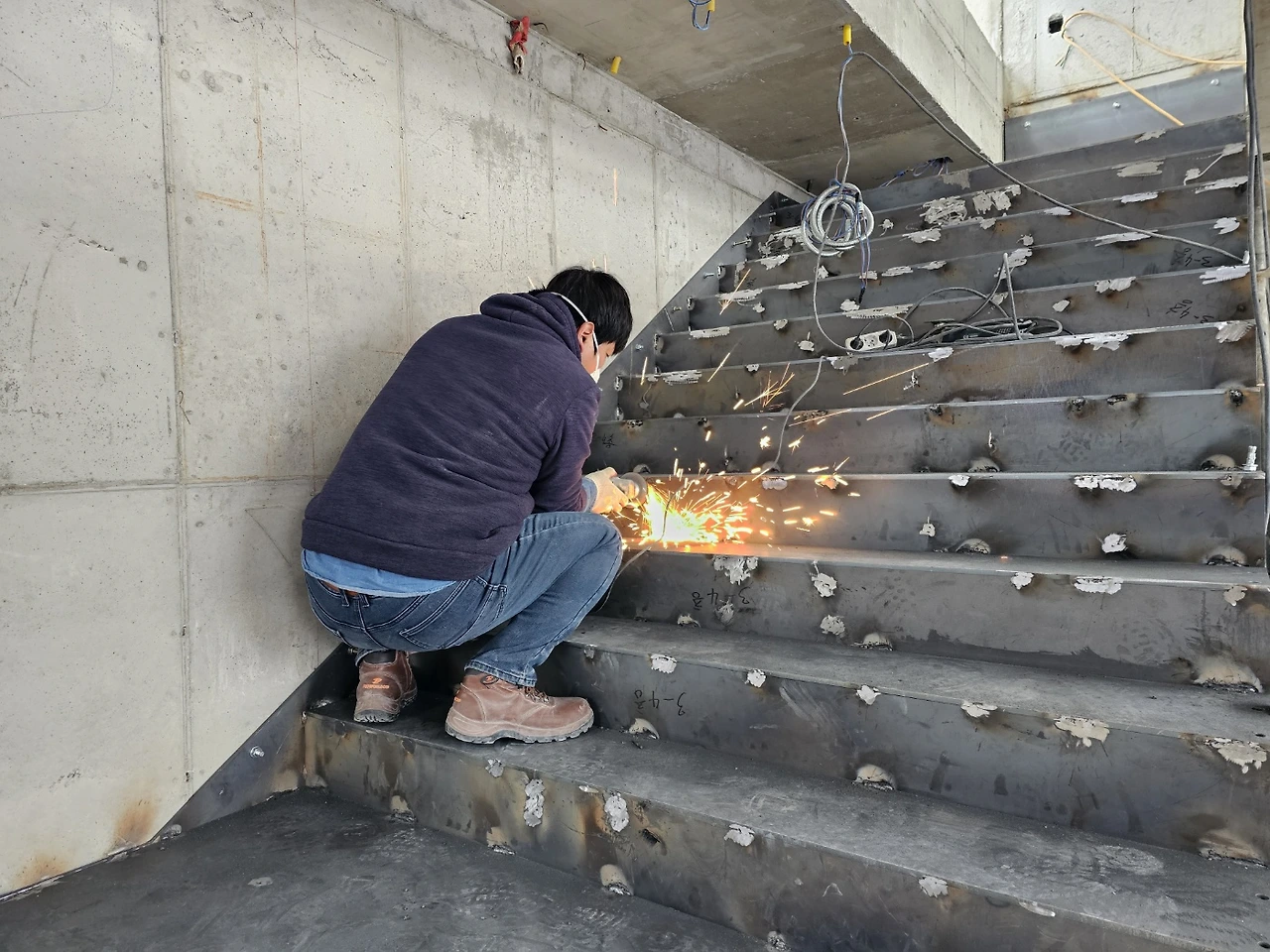 1. 금속계단 용접부위 샌딩