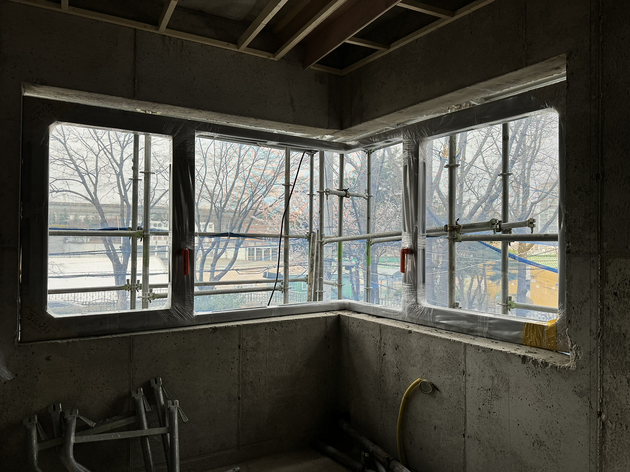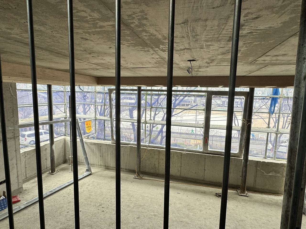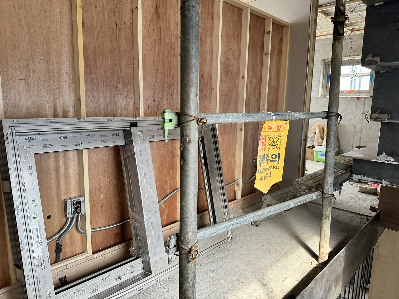 이번 주는 비가 왜 이렇게 오는지... 수목금에 창호설치가 완료되는 주라 기대했으나 비로 인해 일정이 약간 밀렸다. 이런 날은 한결 정확해지는 듯한 일기예보 대로 아침부터 비가 꽤 온다. 황사비를 제대로 맞고 있는 자재가 걱정되어 누림 대표님에게 여쭤보니 다행히 괜찮다고 하신다. 층마다 자재를 옮겨놓고 4층부터 작업이 시작되었다. 창호를 벽에 고정하다 보니 드릴을 박는 소음이 꽤 나는 모양이다. 그래서 토요일은 휴무.