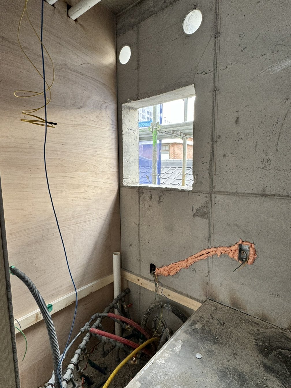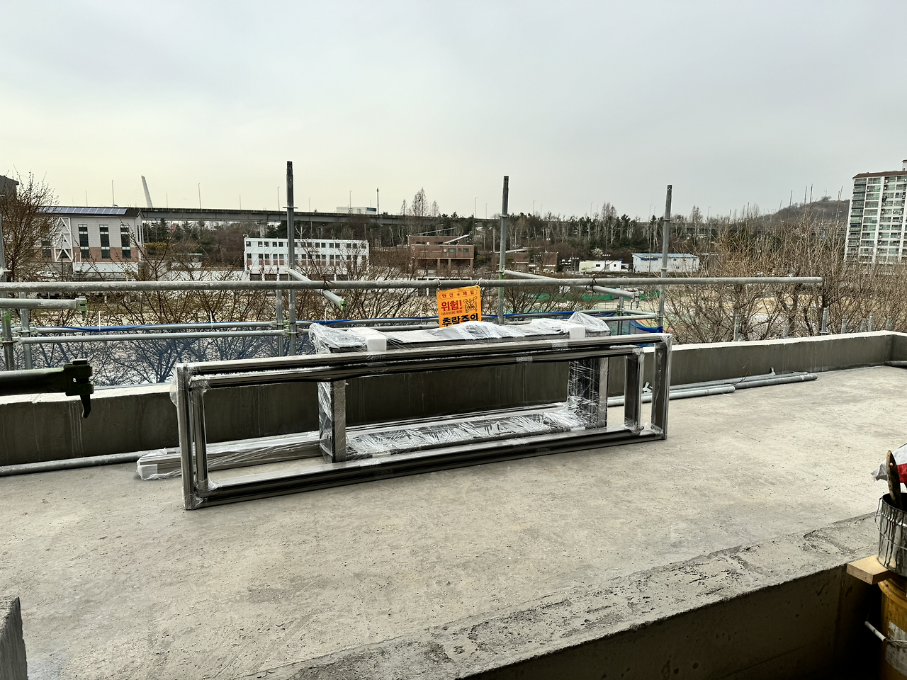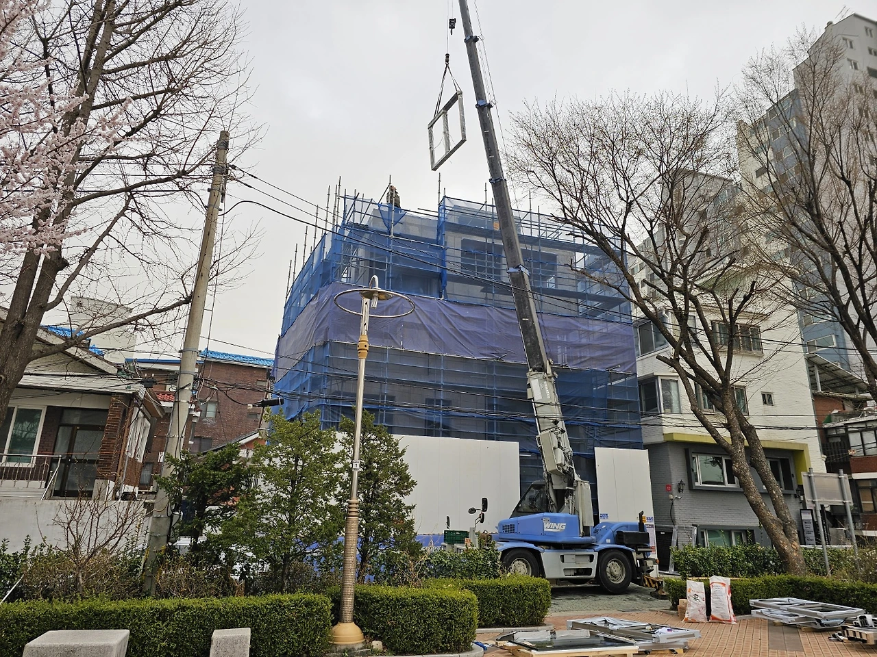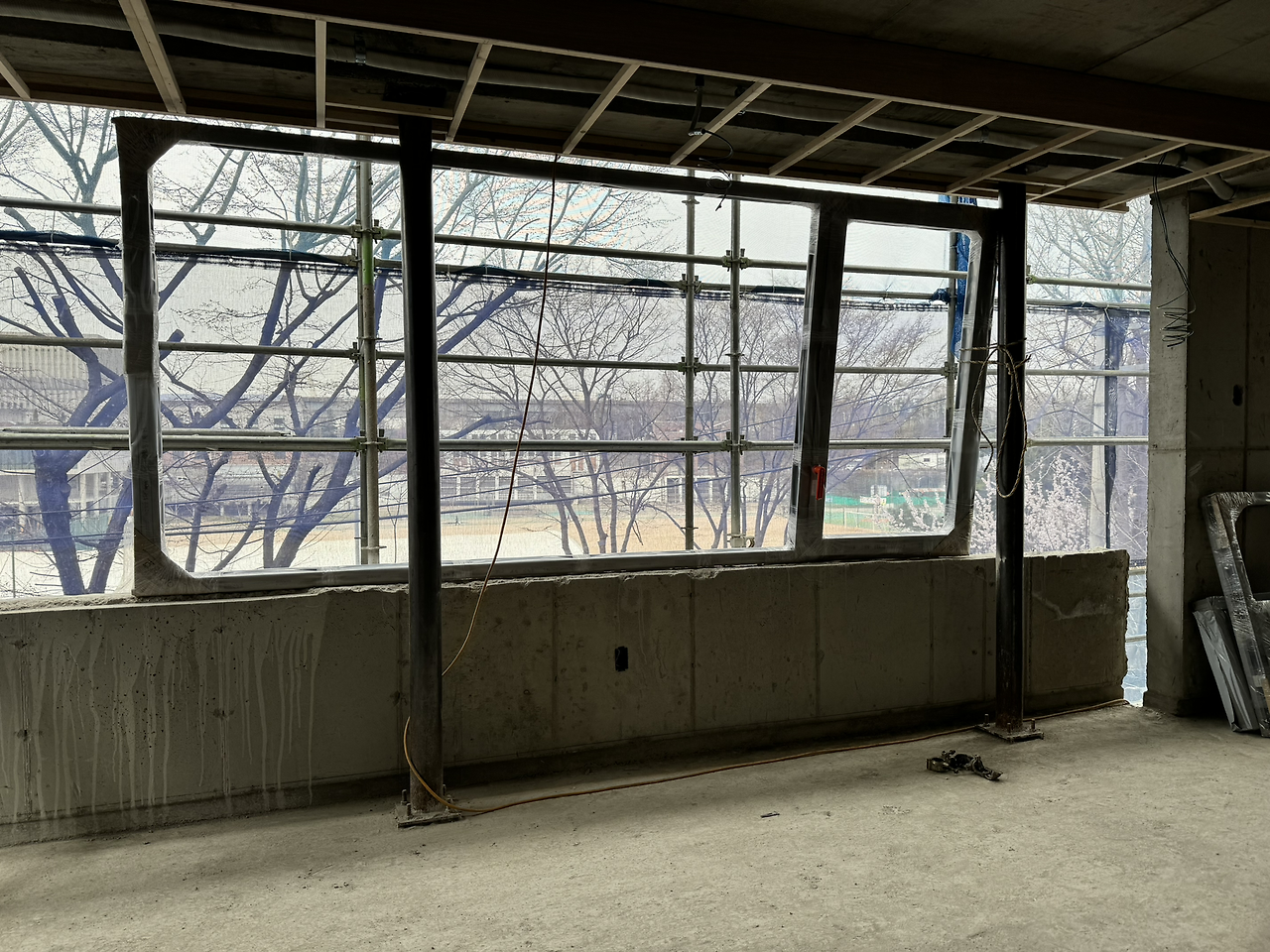 이번 주는 비가 왜 이렇게 오는지... 수목금에 창호설치가 완료되는 주라 기대했으나 비로 인해 일정이 약간 밀렸다. 이런 날은 한결 정확해지는 듯한 일기예보 대로 아침부터 비가 꽤 온다. 황사비를 제대로 맞고 있는 자재가 걱정되어 누림 대표님에게 여쭤보니 다행히 괜찮다고 하신다. 층마다 자재를 옮겨놓고 4층부터 작업이 시작되었다. 창호를 벽에 고정하다 보니 드릴을 박는 소음이 꽤 나는 모양이다. 그래서 토요일은 휴무.