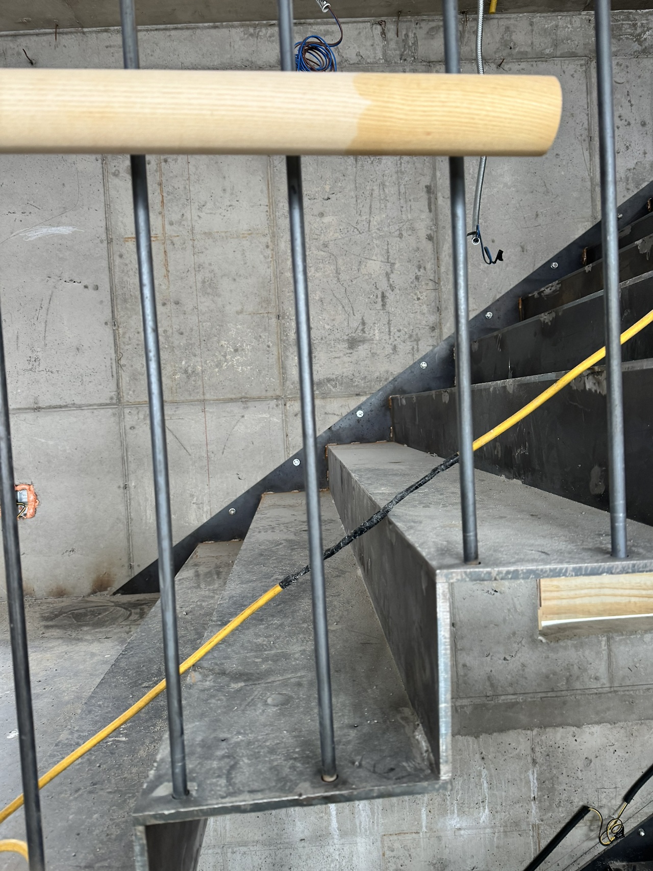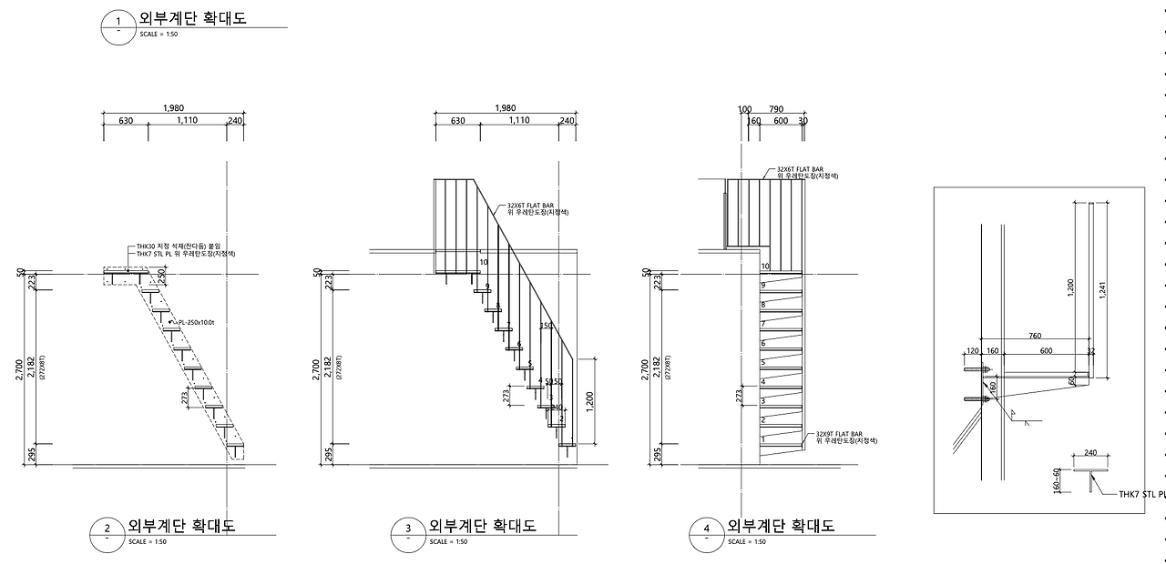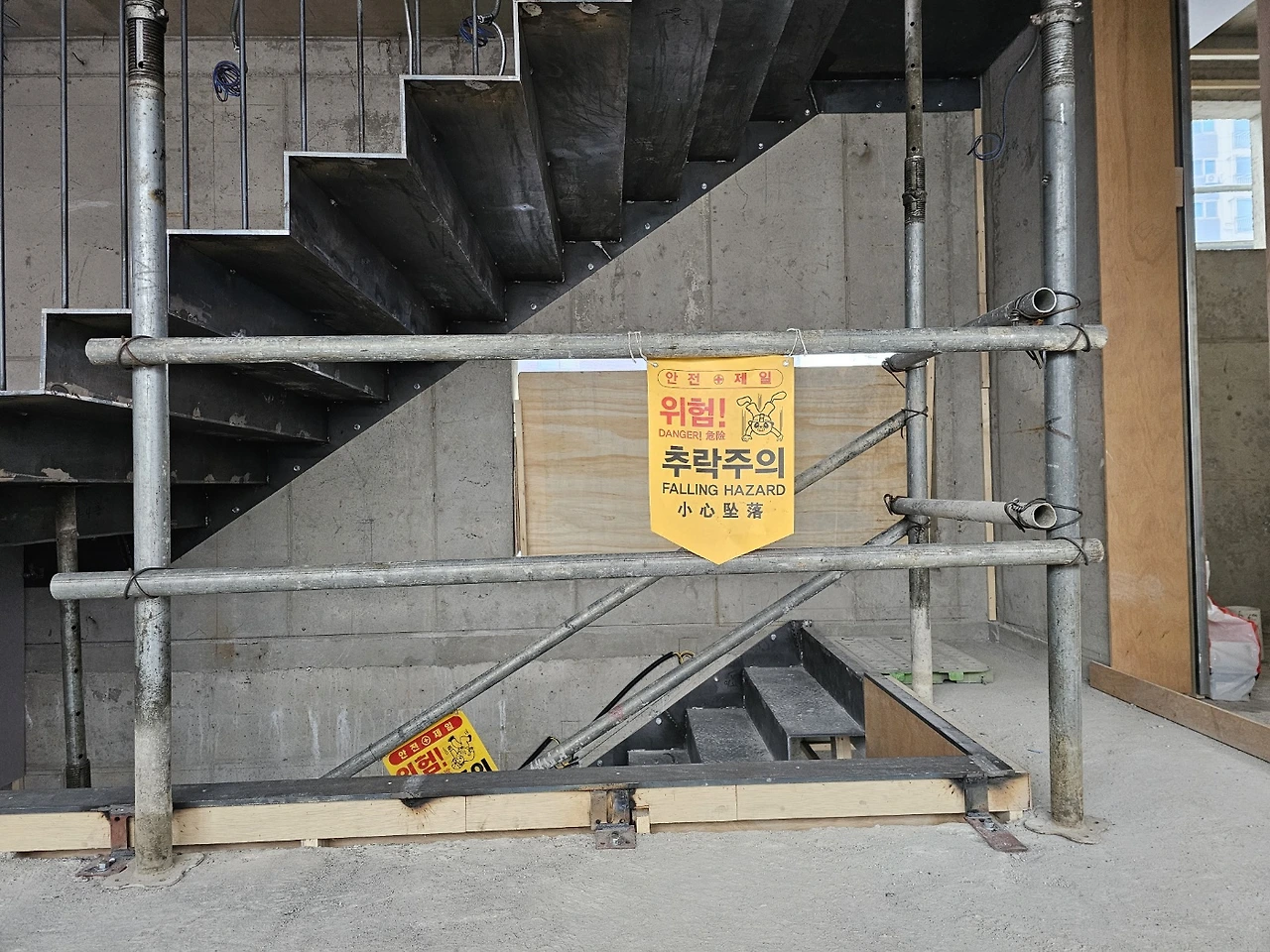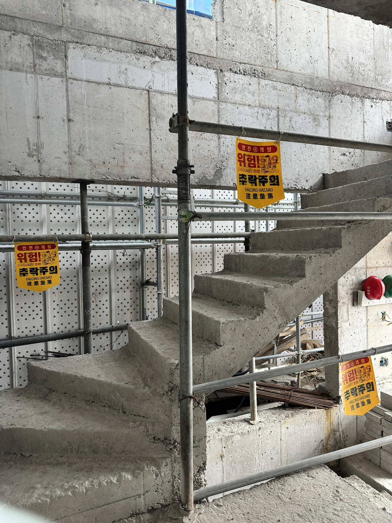 옥외계단의 위치가 변경되면서 계단폭, 높이가 조정되었다. 기존 계단 면과 폭은 동일하지만, 일조권을 고려해서 겹치는 면이 늘어나면서 내려올 때 조심해야 할 수 있다고 함께 알려주셨다. 그래도 바뀐 위치가 낫다.