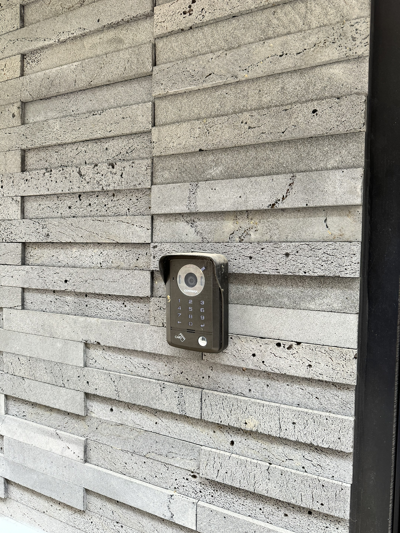 세대분리가 가능한 로비폰을 꼼꼼히 알아봐 주어서 현장소장님과 같이 공원에서 의논해 보았다. 로비폰은 비용도 크게 차이가 나지만, 실내 설치용이다 보니 외부 설치 시 날씨 등 신경 써야 할 것들이 늘어나는 탓이 설치위치부터 관리까지 여러 가지 시뮬레이션을 해보다가 단독주택에 적합한 대문 벨과 비밀번호 관리가 가능한 간단한 버전(Comax 41DK)을 선택하기로 했다. 카메라가 있어 방문자 확인이 가능하고 홈오토로 출입문 개폐를 할 수 있다. 마침 동네를 걷다가 동일한 모델이 설치된 건물을 봤는데 크기도 적당하고 외부에 설치하기에도 부담이 없겠다. 우리집은 깔끔하게 매립형으로 설치 예정.