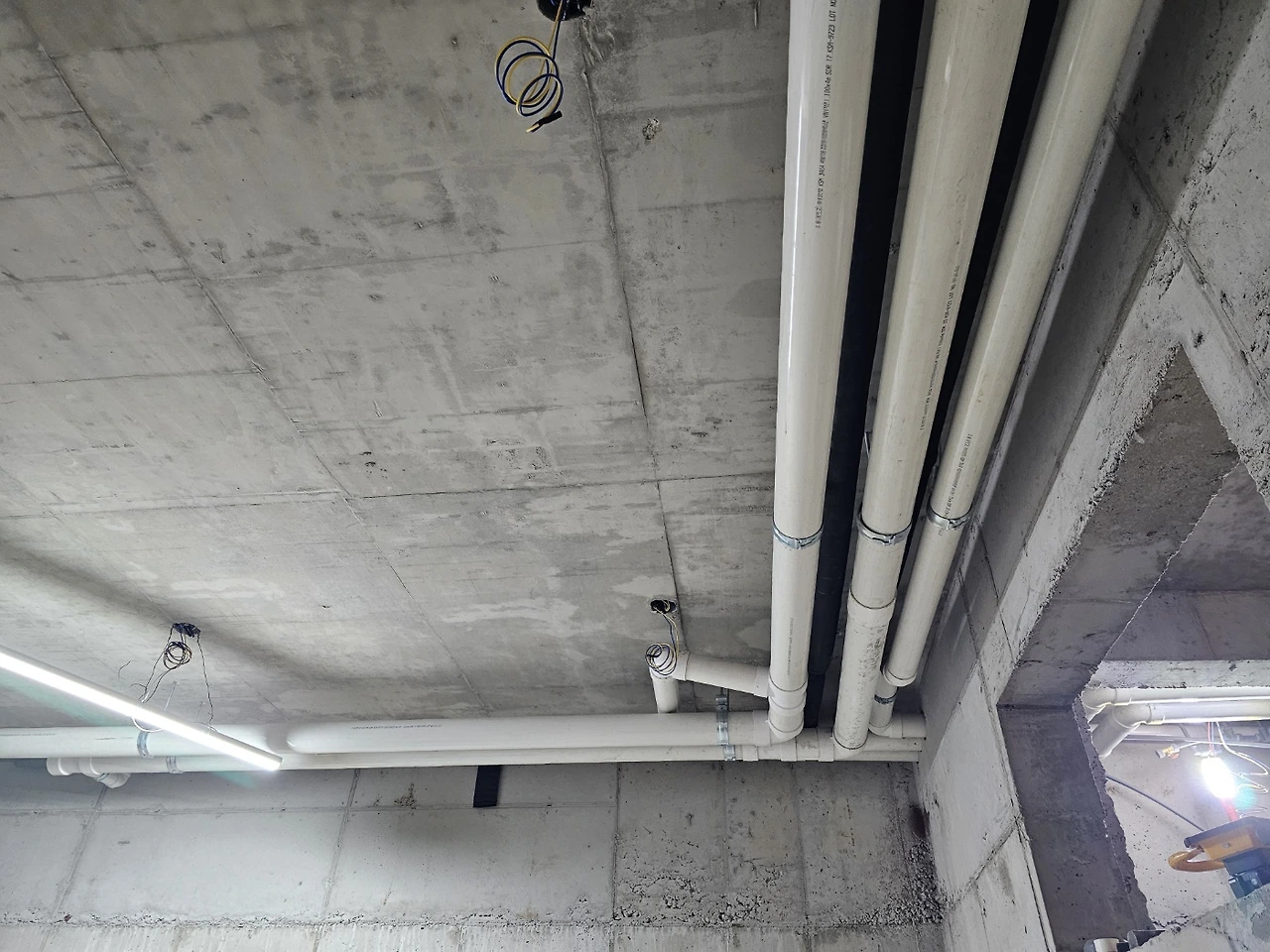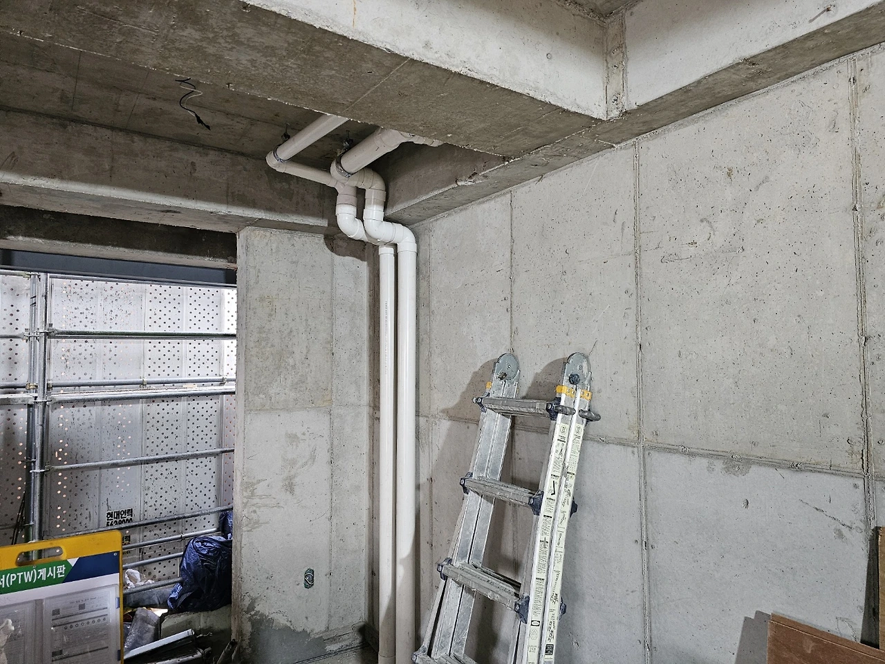 입상배관 : 서로 다른 층 간 연결된 건물의 내부 배관. 수직으로 연결되어 오수, 배수를 운반하는 역할을 하기 때문에 고정 클램프로 안전하게 고정하는 것이 중요하다.