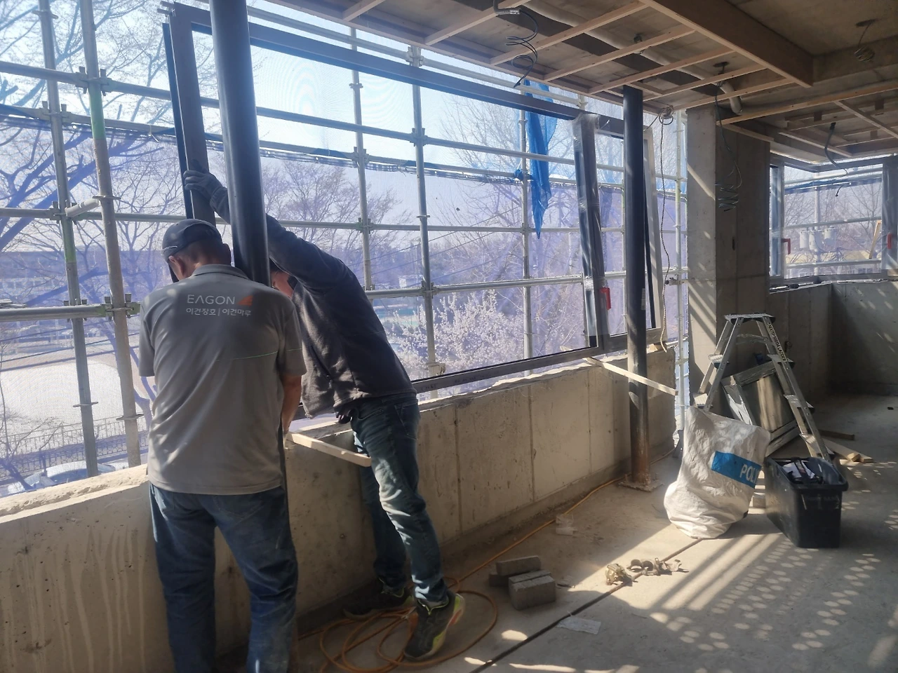 명일 : 설계감리미팅 / 방수작업 / 창호설치
