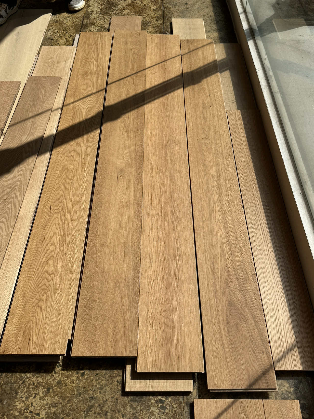 쉽지 않은 결정이지만, 조소장님과 설계 초기 다양한 자재들을 함께 검토한 적이 있고, 후보군으로 받아놓은 샘플로 범위를 좁혀놓아 1차 선정 범위(내추럴 오크) 내에서 디테일에 집중해 골라볼 수 있었다.