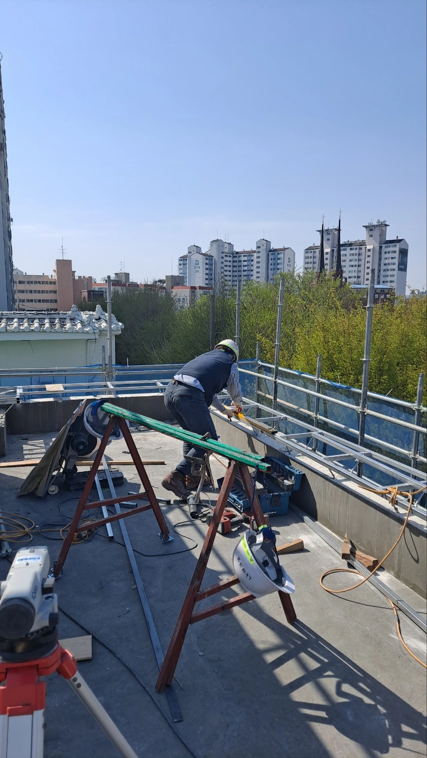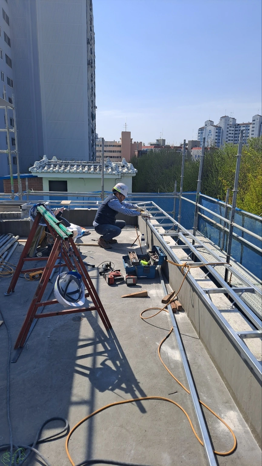 전기가 접지선을 타고 누전 없이 잘 빠져나가는지, 외벽에 붙은 금속 후레싱과 벽 사이의 꼼꼼한 방수처리 등 오늘은 안전하고 오래가는 건물을 위한 작업들이 이루어진 날.