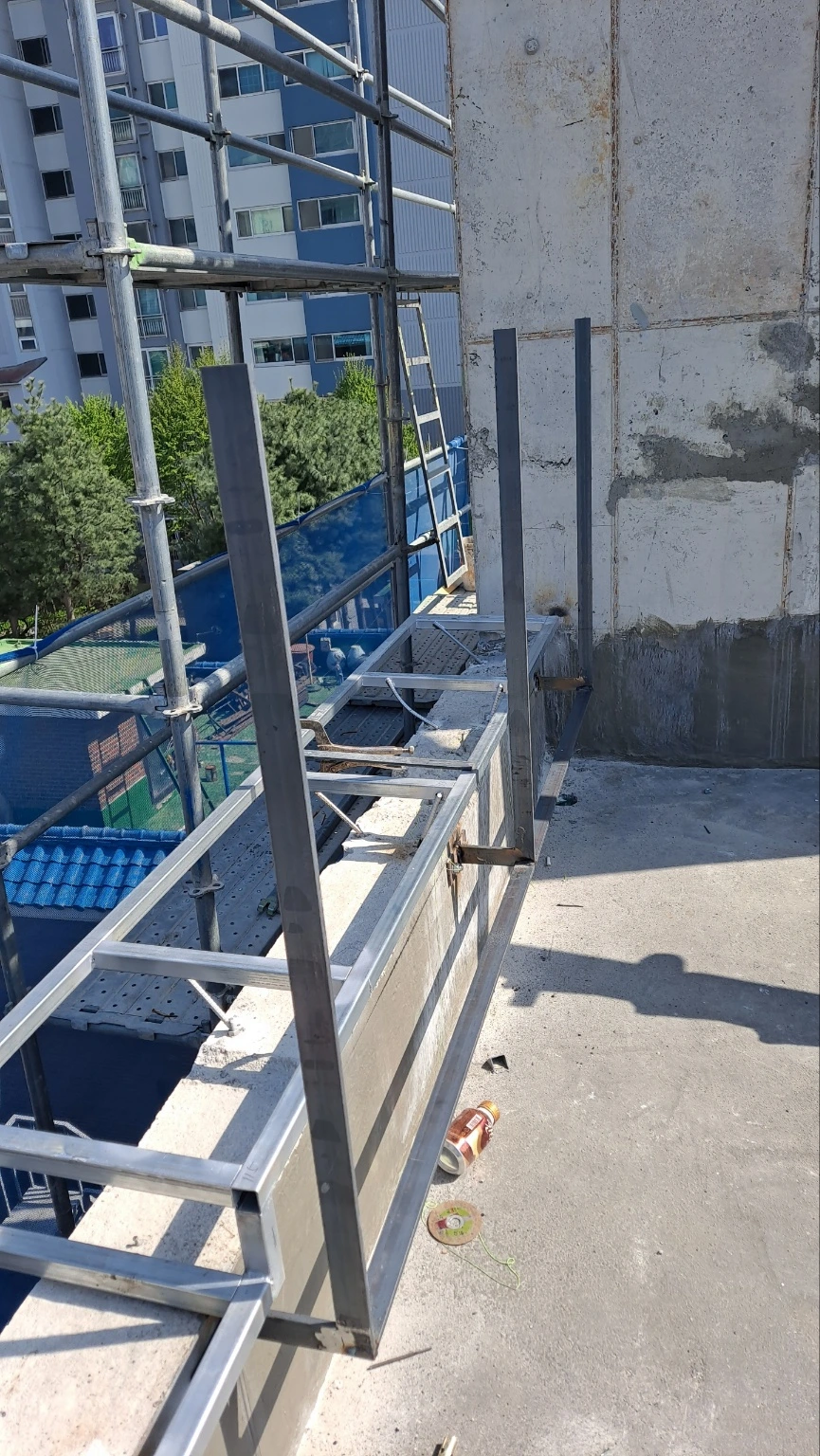 2. 금속 - 3층거실창 상. 하부 조형물 띠장 설치. 옥상 드레인설치