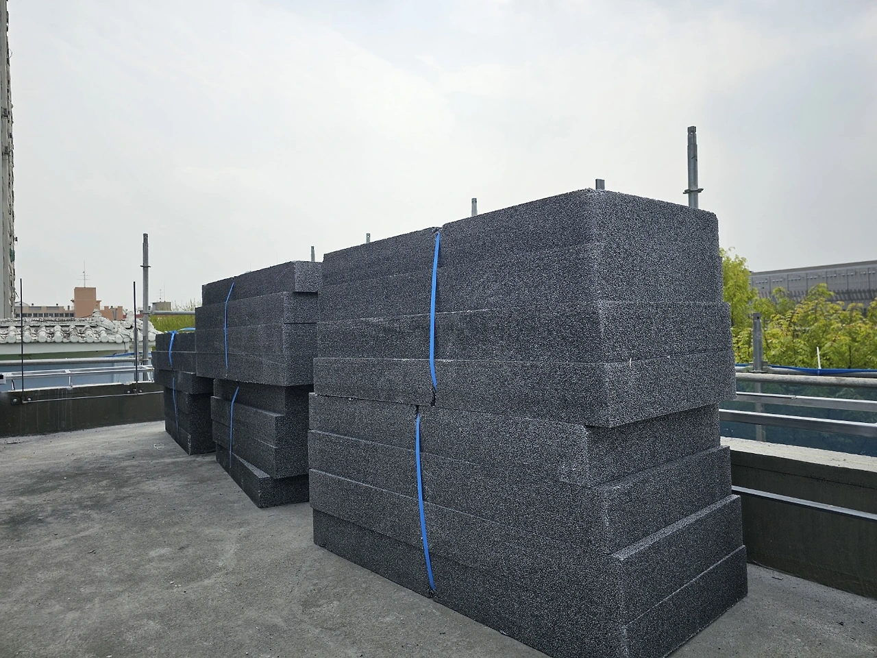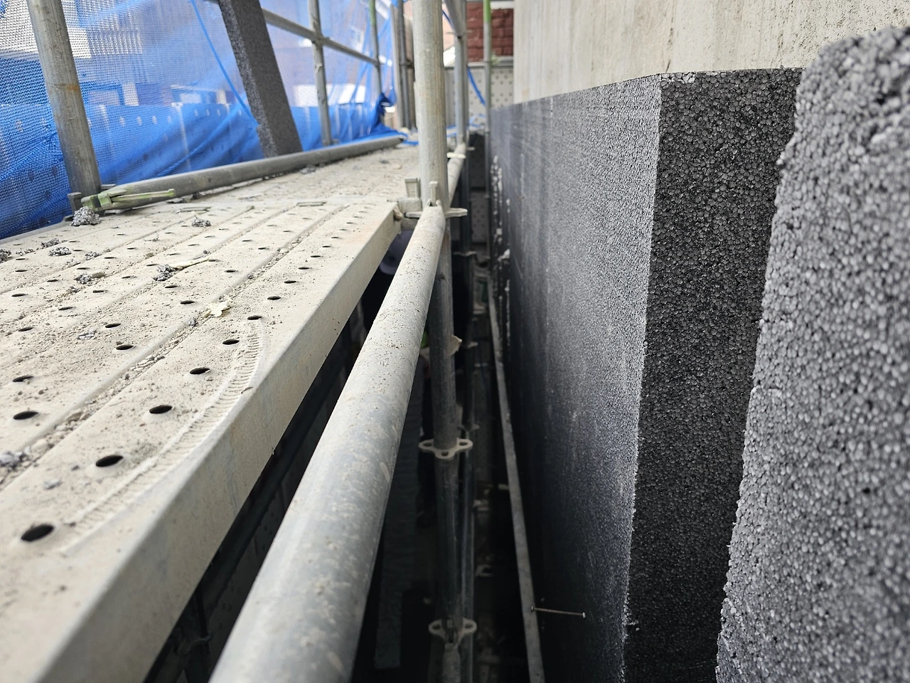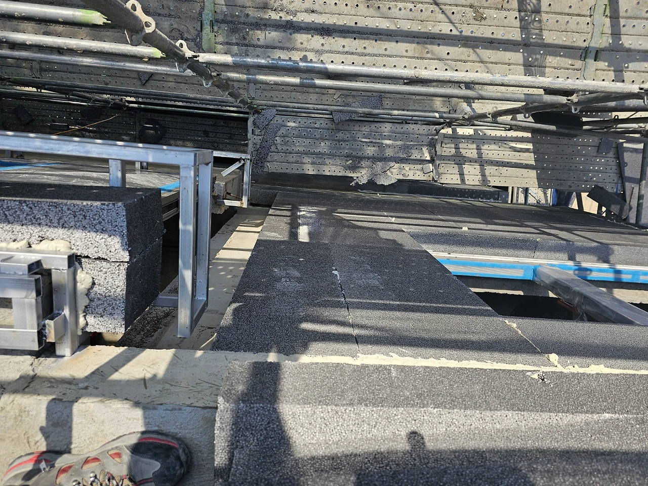 건물이 옷을 입게 된다. 바깥으로 드러나진 않으니 내복 정도랄까? 내복도 몸에 잘 달라붙어야 겉옷의 맵시도 있고 체온을 보호하기도 하니, 접착몰탈로 콘크리트벽에 단단히 붙여야 외장재도 마음 놓고 붙일 수 있게 된다. 130mm 정도의 단열재가 외벽에 붙게 되니 건물이 몸집도 덩달아 커질 예정이다.