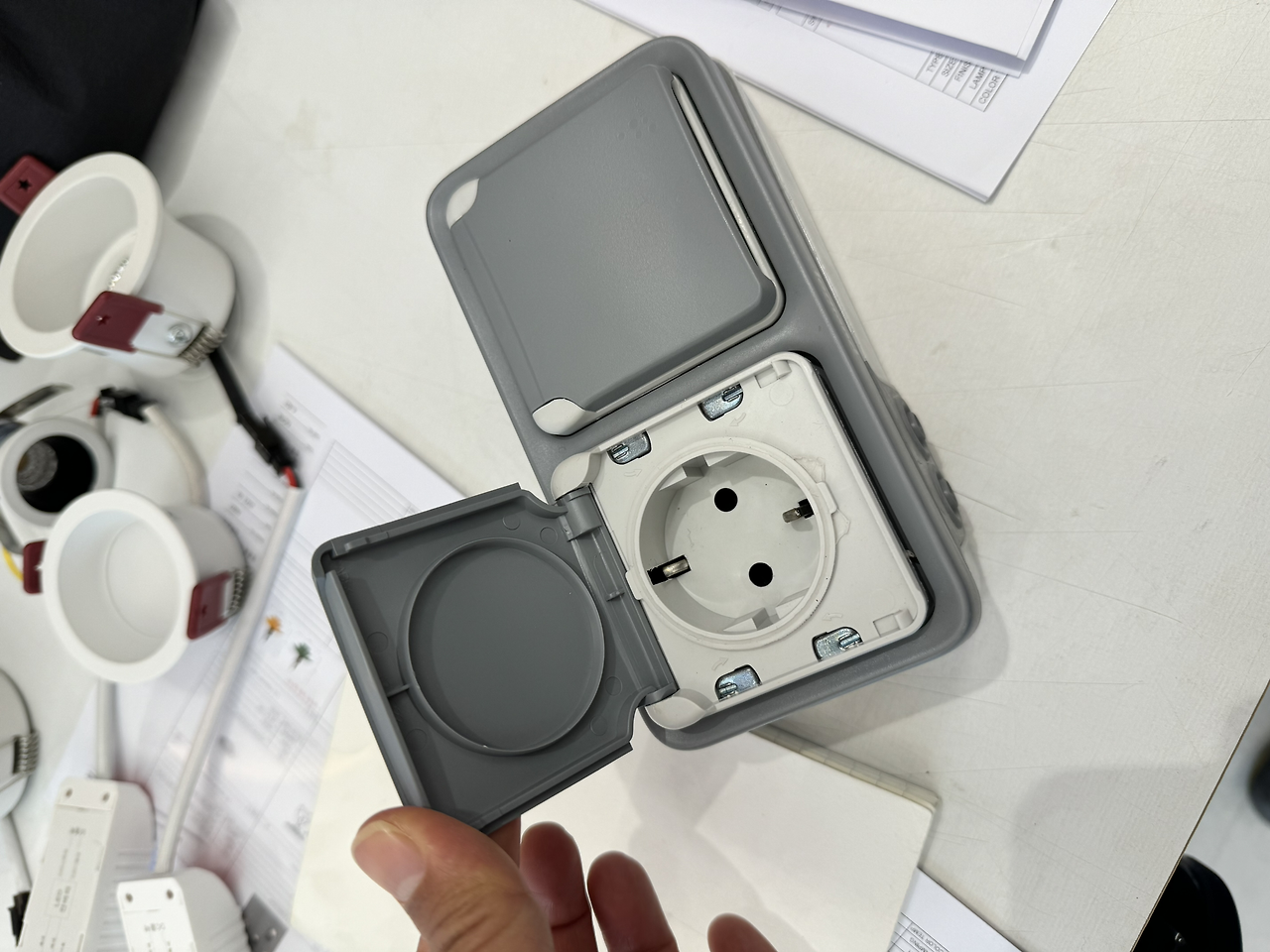 스위치는 프랑스 제품 르그랑(legrand) 아테오로 일찌감치 골라두었고, 매장에서는 가능한 조합과 특별한 용도로 활용되는 제품들을 직접 확인하면서 결정했다. 결론을 말하자면, 웬만한 조합은 모두 가능하고 Master나 Fan 스위치 등 자주 사용되는 특별한 기능이 있는 스위치는 프린팅 된 부품이 양산되므로 역시 바로 조합이 가능하다. 마치 레고블럭처럼 발주 제품에 따라 조립을 해서 납품하는 구조이다. BACHMANN(독일), legrand(프랑스), JUNG(독일) 등 고급 스위치와 콘센트를 보면서 선진국에서 이런 작은 물건을 만들고 있고 시장을 선점하고 있다는 사실이 아쉽기도 하고 부럽기도 하다. 매일 사용하는 물건의 디자인과 제품의 품질이 뛰어나기 때문이고, 여전히 고민을 지속하면서 새로운 제품을 선보이고 있어서다. 얼마 전 현장회의에서 외부에서 쓸 콘센트를 어떻게 처리할지 한참 논의한 적이 있었는데 그때 나왔던 얘기가 모두 반영된 제품이 이미 르그랑에서 나오고 있었던 것이다(고민할 필요없이 구매결정).