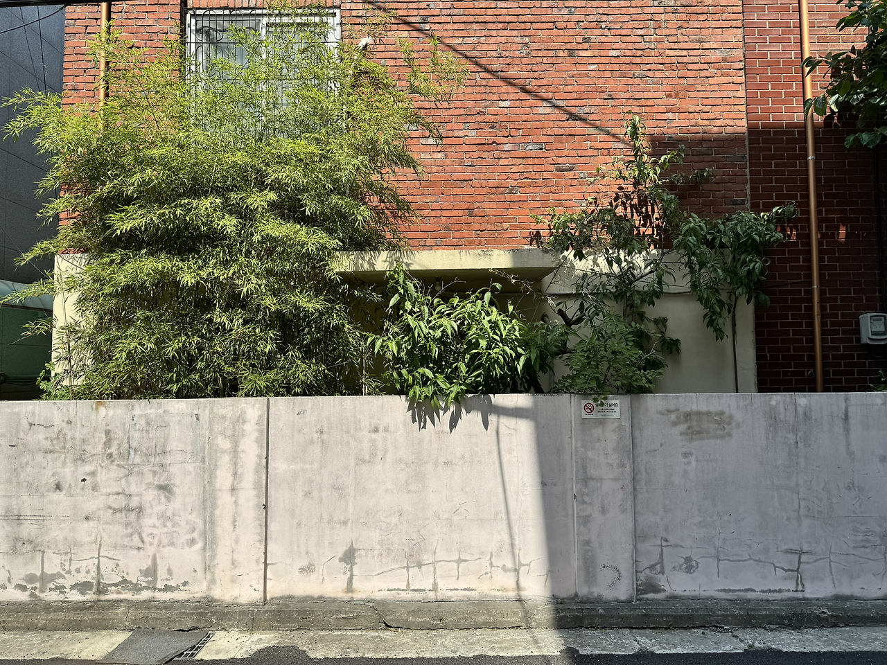 저렇게 빛이 드는 자리에 대나무가 잘 자란 게 신기해서 사진을 찍으며 낮은 담장 너머를 까치발을 들어 살펴보았다. 담장 옆이라 뿌리 부분은 그늘져 있고 지면에서 그리 높지 않은 목재 플랜트박스에 심겨 있다. 건물 뒤편 동쪽이나 4층 욕실창 아래에 나도 대나무를 심어볼까?