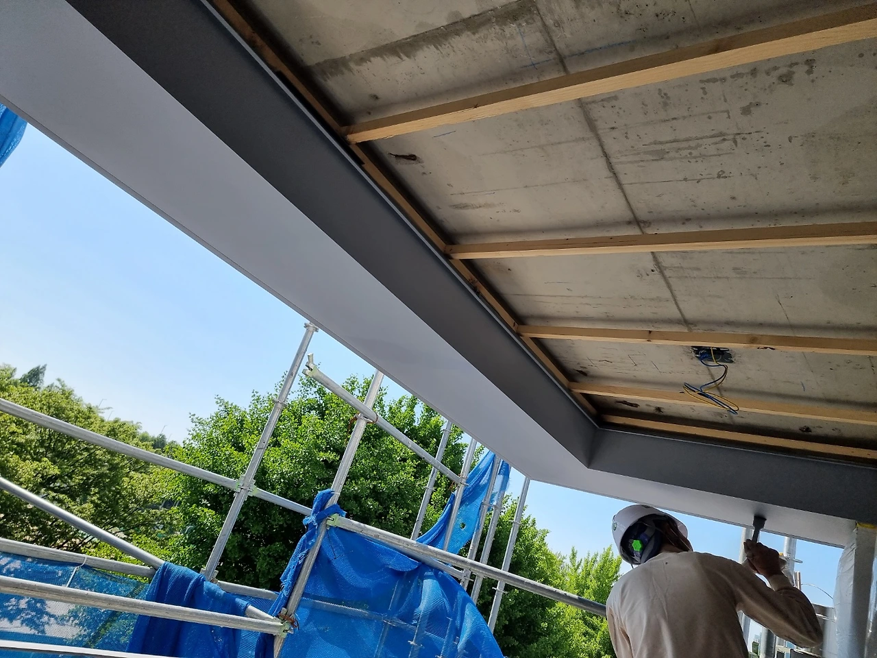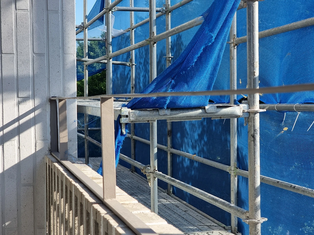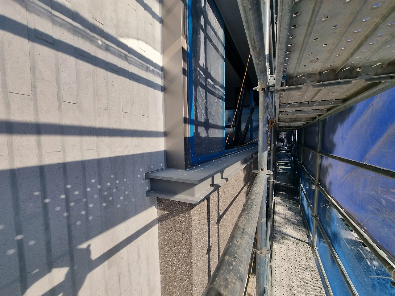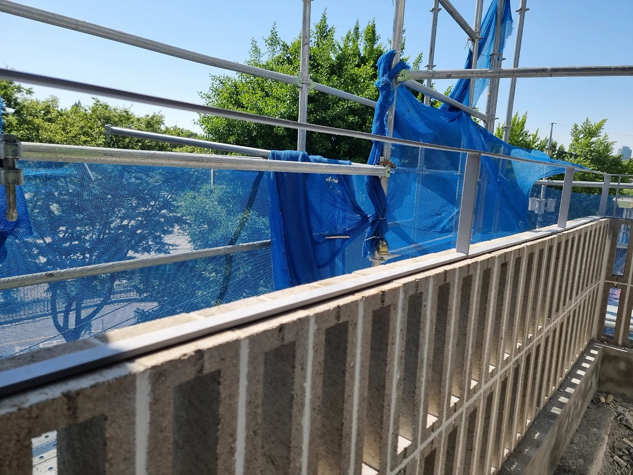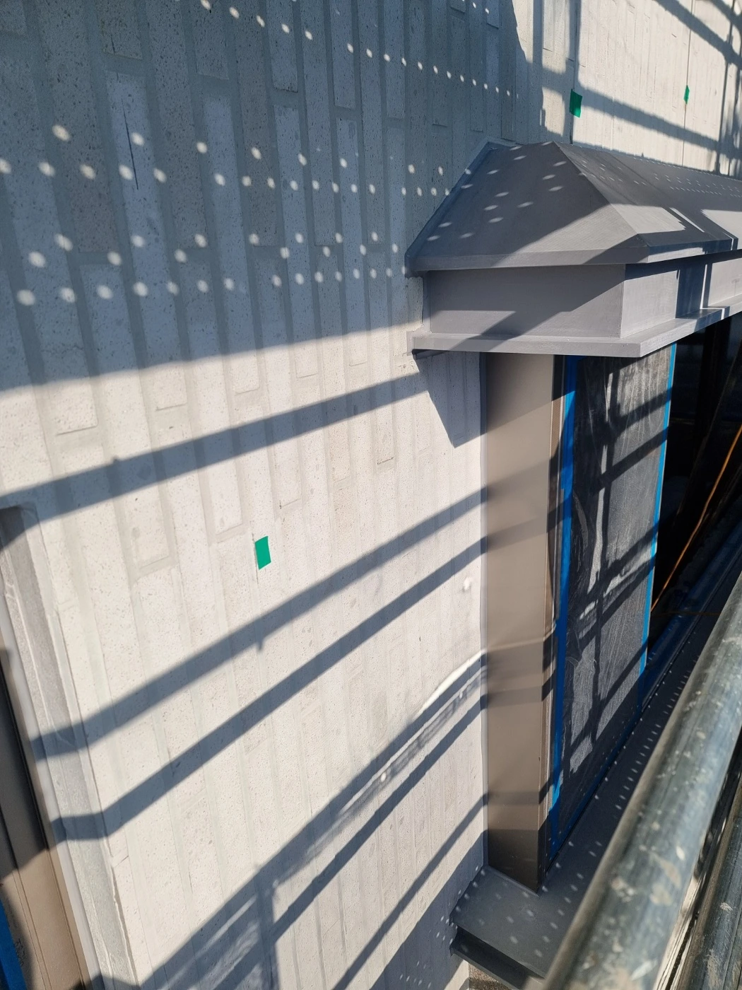 외벽 벽돌타일이 다 붙고 나니 벽에 붙어있거나 벽 위를 지나야 하는 작업들이 이어진다. 도시가스 배관이 설치되고, 비가 올 때 물 끊기를 해서 마감재를 보호하기 위한 후레싱이 창호 주변에 설치되었다. 내일 비가 예정되어 있어 잘 동작하는지 확인할 수 있는 기회가 되겠다. 녹방지를 위한 금속 방청 도장이 계속해서 진행되고 이제 지정컬러로 도장을 앞두고 있다.