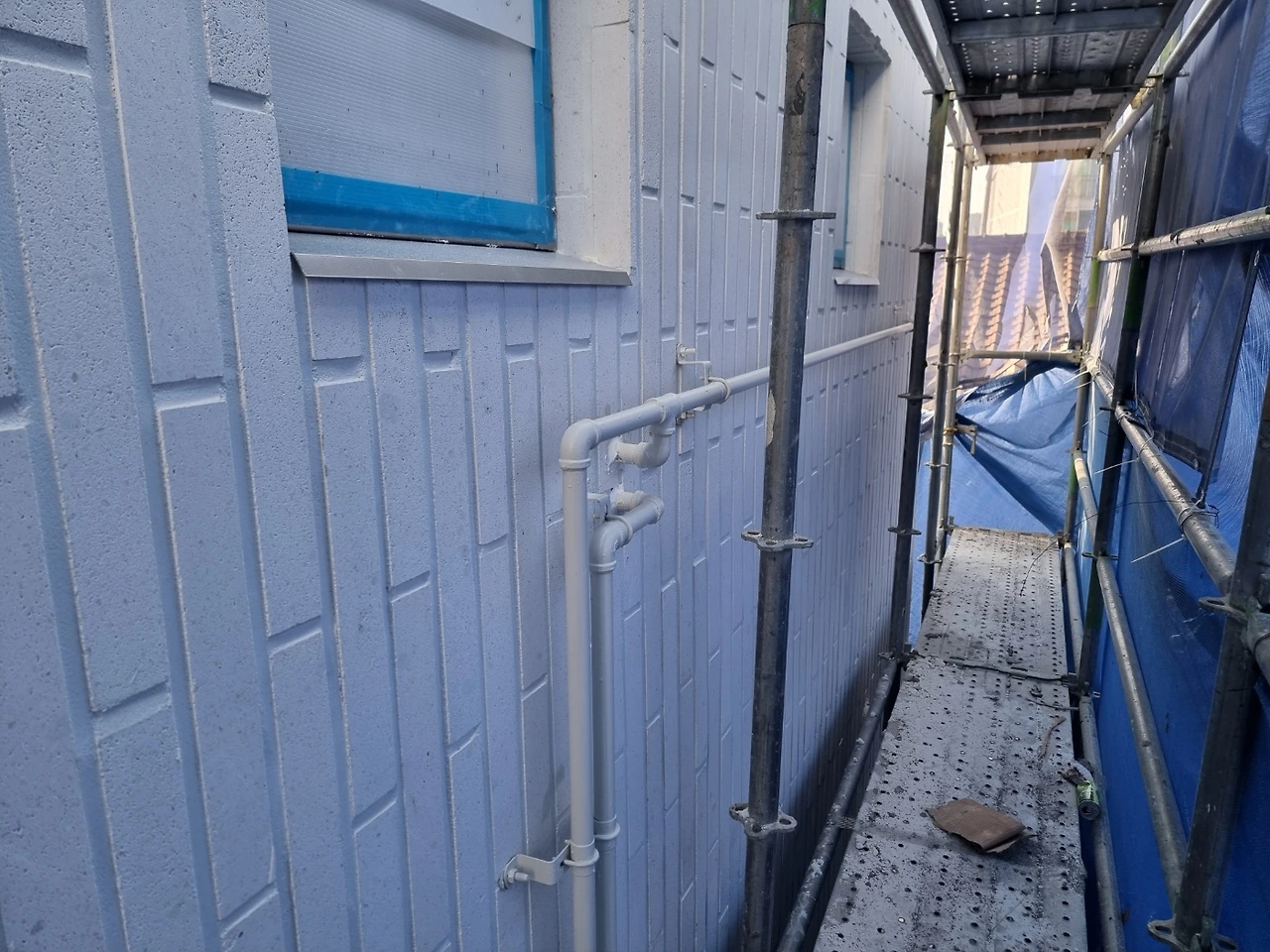 명일 : 외부 선홈통, 선홈통 도장, 외부창호 실리콘 시공
