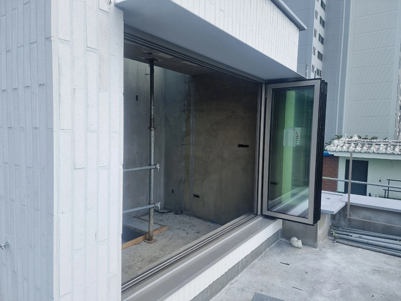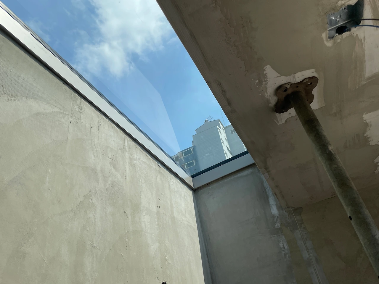 작업이 어렵다는 코너창과 천창도 꼼꼼히 잘 시공되었다. 다만, 한쪽 벽면은 폴딩도어이고 천창이 있는 옥탑에 열이 쌓여 아래로 내려오는 게 좀 우려가 된다. 작더라도 창이 하나 있어야 했나?... 지금 사는 집 옥탑으로 계단실을 유리새시로 한 탓에 여름엔 뜨거운 열기, 겨울엔 차가운 한기로 공간을 제대로 활용하지 못했던 터라 금방 그 경험이 떠올랐다. 공기가 어떻게 흐르며 통풍이 될지 고민을 꽤 했었는데 옥탑은 하지 않았던 모양이다. 옥상에 차양을 설치하거나 천창 아래 패브릭을 두는 등 태양열과 빛은 피하는 방법이 필요할 수 있겠다.