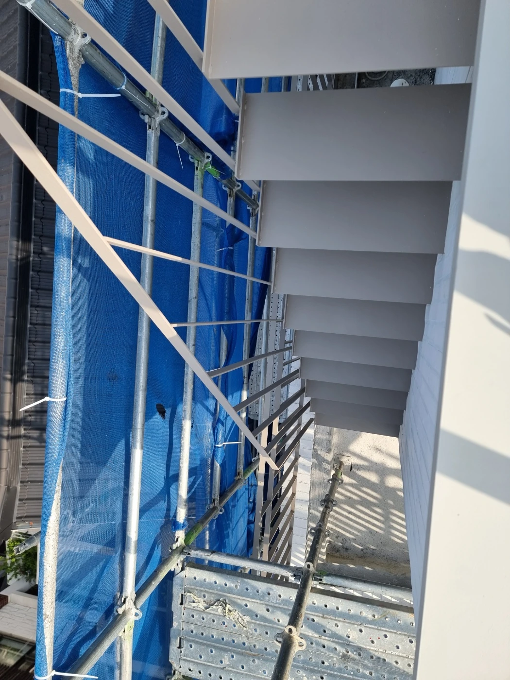 어제 현장으로 금속 선홈통이 도작하고 오늘은 설치가 예정되어 있는데, 무거운 금속 배관을 벽에 걸려고 하니 자재를 끌어올리기도 어렵고 작업자들도 익숙한 방법이 아니라 부담이 있는 모양인데 다행히 하나씩 설치가 되고 있다. 지름 150mm 정도의 시원한 관이 벽체와 맞게 도장까지 되고 나면 기능적으로나 심미적으로나 좋은 결과가 만들어질 것 같다.
