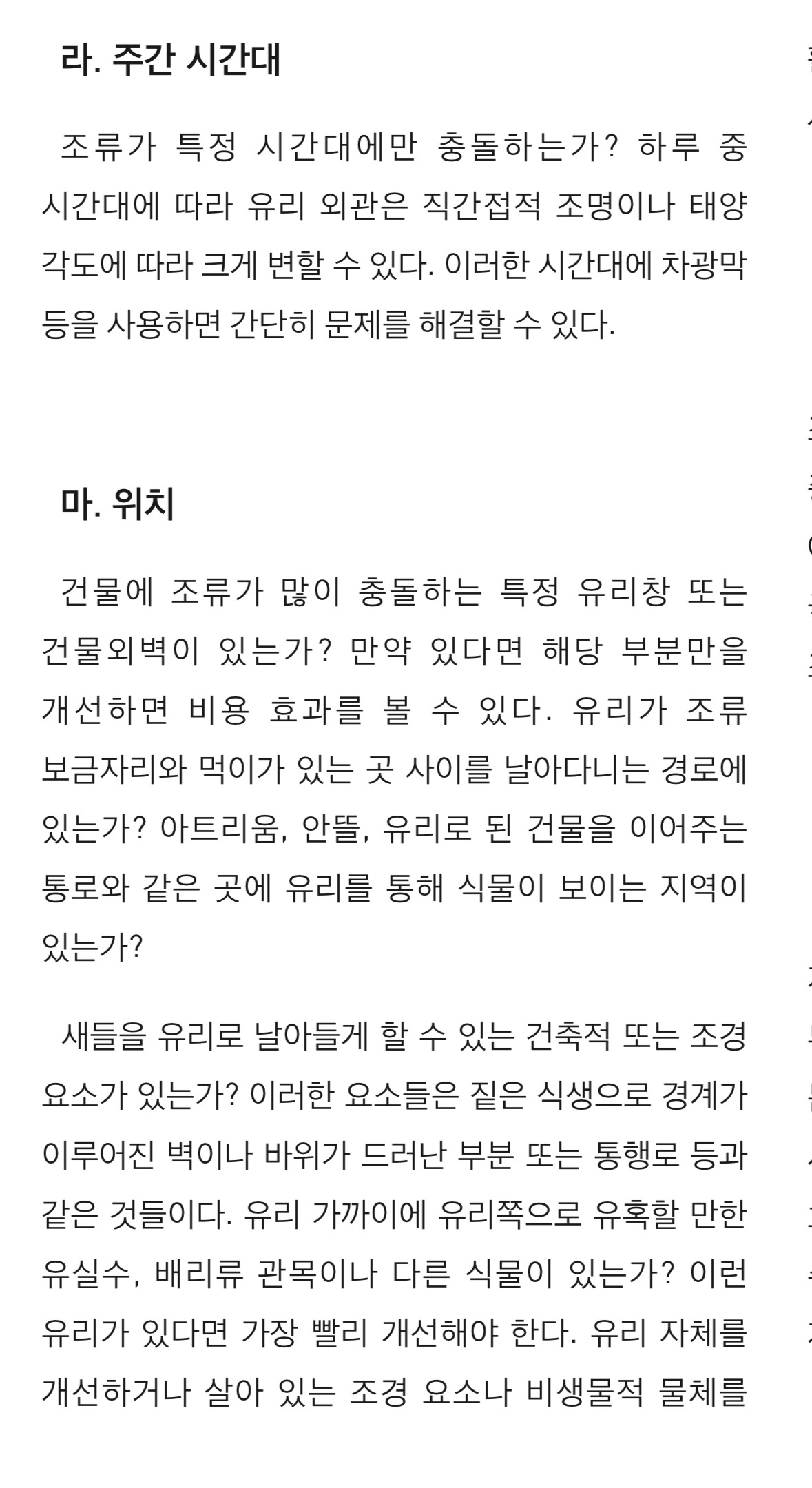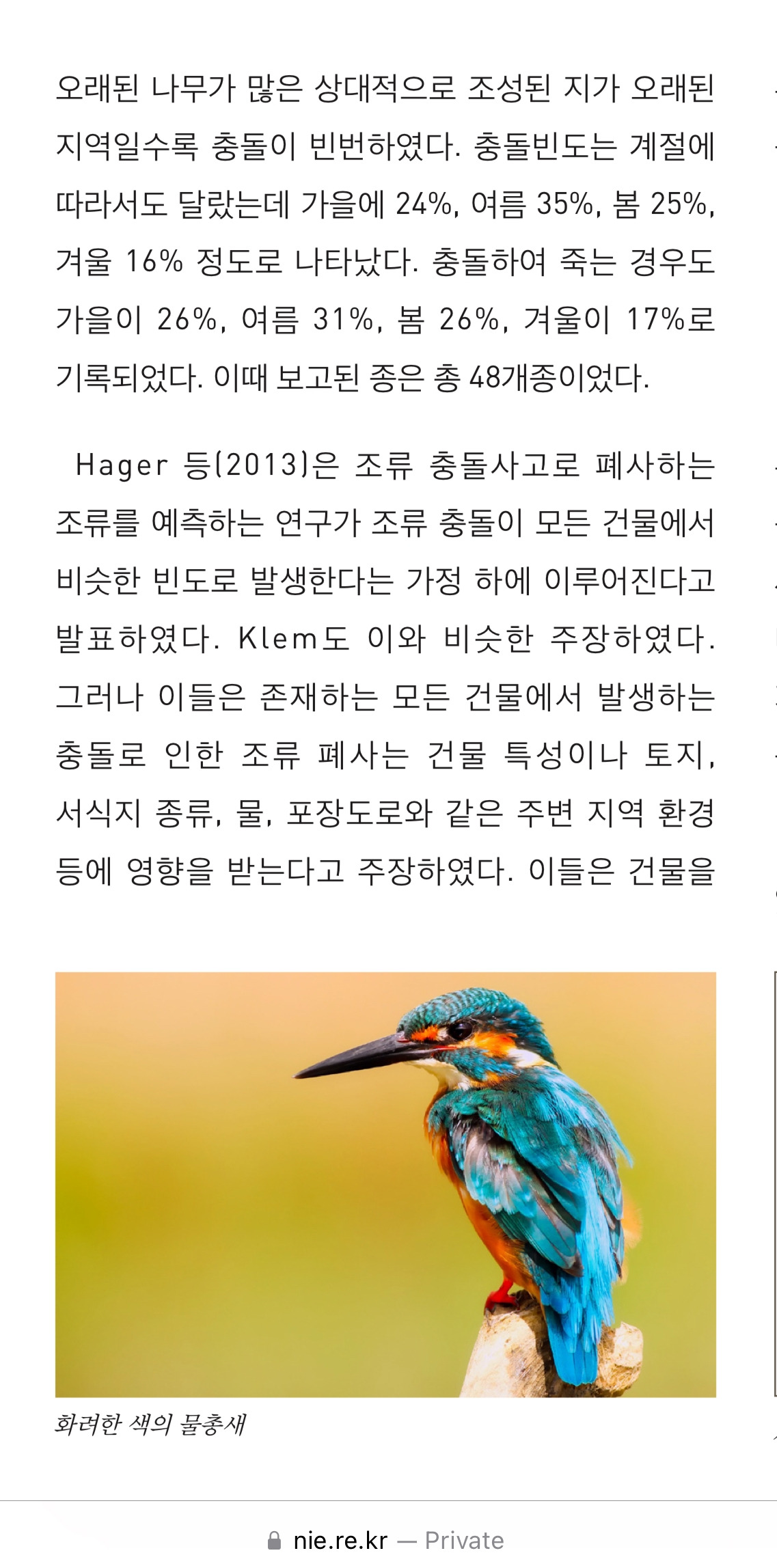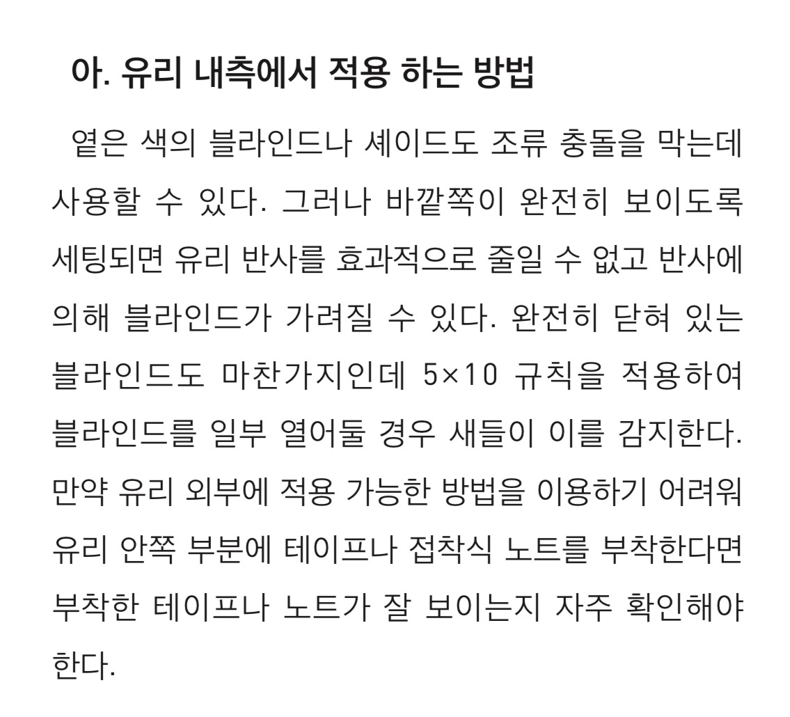 이렇게 고대하던 창호와 함께 등장한 예상치 못한 이슈 때문에 이런저런 자료와 함께 예방책을 찾아보았다. 한겨레신문의 시리즈 기사로 문제인식을 할 수 있었고, 국립생태원의 야생조류와 유리창 충돌 자료가 취약한 환경과 예방법이 함께 나와있어 해결책까지 고민하는데 큰 도움이 되었다.
