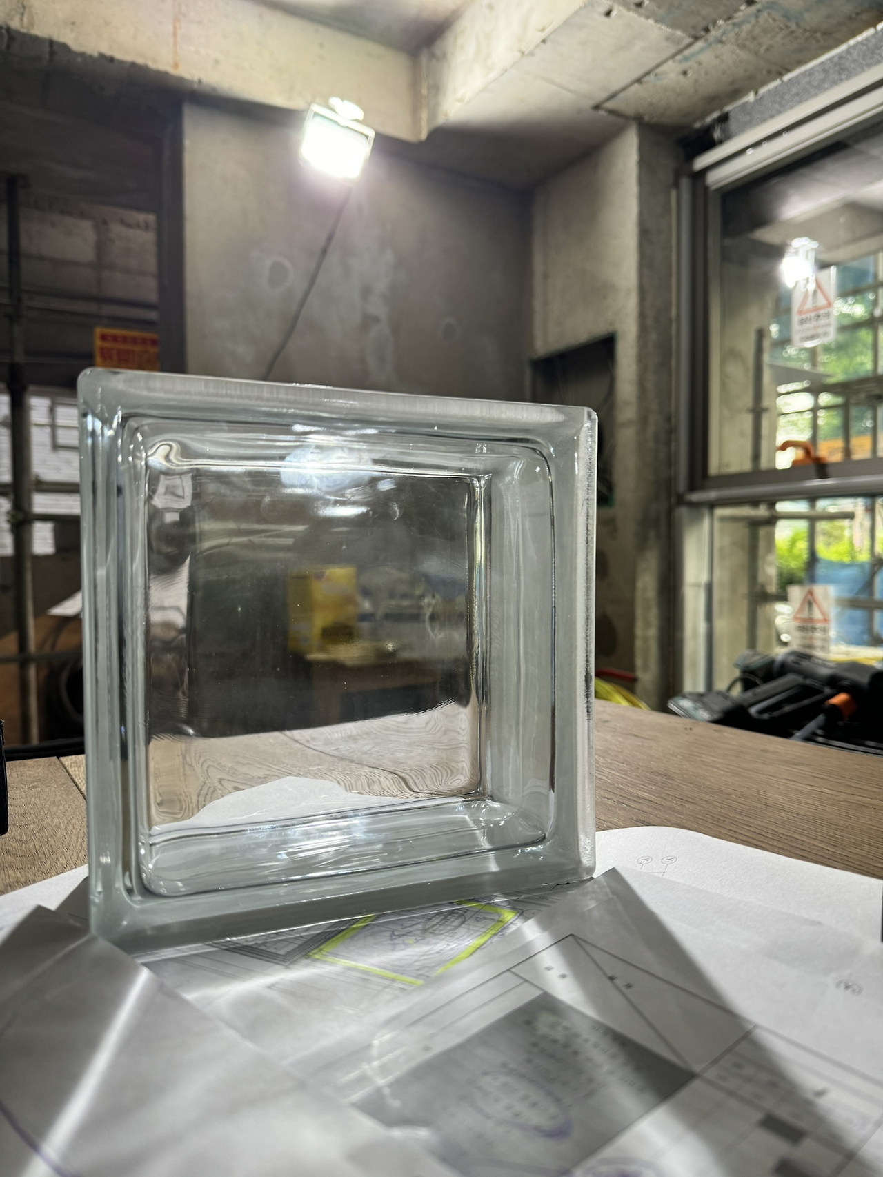 새롭게 등장한 계단실 유리블럭 공사를 어떻게 할지도 포함되었다. 적용면적이 큰 편이라 안전한 설치를 위해 어떻게 벽돌을 쌓을지, 마감선이 어떻게 잡을지 생각보다 복잡해서 회의 중에도 계속해서 업체와 이소장님 간의 유선협의가 진행되고 전화를 끊고는 현장에서도 한참 논의가 이어졌다. (머리를 맞대면 나름의 방법이 찾아진다!)