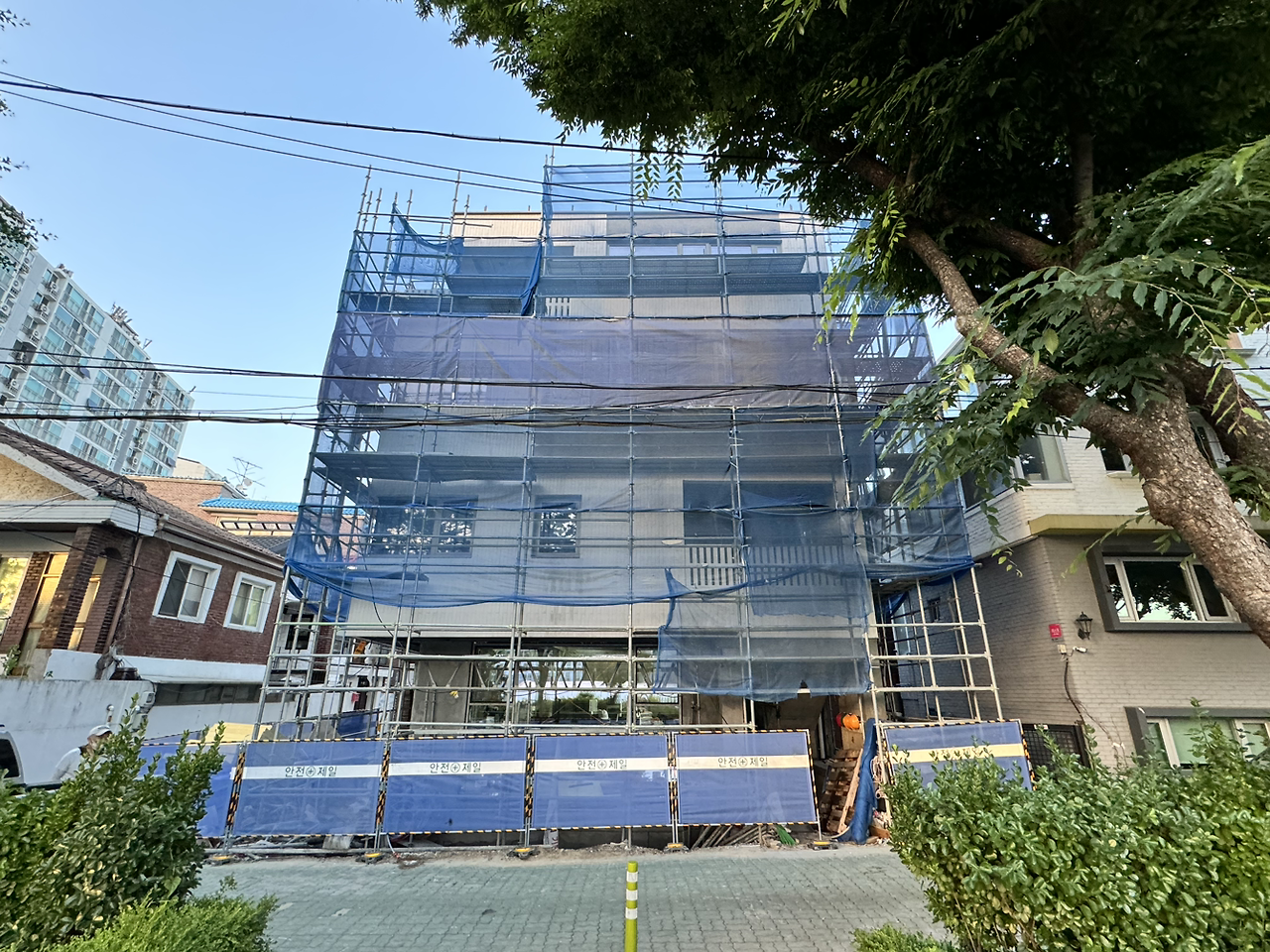 외장재 정리를 마무리하고 목, 금에 걸쳐 가림막과 시스템 비계가 철거될 예정이다. 설렘으로 두근거리기도 하고, 별일 없이 끝나야지 싶어서 두근거리기도 한다. 날짜로는 140여 일 만이지만, 설계를 시작한 지 484일, 공사 시작한 지 207일, 골조가 올라온 지 113일 만이다(각각 23.1.26, 24.10.30, 24.2.1.).
