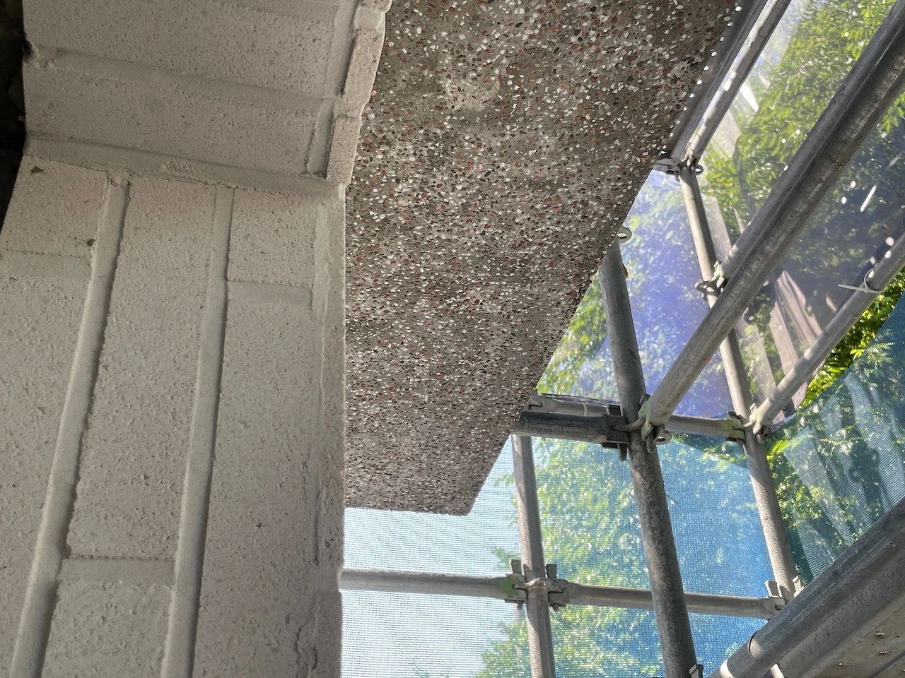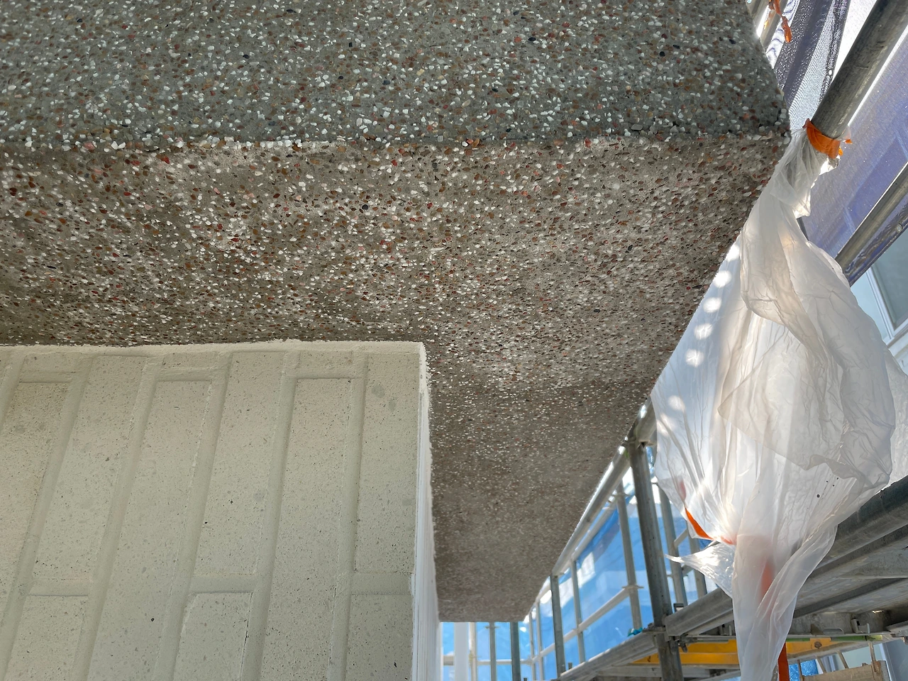 4. 콩자갈 천장면 현장확인 및 시멘트물 닦아내기