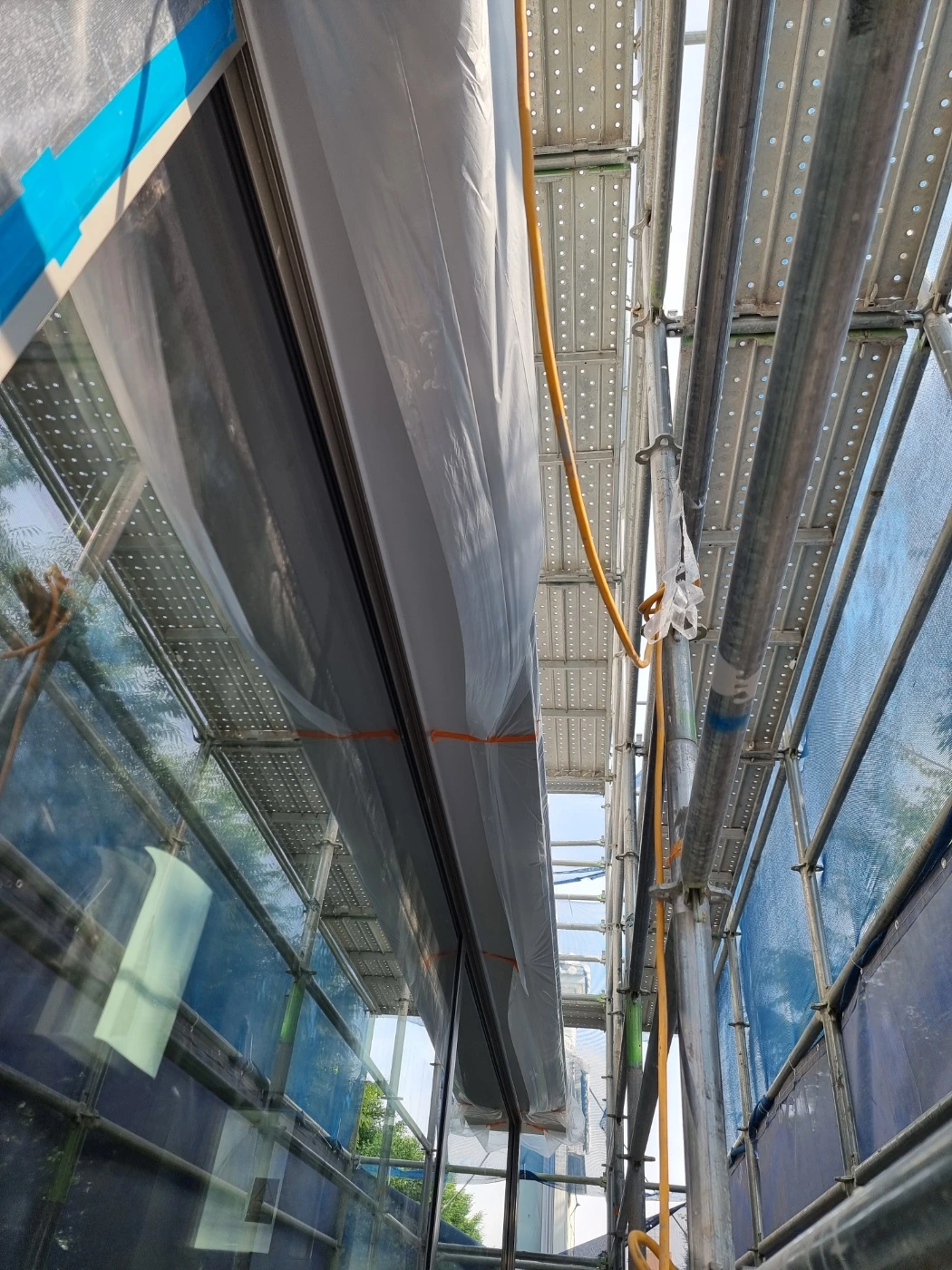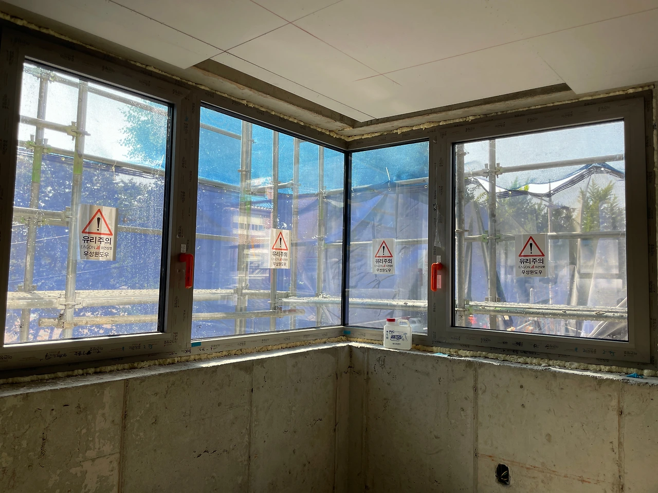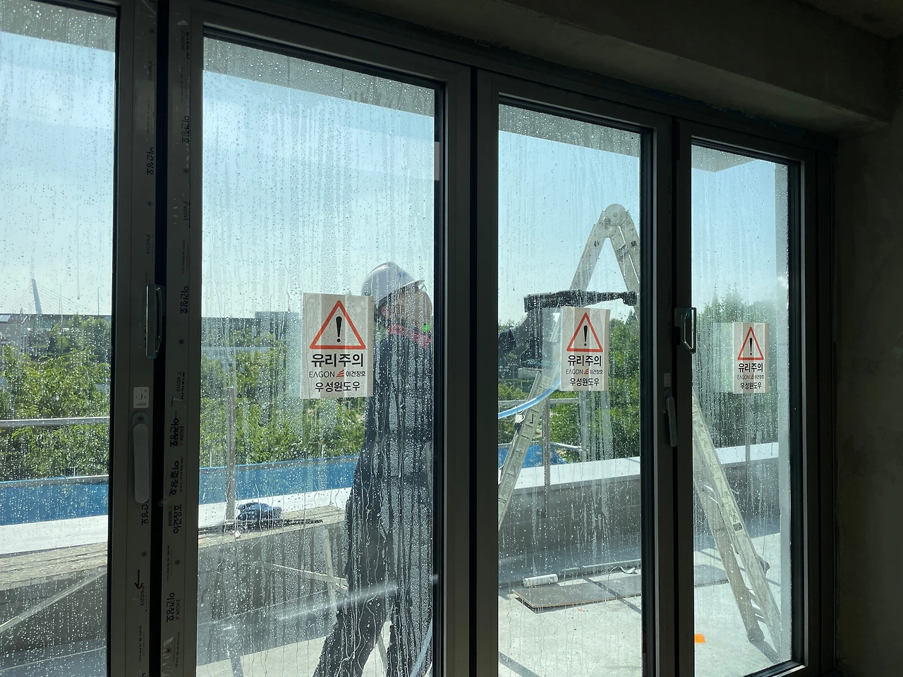 도심의 새들은 나름 지형지물을 익히기 때문에 오히려 조심하는 반면, 전원주택 등 오래된 숲 속에 조성된 건물에서 피해가 빈번하다고 한다. 다행인 것은 5x10 규칙을 지킨 스티커 시공이 비교적 단순한데다 효과도 충분하다는 점이다. 마침 금주가 가설재 철거 시기이다 보니 3, 4층 시공 시 서둘러야하는 상황이라 빠른 의사결정이 필요해서 조소장님이 알아본 전문업체가 신속히 현장방문을 하였다.