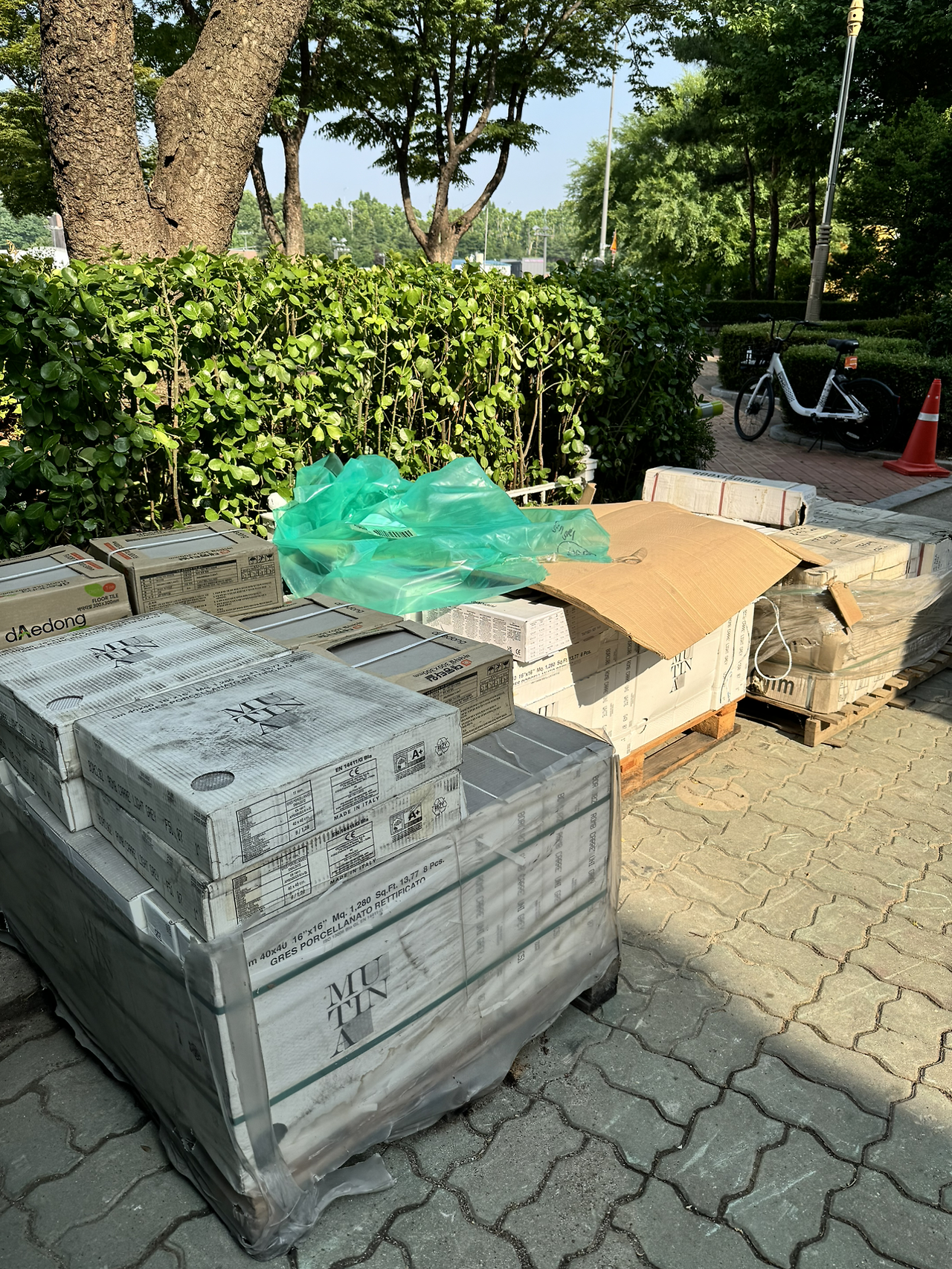 먼지가 많은 걸 보여주는 것처럼 현장에서 보내온 사진마저 뿌옇다. 매일매일, 뚝딱뚝딱 내부 목공작업이 층별로 진행된다. 일을 잘하시는 베테랑 작업자가 현장에 오시면 걱정없이 일이 차곡차곡 돌아가고 결과가 쌓인다. IT산업은 제조업과 달리 시스템으로 품질을 관리하는 구조가 되기 어려워 결국 작업자의 역량이 결과의 수준을 결정한다고 생각했는데, 이 곳도 마찬가지이다. 누가 하느냐에 따라 시간과 결과가 달라진다. 게다가 미흡한 결과는 재작업으로 이어지게 되는데, 재작업의 결과가 더 좋다는 보장도 없으니 어디까지 요구해야할지 당연한 것도 고민거리로 발전할 수 있다. 그럴 때는 잘하는 사람이 잘하도록 도와주는 역할만 하면 되니 일을 맡긴 사람도 편해진다. 지금 목공작업을 하시는 분들이 그렇다. 오랜 경험과 숙련된 기술로 자재 계산부터 관리, 작업까지 척척 알아서 하신다. 이럴 때는 서로의 시간을 허투루 쓰지 않도록 무엇을 할지만 잘 알려주면 된다...... 그리하여 모두가 평화로운 그림이 되는 건데 아쉽게도 늘 좋은 그림이 펼쳐지는 것은 아니다.