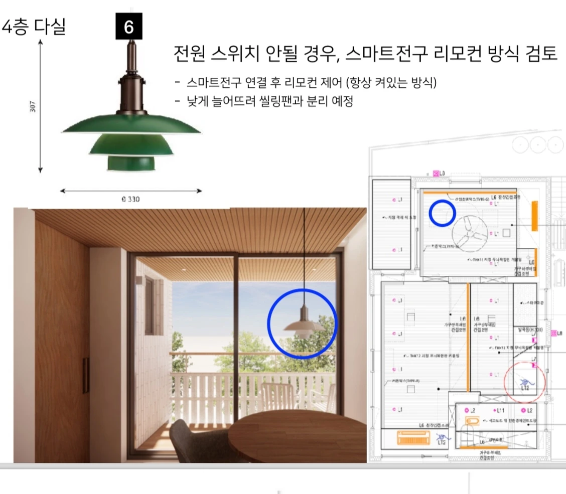 조명을 넣을 때가 되어 살펴보니 매립등을 많이 쓰면서 깔끔한 것은 좋은데, 독립적인 '조명'을 다는 공간이 적어지면서 가지고 있는 조명 중 일부는 쓰임새가 없어진다는 걸 알았다. 황급히 전기도면을 펼쳐놓고 매립등이 아닌 조명을 쓰고 싶은 위치와 조명을 정리해서 조소장님에게 공유하였다. 이미 스위치 분배가 다 끝난 상태라 전기를 연결하되 스위치는 센서를 활용하거나 IoT 전구를 활용하는 방법을 찾았다.