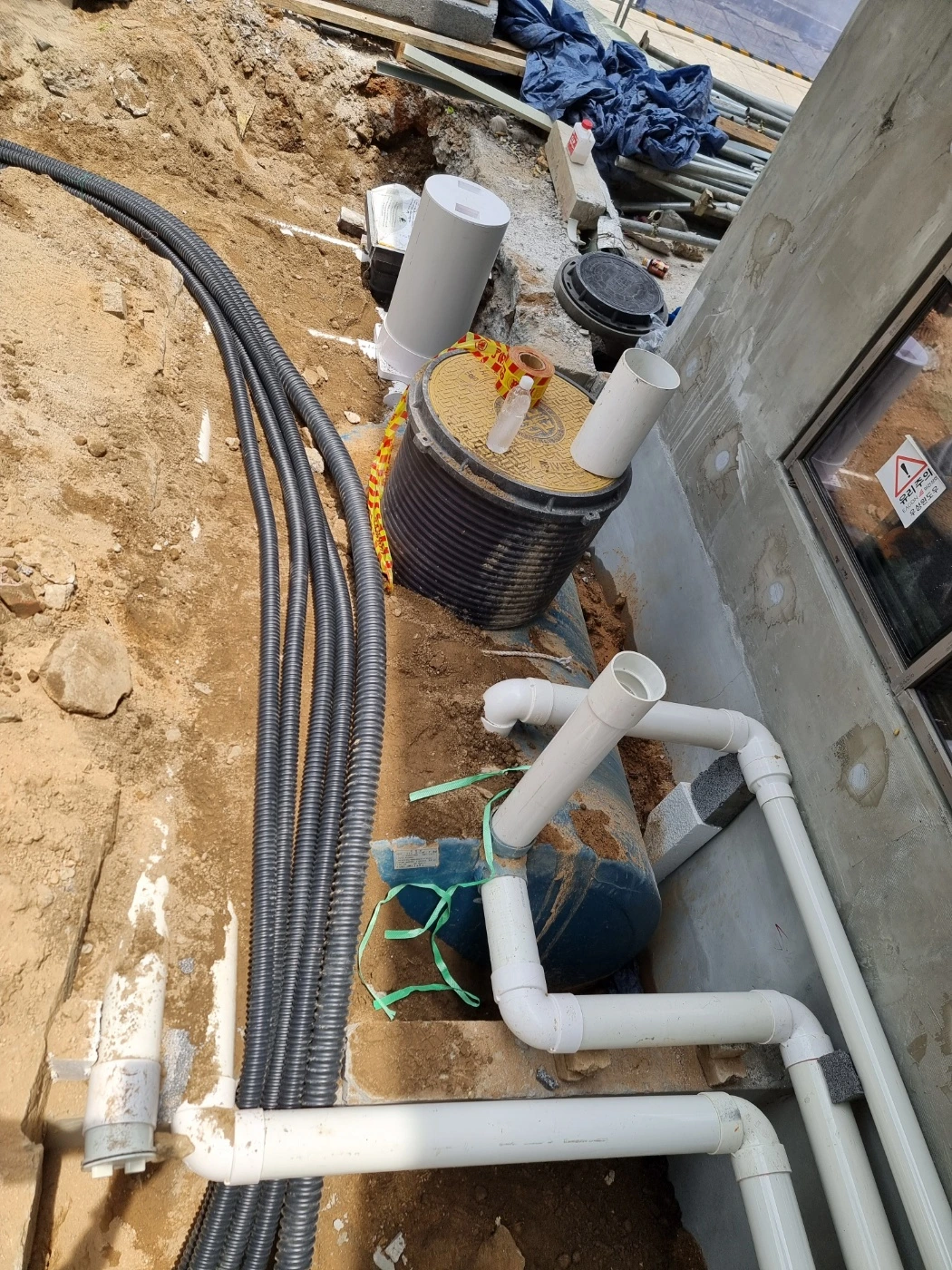 인입 공사비를 지급 후 정화조와 전기통신 공사가 본격적으로 시작되었다. 인입은 미리 관할기관에 신청한 후 진행되는 거라 일정을 미리 조율해야한다. 전기통신 인입과 하수관 작업이 함께 진행되었는데 일정을 마치고 돌아오니 마무리 작업 중이었다. 흙먼지 탓인지, 더운 날씨 탓인지 뜨거운 오후 햇살 아래 모두가 꽤 지쳐 보인다. 종일 현장은 시끌시끌 했던 모양이다. 전기통신과 하수관 시공업체들은 모두 땅을 파내고 작업을 해야하는데 각자가 내가 맡은 일만 하고 가겠다는 입장을 취하면서 작업 현장에서 갈등이 있었던 모양이다.