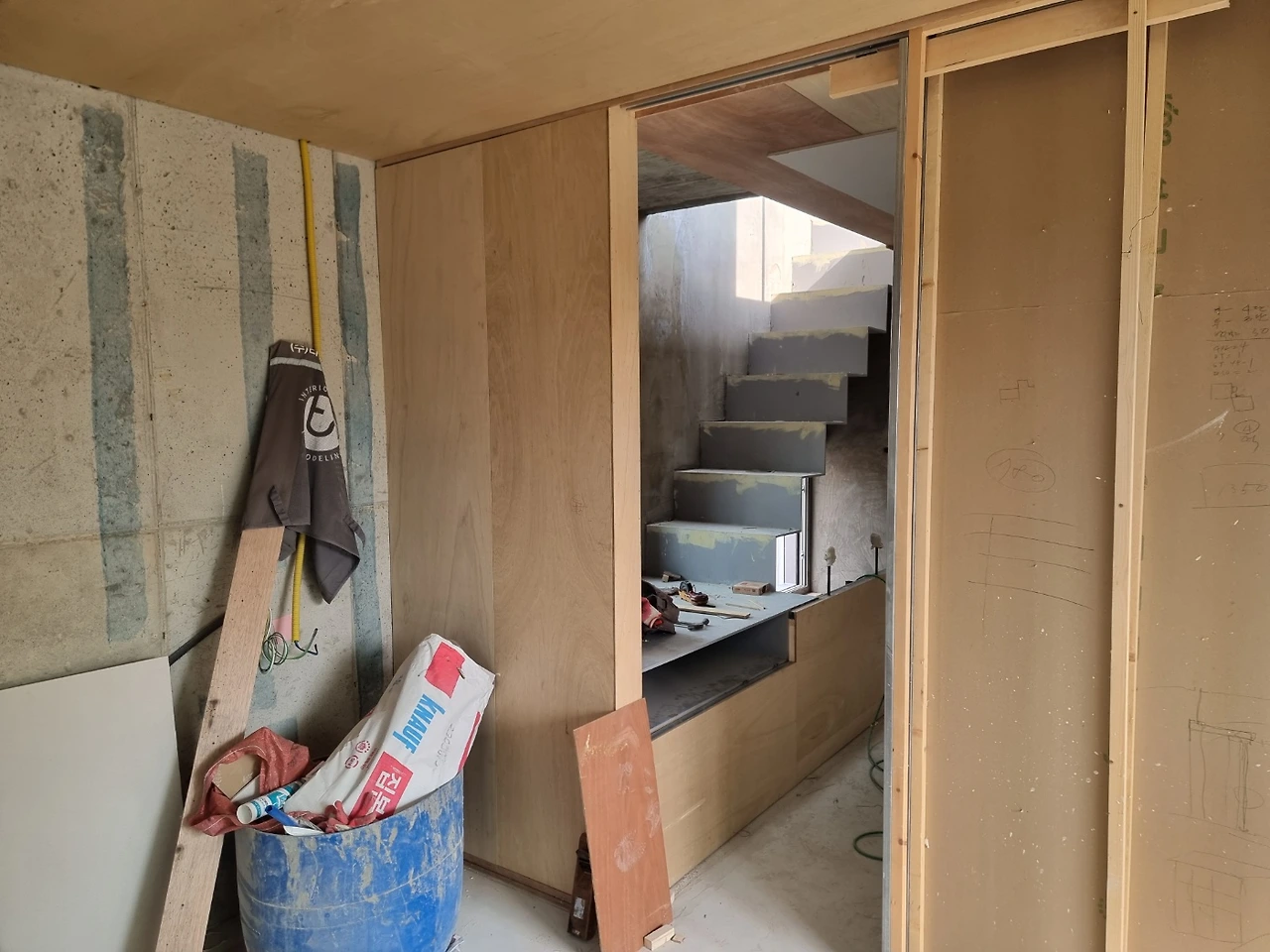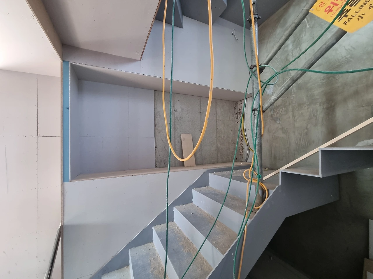 [화] 계단천장 힙판시공, 루버 시공, 수도인입 예정