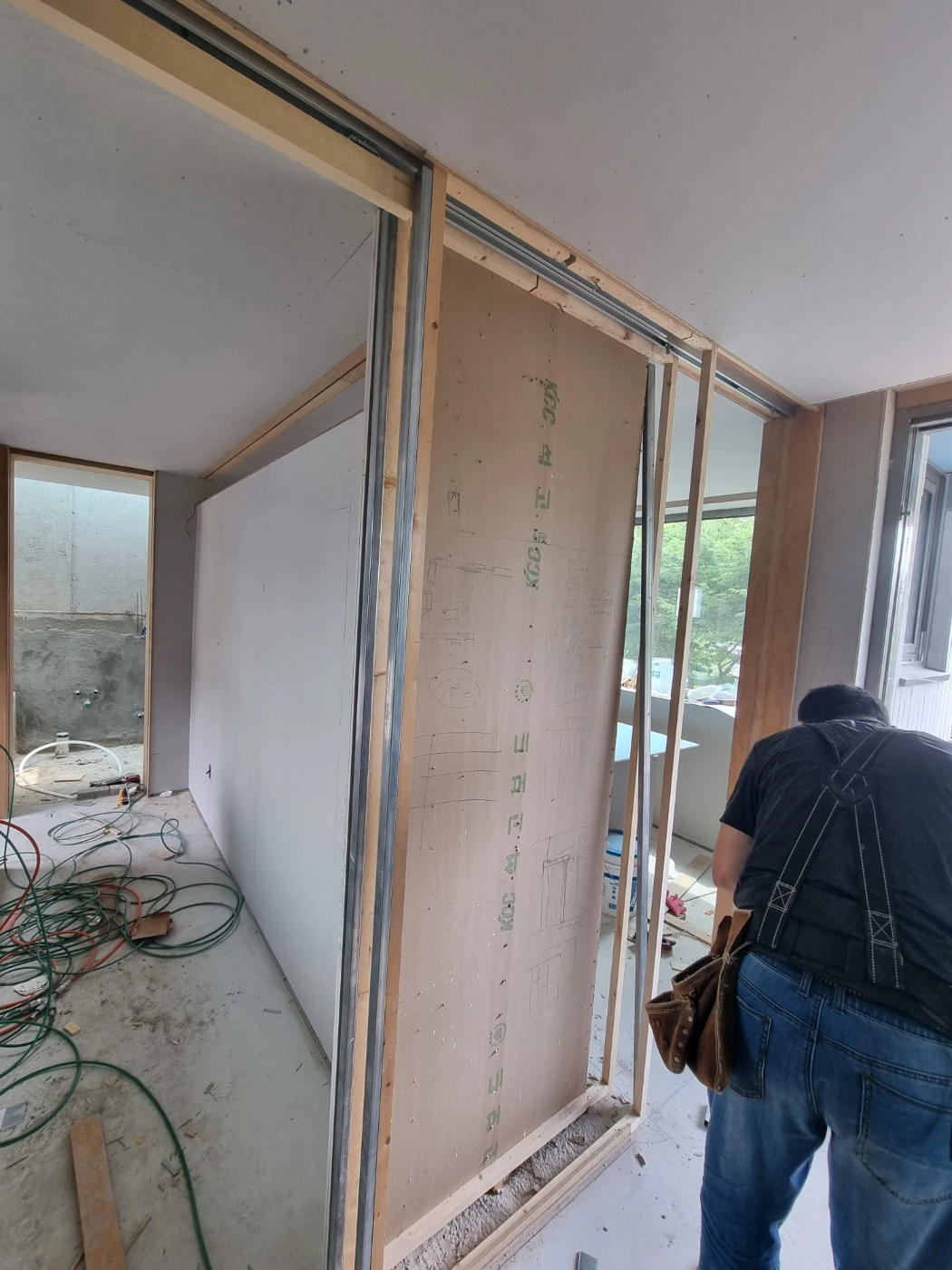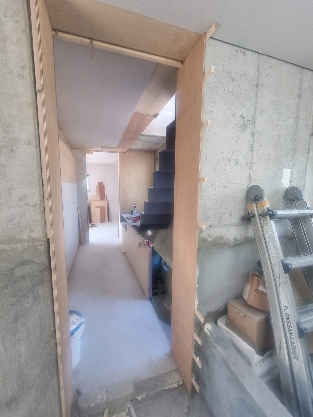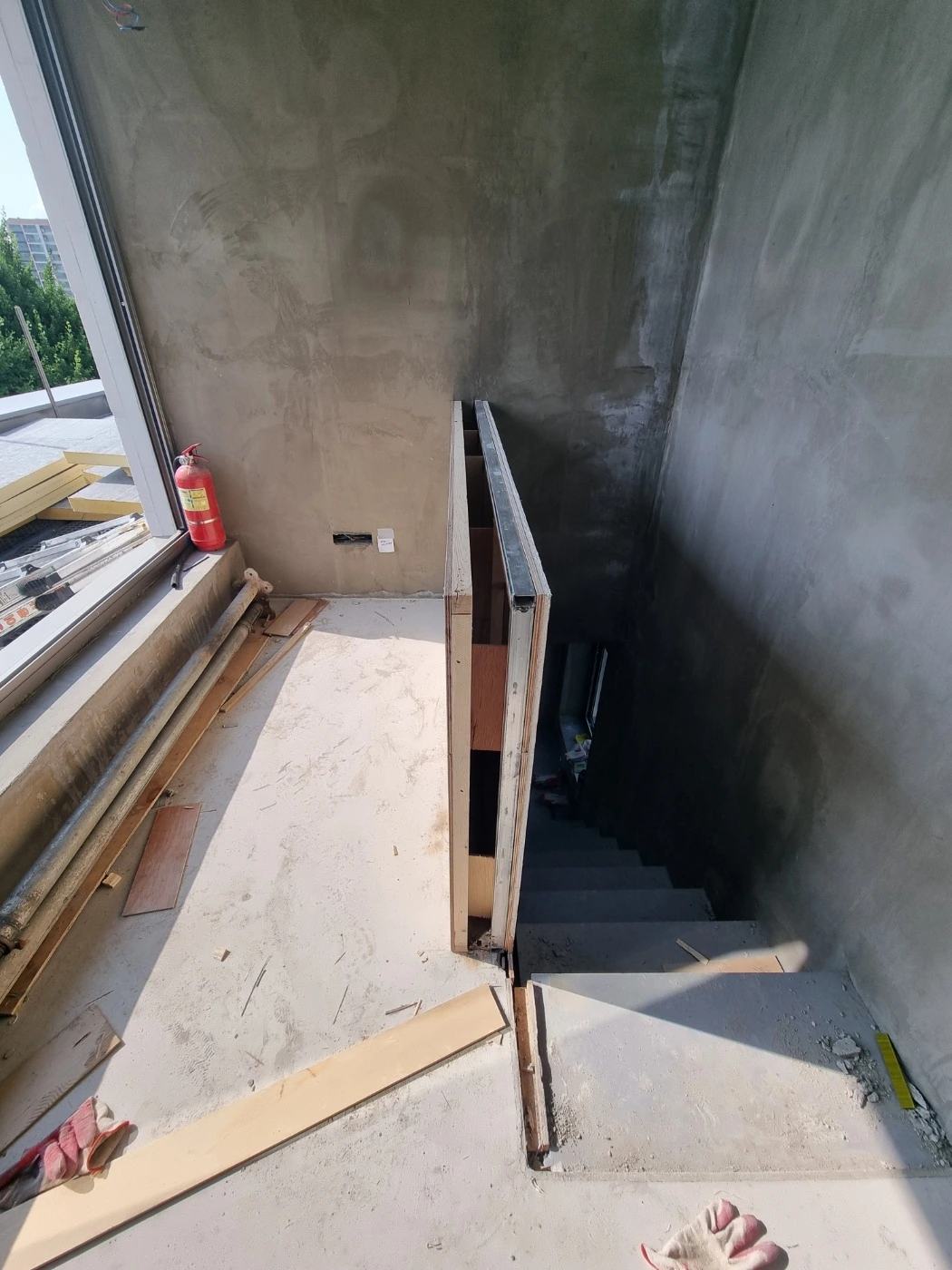 1. 목공 - 4층 계단, 슬라이딩 도어다리 설치, 도어 수정