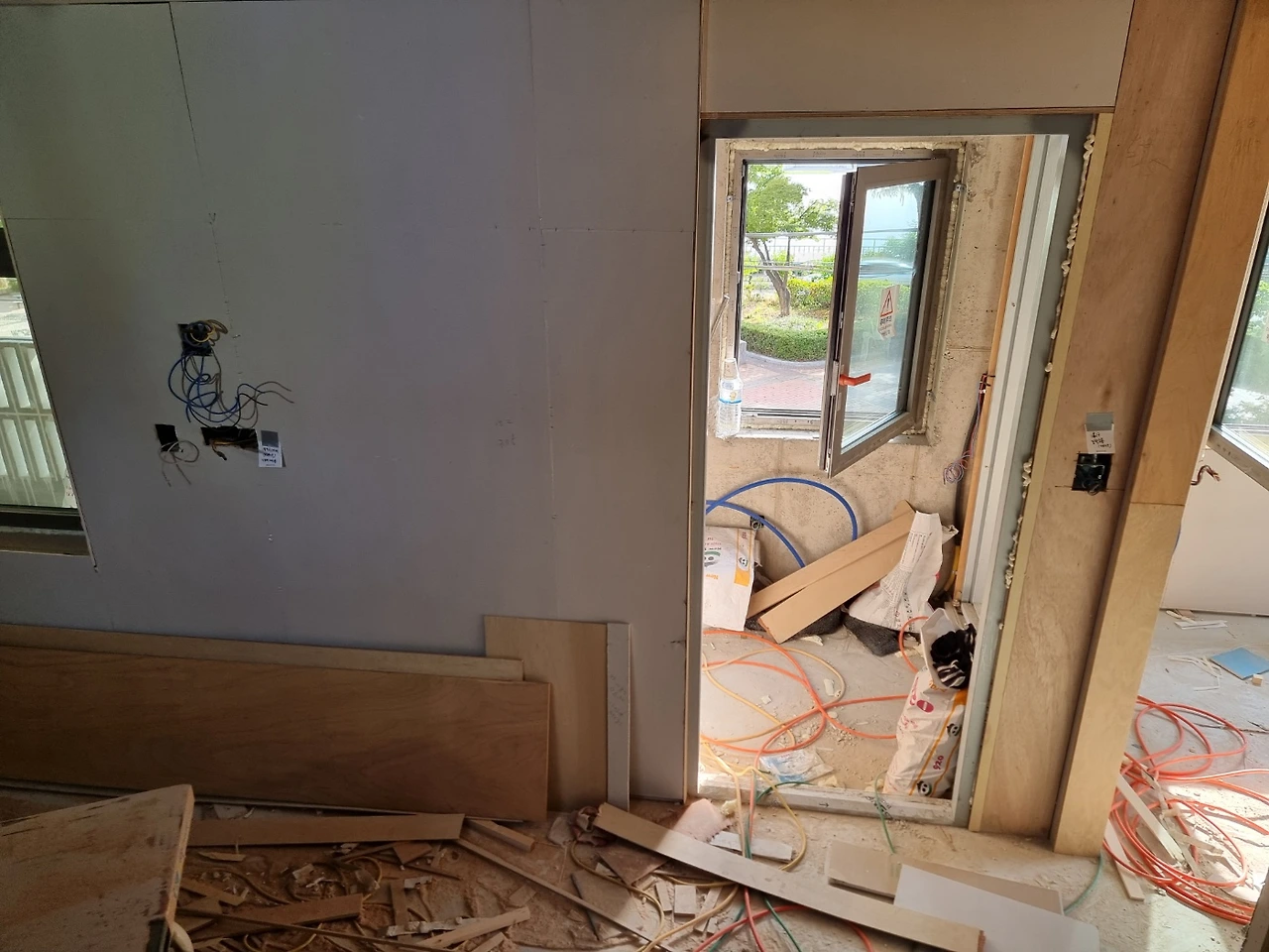 비가 오면서 더위가 그나마 수그러 들었다. 붙박이장에 슬라이딩 도어를 붙이려니 출입구의 미닫이 문을 일부 가릴 수도 있을 거 같아 고심 끝에 문 폭을 줄이기로 했다. 가구도 들어와야하고 출입구가 여유있는게 당연히 좋겠지만 붙박이장과 치수가 맞지 않아 튀어나오게 되면 문도 못쓰고 보기에도 이상할 것 같아서이다. 일반적으로 방문의 크기는 900mm이고, 욕실문은 공간 크기에 비례해서 그보다 작게 잡는다고 한다. 가구만 들어온다면 사용하는데 별 문제는 없을 듯 하여 최초 870mm 가량이던 문폭은 700mm 정도로 좁히기로 했다. 작업단계라 길게 고민할 수는 없어서 빨리 결정하고 마음을 먹었다. 짐을 조금만 넣도록 하자!
