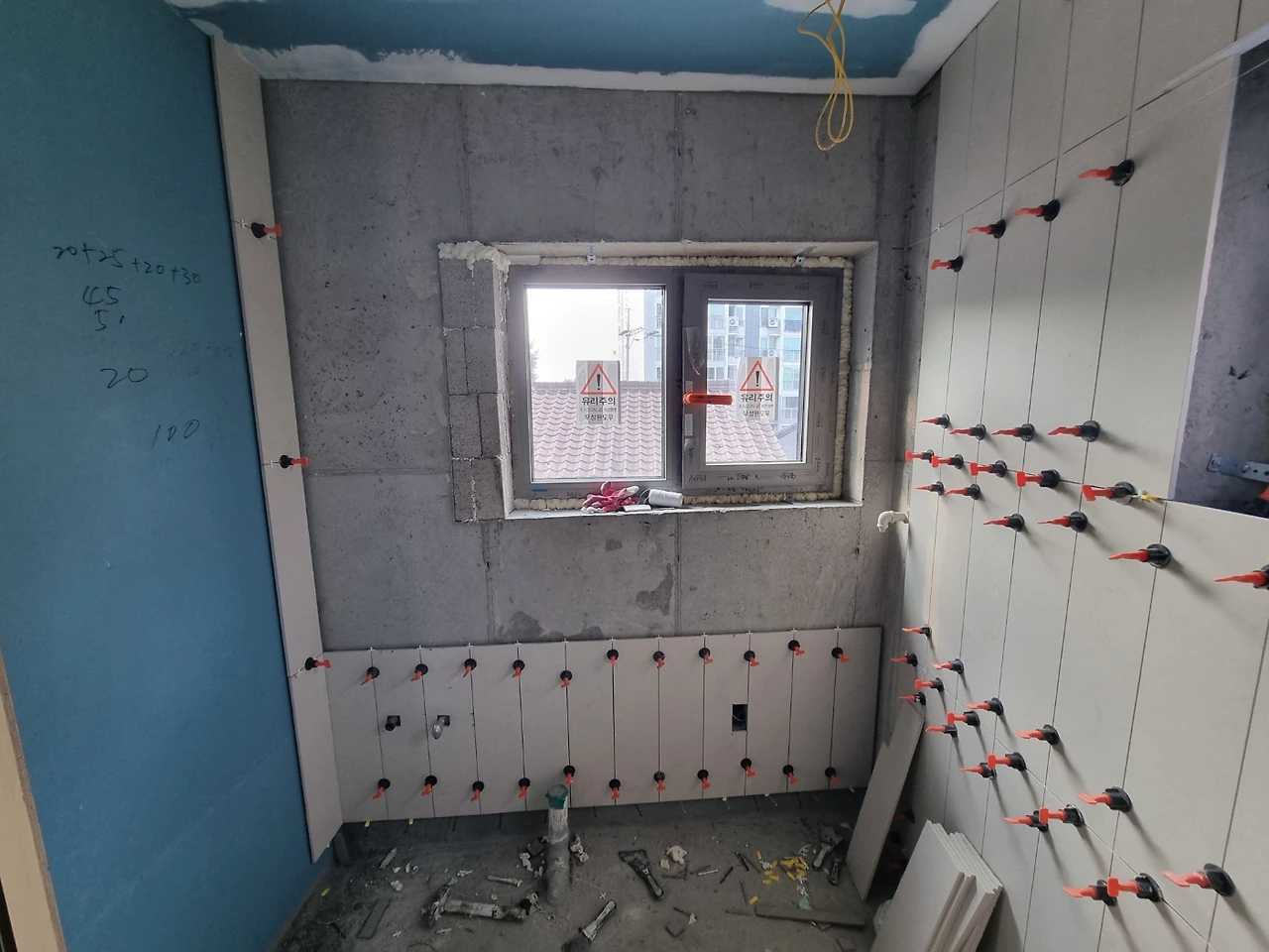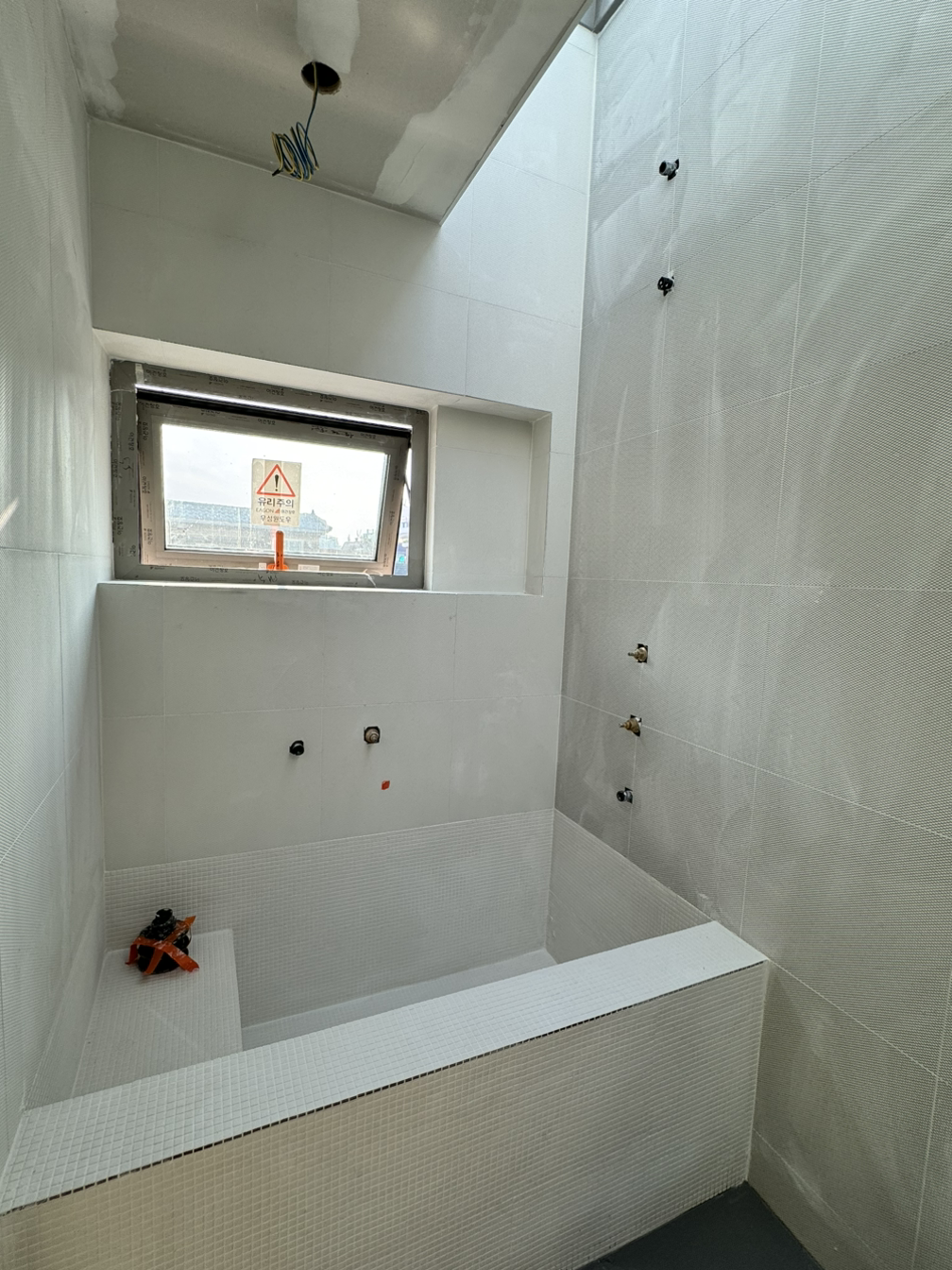 타일 메지 작업이 진행되고 욕실 몇 개는 타일 작업이 어느 정도 완료되었다. 현관, 주방, 욕실, 다용도실, 상업공간의 화장실까지 면적이 크진 않지만 타일 작업량이 적지 않았던 모양이다. 계획보다 작업일정이 딜레이 되면서 처음에 작업하던 분이 빠지고 새로운 타일공을 찾기 시작했는데 잘 안 되는 모양이다. 아직 남은 작업들도 있고 2주 후에 잡힌 원목마루 시공일정에 까지 영향을 미칠 수 있다는 우려가 있다.