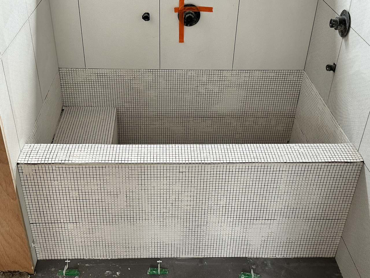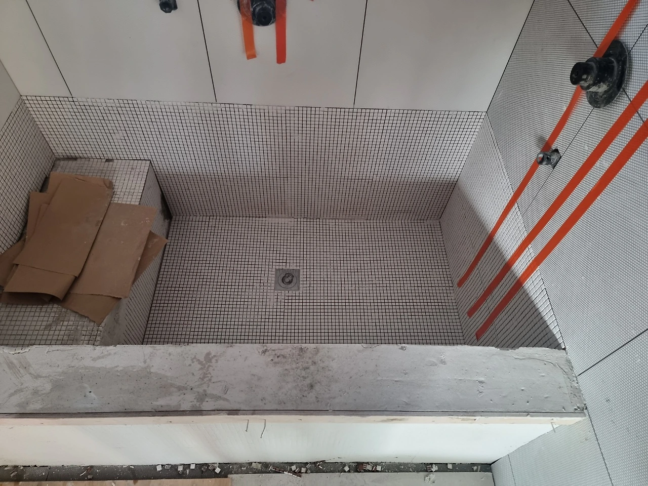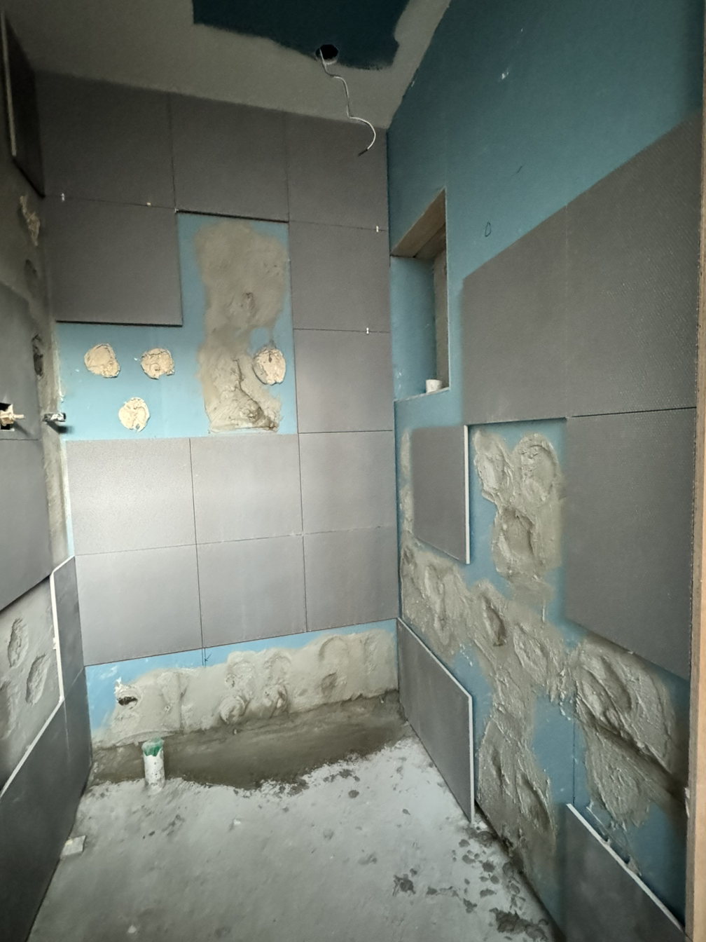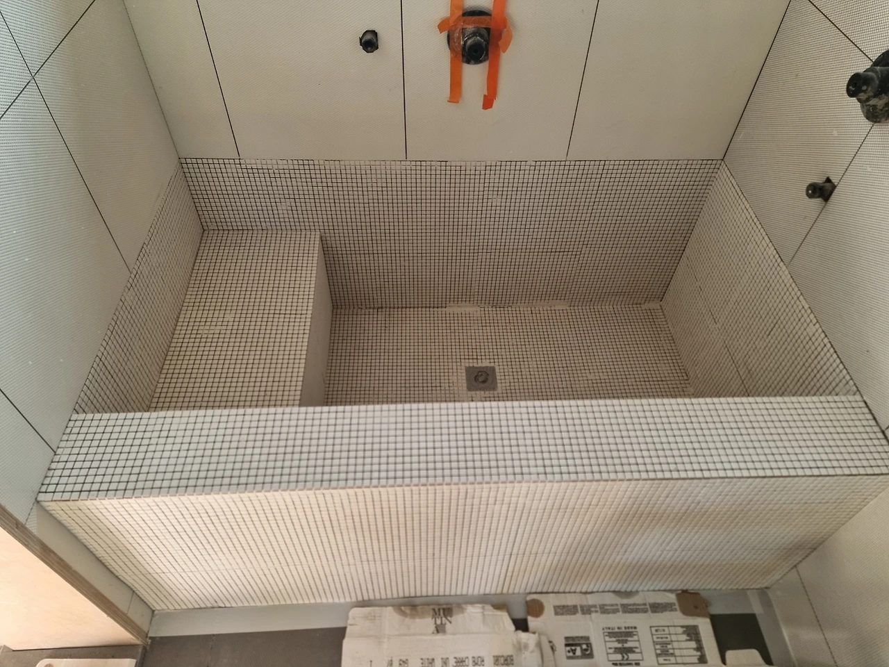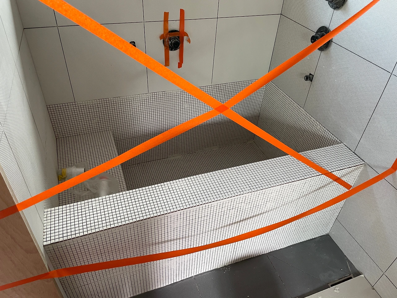 주말에 문제가 되었던 욕조 타일에 대한 재작업이 있었다.