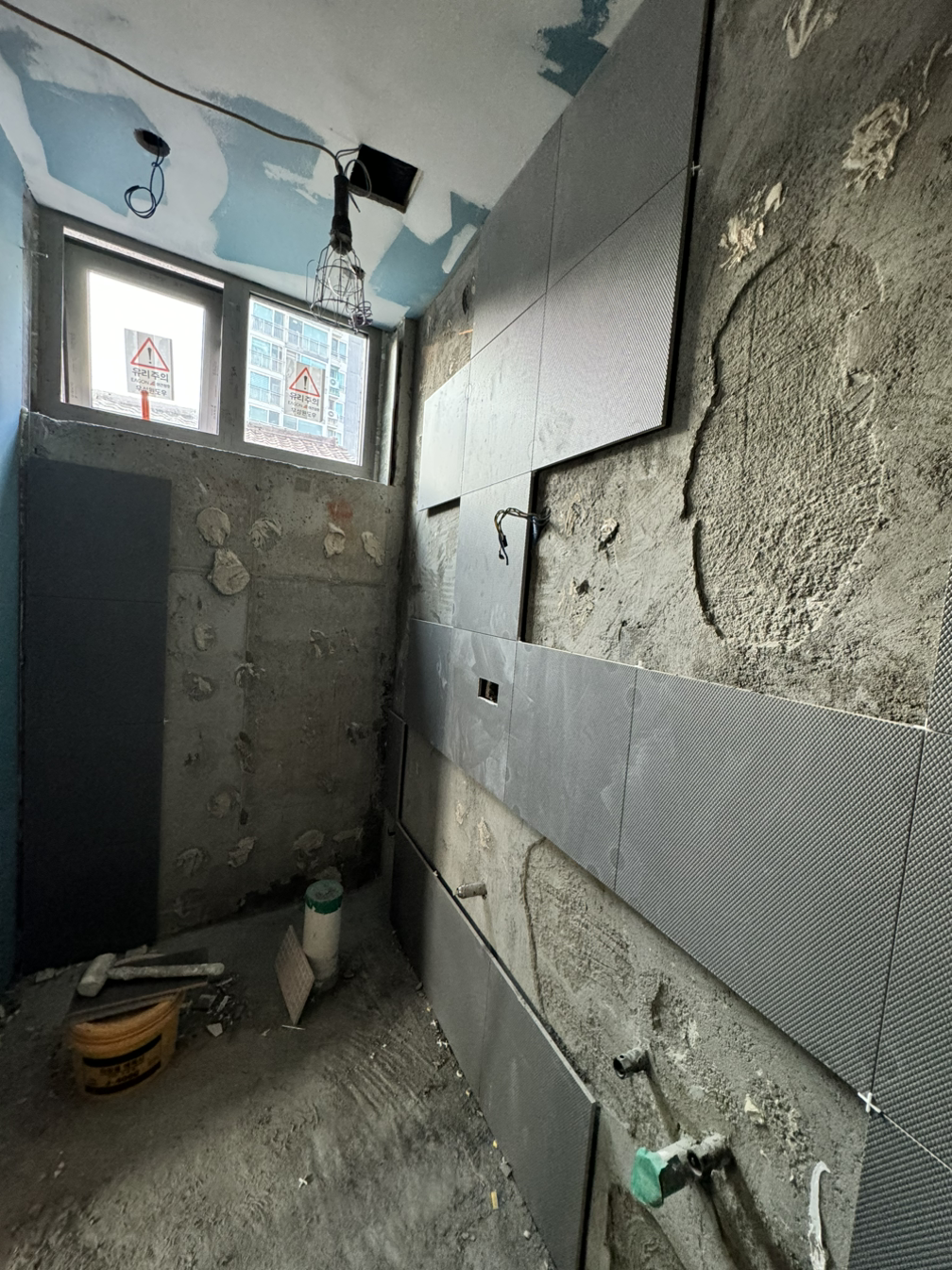 타일 작업이 계속 진행 중인데 욕실 모서리에 졸리컷이 적용되어 더 세심한 커팅이 필요하기도 한데 커팅하면서 이가 나가기도 하고 작업에 어려움이 있다고 한다. 그래서인지 생각보다 타일이 더 들어가게 되어 다시 2박스를 추가로 구매했다. 당초 현관 바닥까지 시공하려고 여유 있게 주문한 걸 생각하면 한 차례 추가 주문을 포함해서 예상보다 3-4박스가량 추가로 들어간 거 같은데, 벽과 바닥에 모두 쓰이는 내구성 좋은 포세린스톤 타일로 자재 비용이 적지 않음을 감안할 때 아쉬움이 있다. 타일공의 노임이 가장 높은 편이라 들었다. 실제로 숙련정도에 따른 결과물의 차이를 쉽게 확인할 수 있고, 특히 좋은 자재(상대적으로 고가)를 선택했다면 숙련된 작업자와 좋은 장비를 요청하는 것이 품질이 높을뿐더러 경제적일 수 있다.