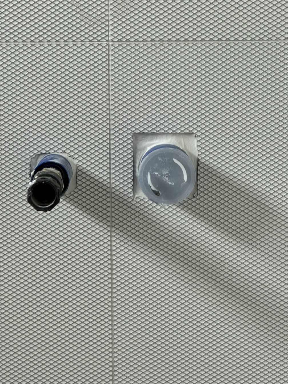 욕실 전체에 MUTINA의 Rombini Carre 타일이 들어가는데 재고가 없어 화이트, 화이트그레이, 그레이를 섞어서 쓰고 있다. 그중 욕실 하나는 벽체 전체를 Grey로 통일하는데 양각의 패턴이 있다. 벽체 한 곳에 양각 패턴이 마름모 형태로 새겨져 있다. 완성도가 아주 높고 세련되어서 보자마자 마음에 들었던 타일인데, 나중에 알고 보니 부홀렉 형제가 디자인한 타일이었다.