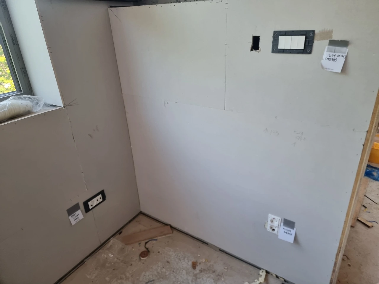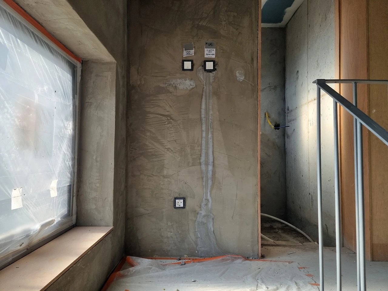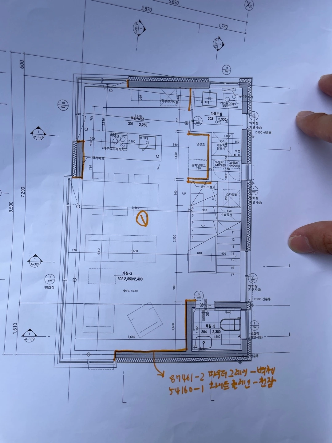 내부에서는 꽤 많은 수의 콘센트와 스위치 작업이 이루어졌다. 1구, 2구, 대기전략 차단, 가구 매입용 등 위치에 따라 콘센트가 다르거나 다른 모델이 적용되는 곳이 있어 현장에서 꼼꼼히 챙겨져야 한다. 스위치 역시 마스터 조명과 씰링팬 스위치에는 스티커 작업이 가능하여 미리 지정해 놓은 것들이 있다. 역시 현장에서 헷갈리지 않도록 확인이 필요하기 때문에 조소장님이 꼼꼼히 포스트잇으로 콘센트와 스위치에 특이사항을 남겨두어 복잡한 일이었을 텐데 잘 진행된 듯하다.