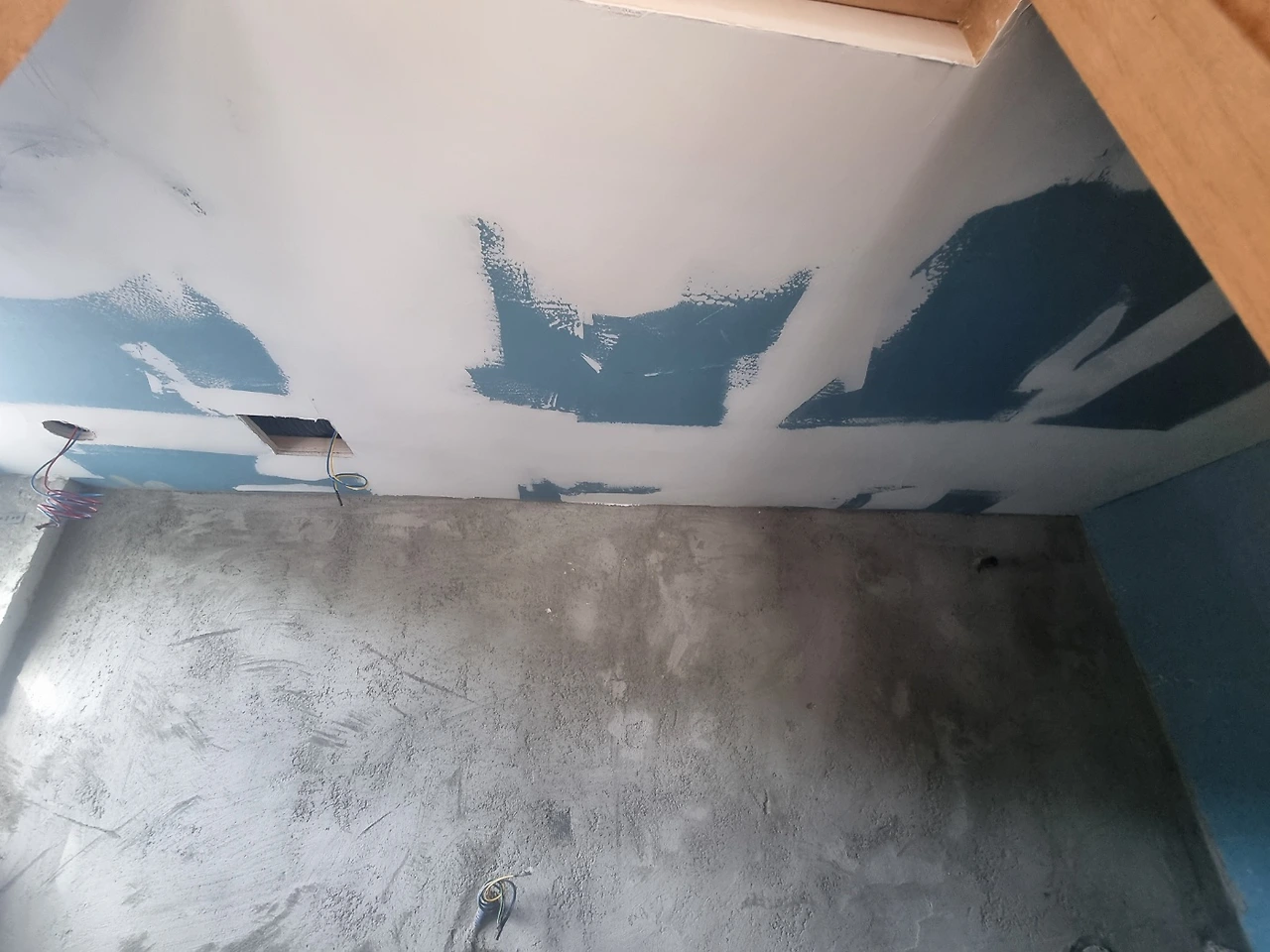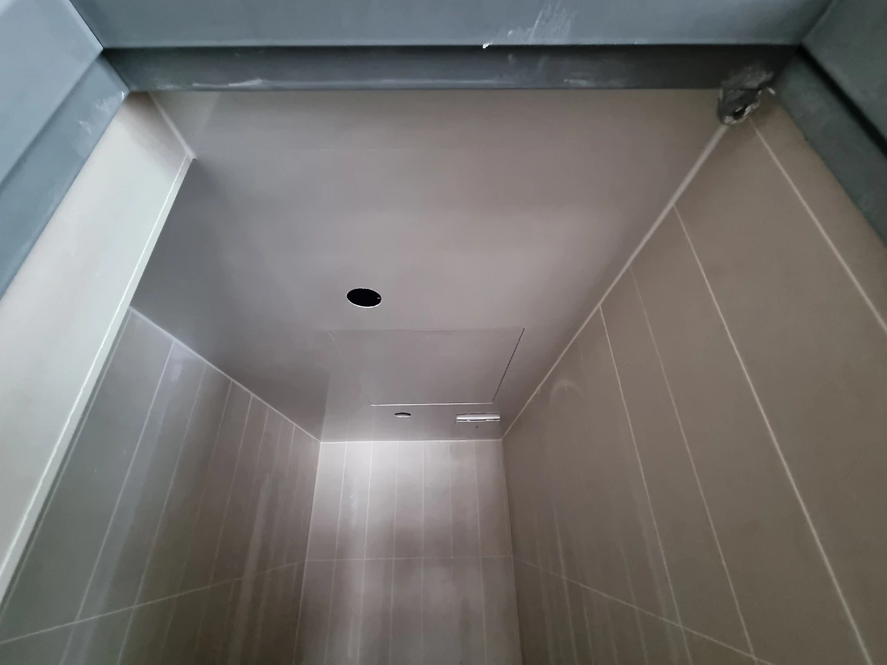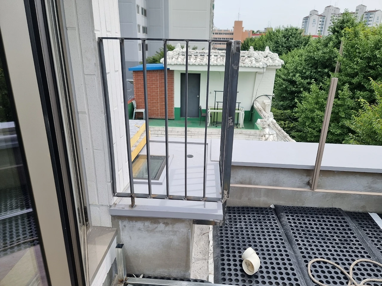명일 : 콩자갈 미장, 타일시공, 지하층 1층 화장실 돔천장 설치, 전기스위치 콘센트기구설치, 금속 옥상 데크 하지 설치. 가스인입