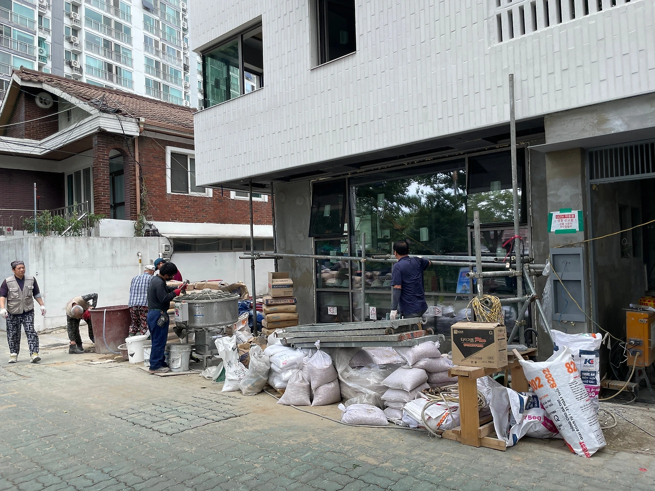 크게는 가스가 들어왔고 다행히 새롭게 구한 타일작업팀이 남은 2, 3층 작업을 마무리하고 있다.