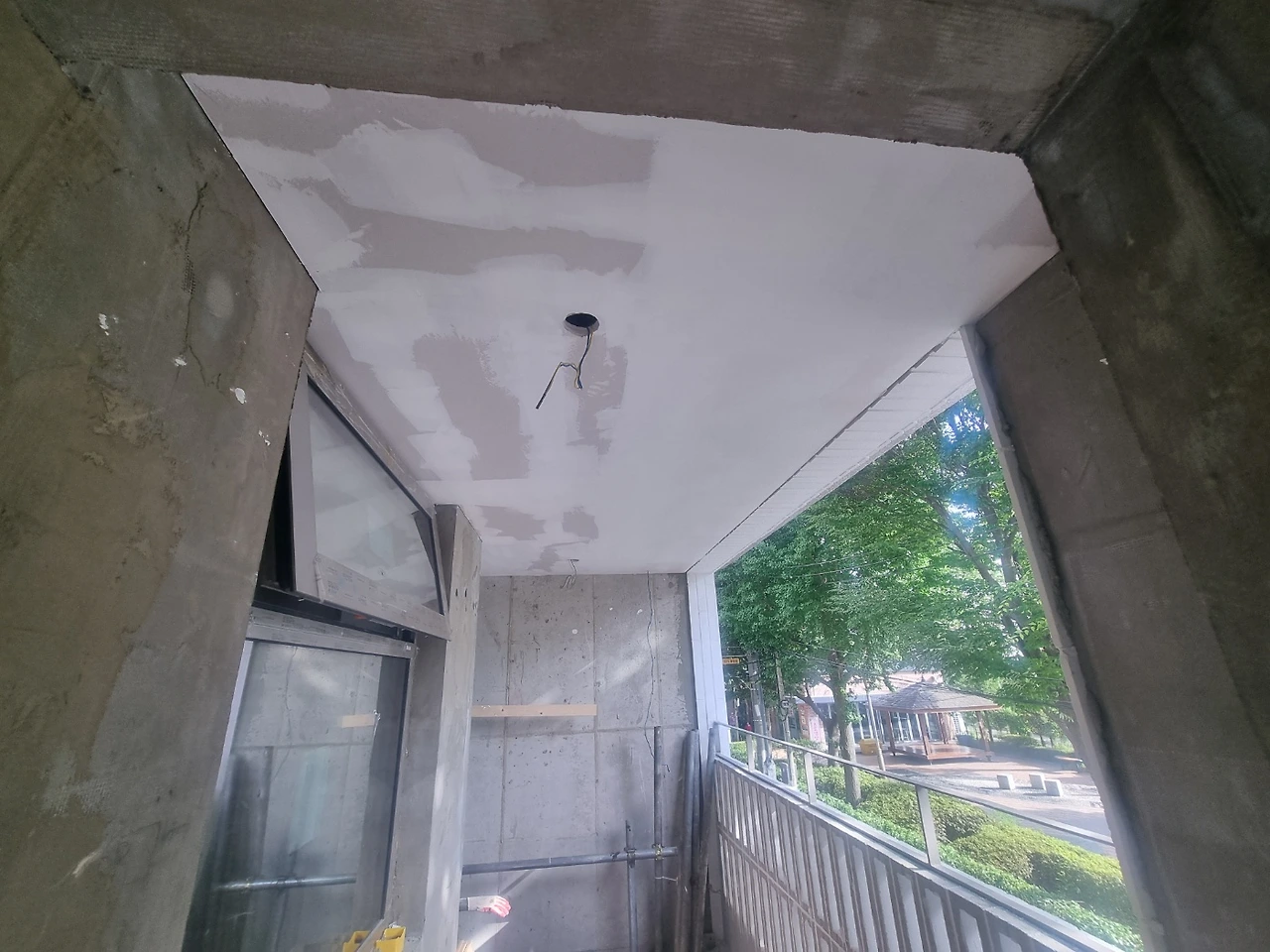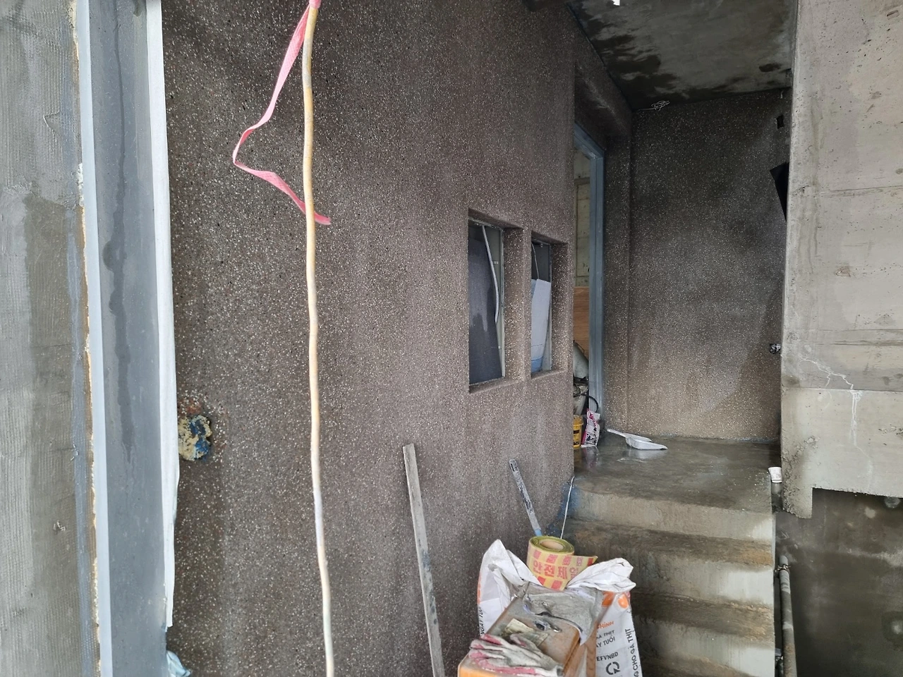 그래도 큰 외부마감이었던 콩자갈 미장이 마무리되면서 건물 자체의 마감진척이 꽤 올라갔다. 조금씩 '완성'이라 부를 피니시라인으로 가까워지는 듯하다.