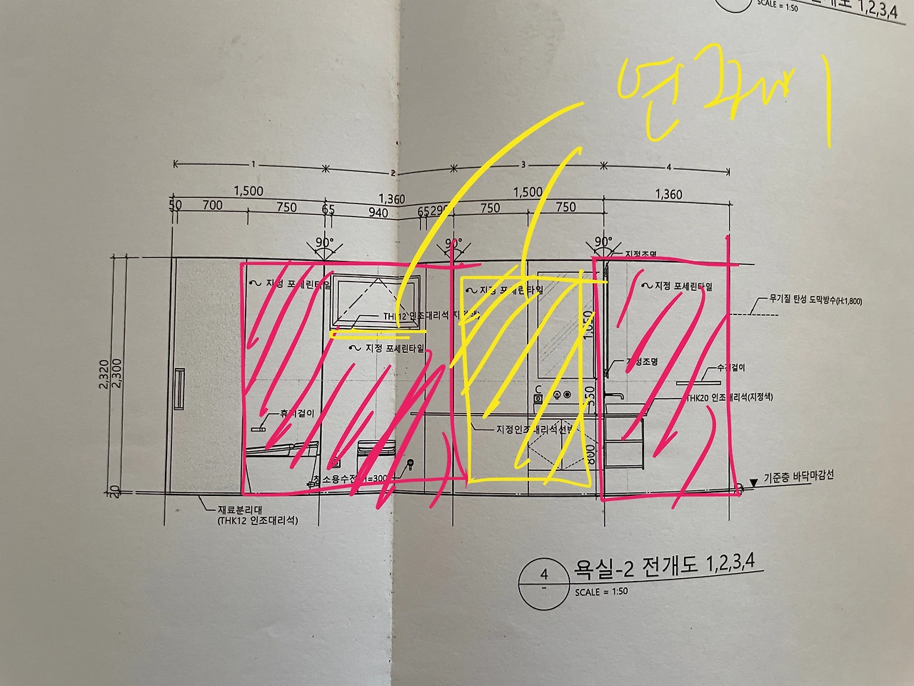 1. 1층, 지하층 화장실, 4층 욕실 타일 메지 시공