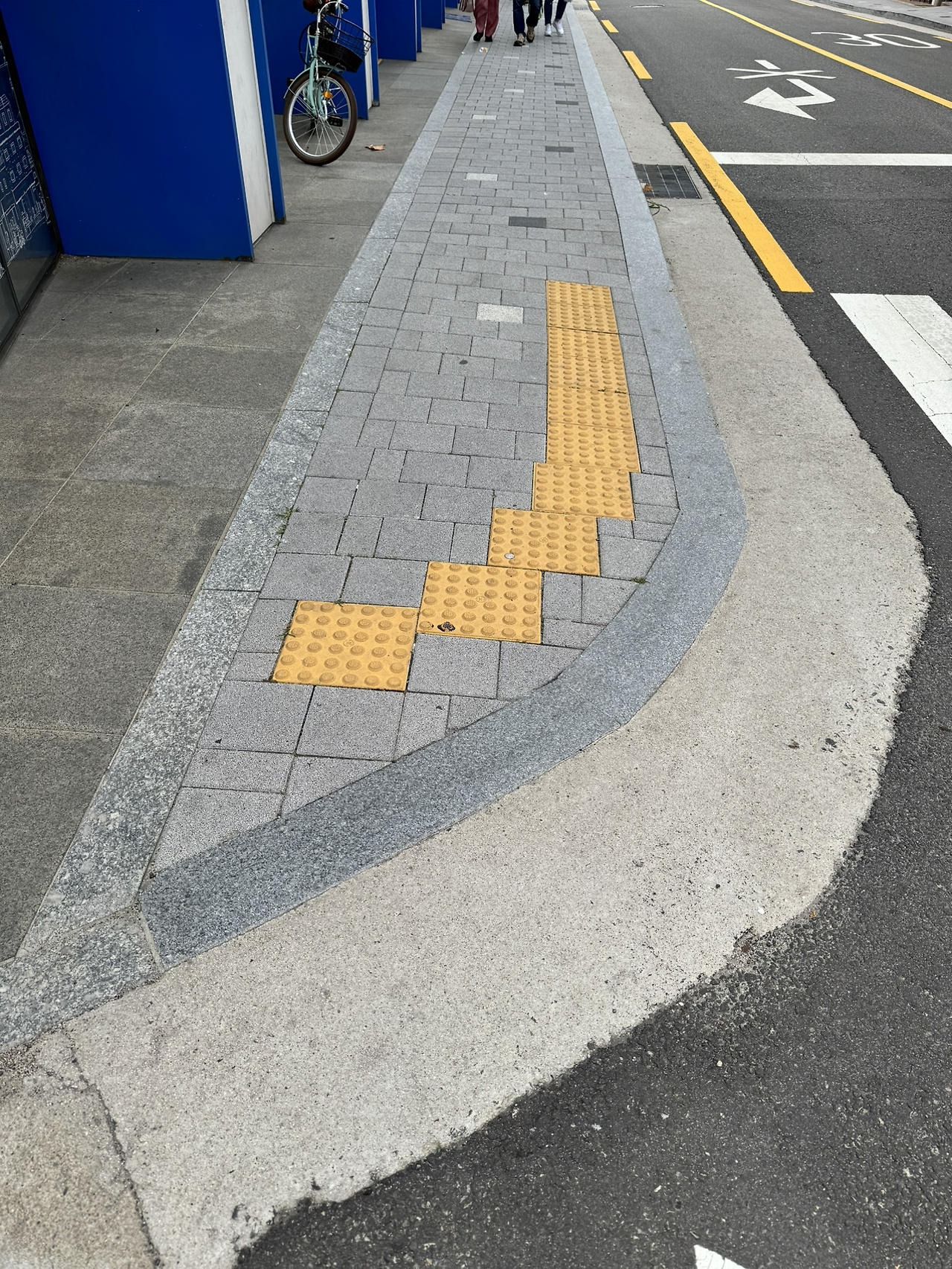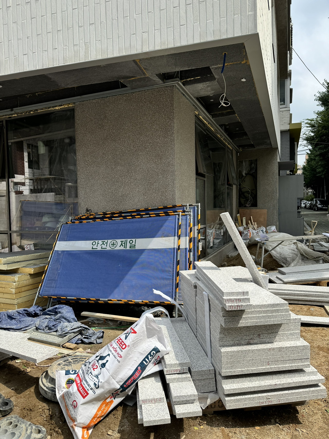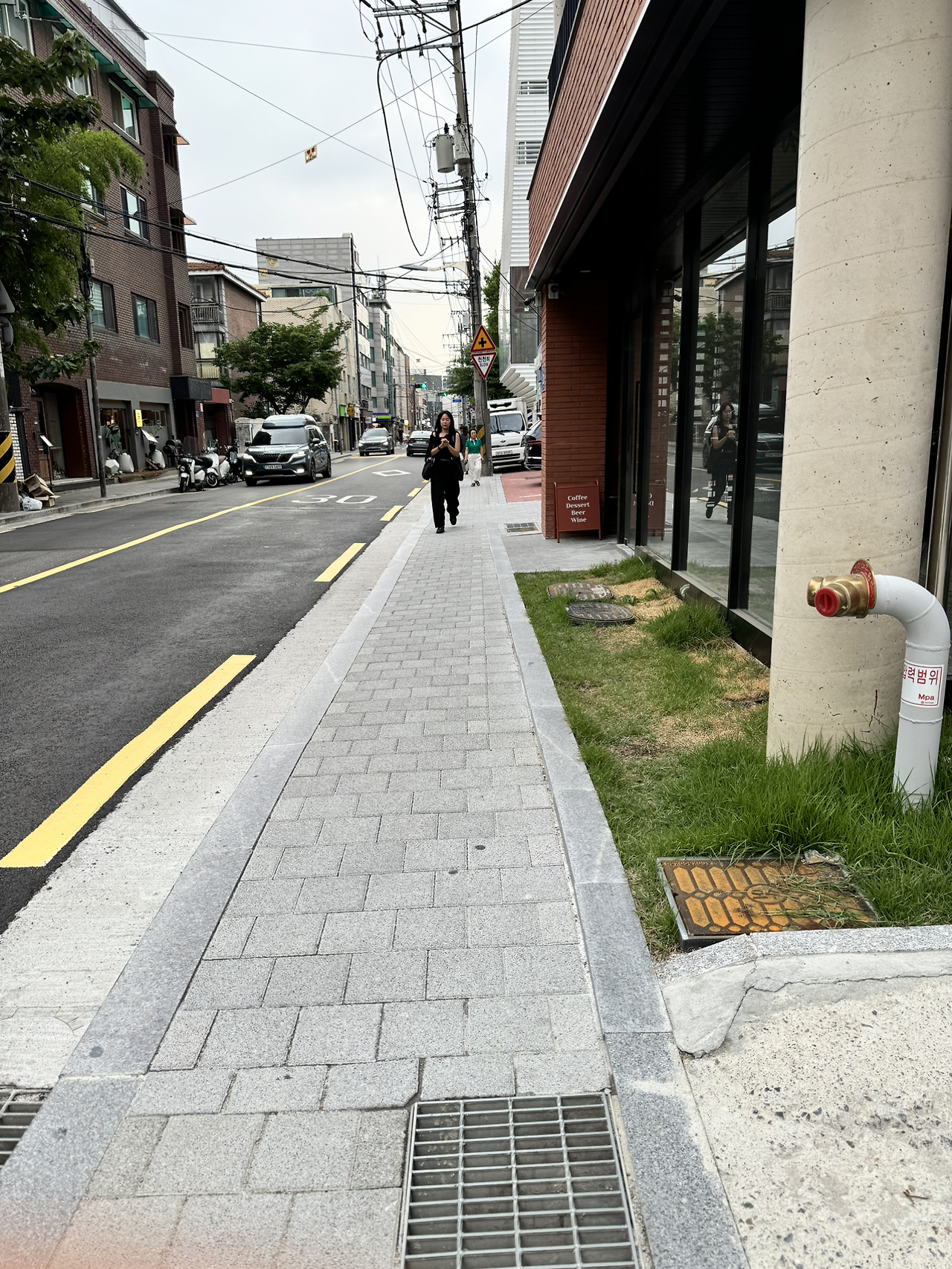 사용승인 준비와 외부 마감의 일환으로 경계석과 주변 도로복구도 해야 한다. 마포구는 지하층 공사가 있는 경우 도로 전폭을 정비하는 게 조건이라고 한다. '정비'가 구체적으로 어떤 의미인지 나와있지 않지만 구청 담당자의 얘기로는 '새로 까는 것'이다. 이미 지하층이 있던 건물이었고 셋백 한 대지 경계선으로 인해 생긴 블럭이 얹어지지 않은 부분과 건물 주변 손상된 부분이래 봐야 1mm도 채 안되는데 6m 도로를 모두 새로 깔으라니 이해가 되질 않는다. 저녁 약속이 있어 합정까지 따릉이를 타고 가는데 이곳저곳 새로 지은 건물 앞의 보도블럭만 눈에 들어온다.